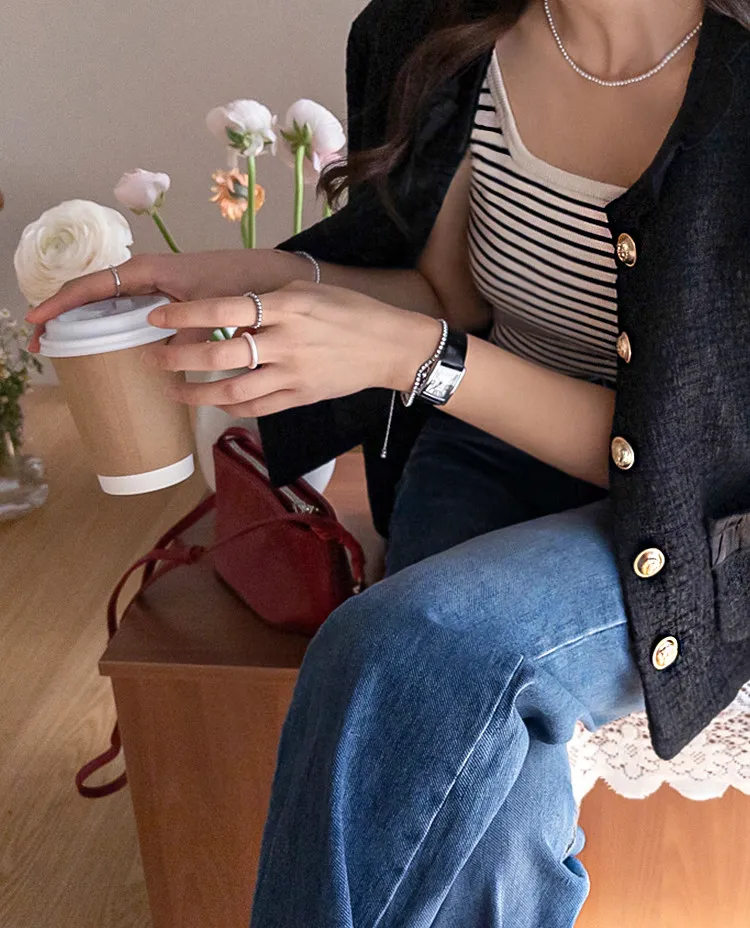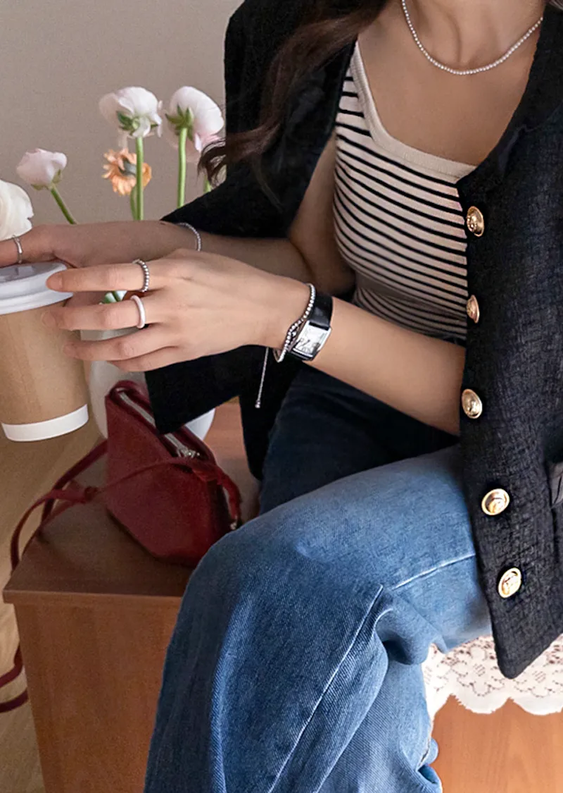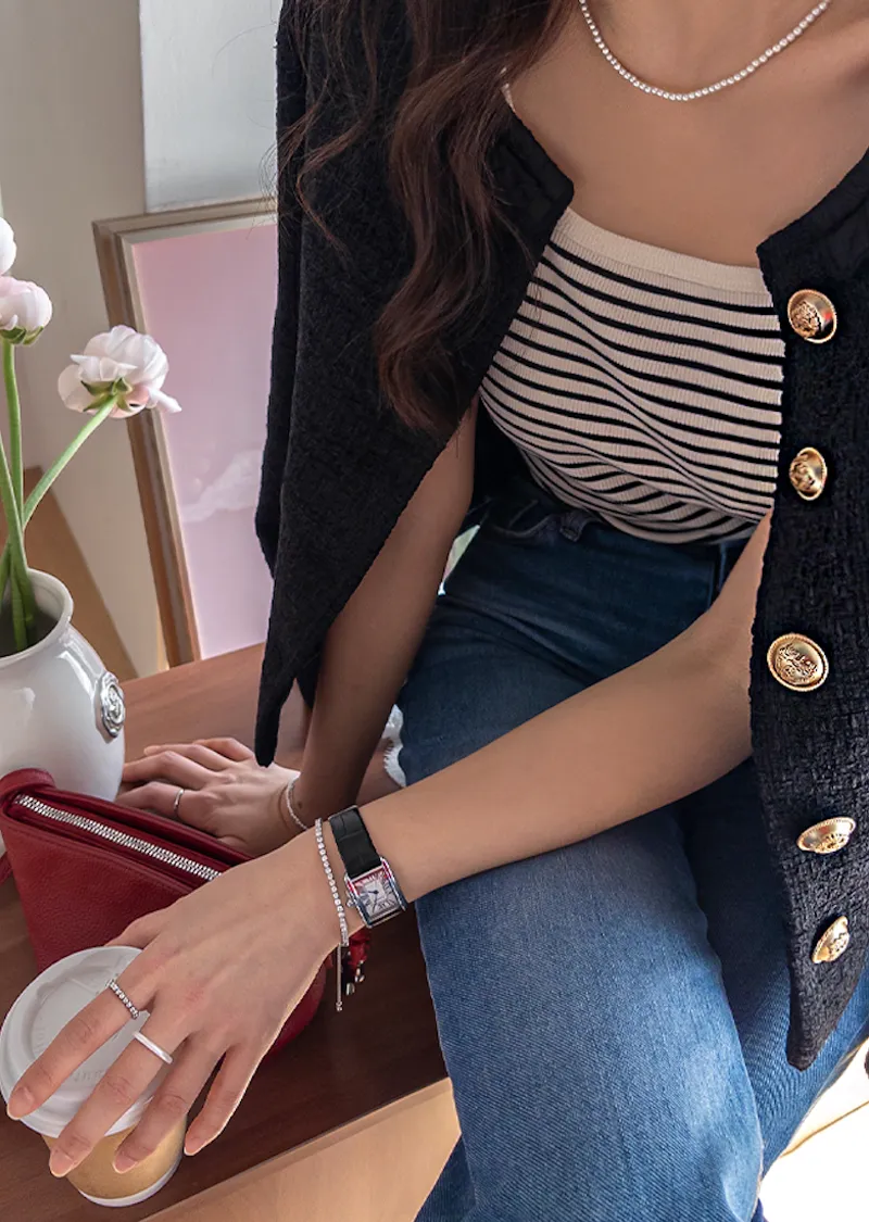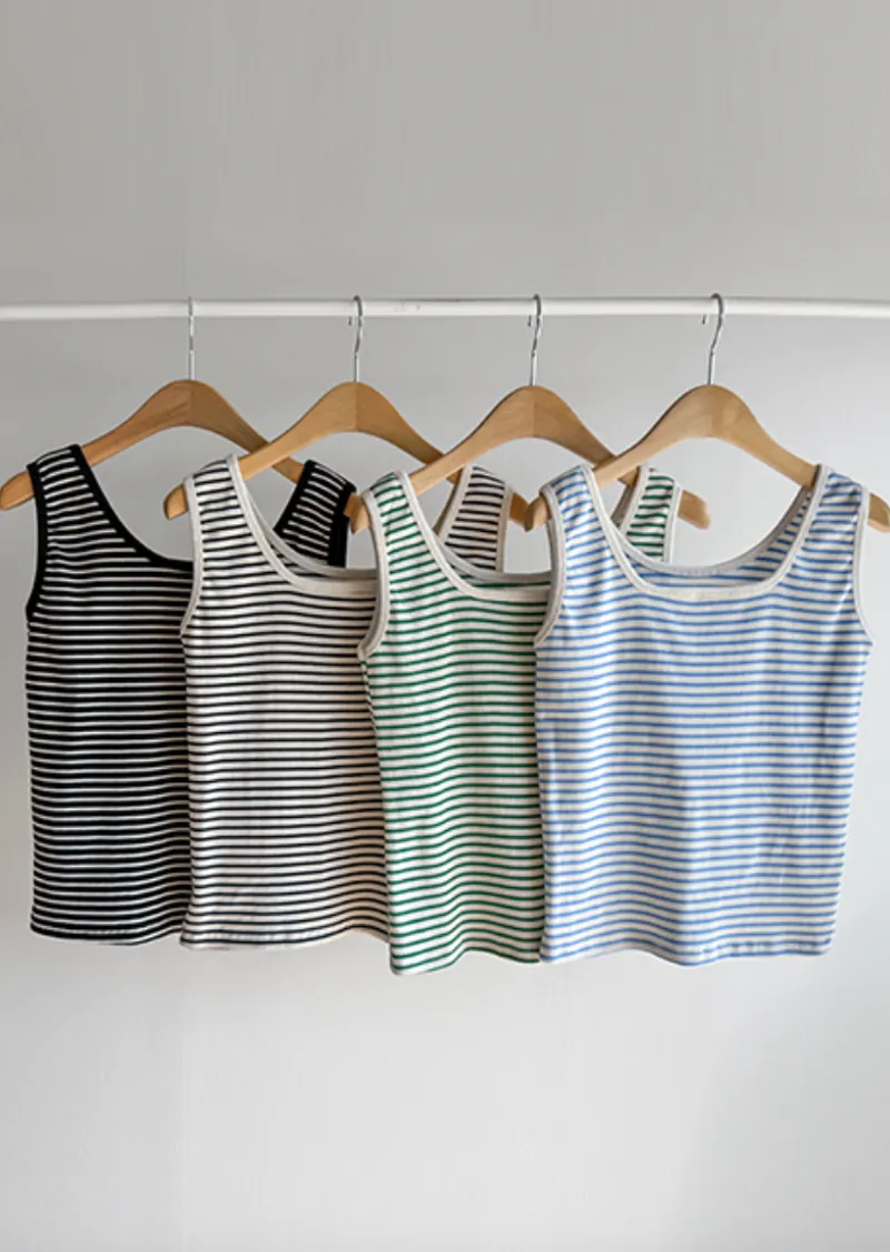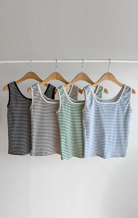 休閒氣息兩穿百搭條紋羅紋修身無袖上衣