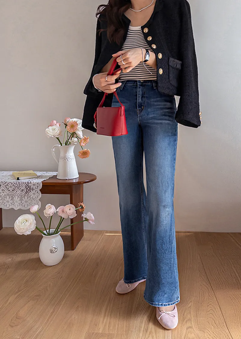 修長纖細線條修身靴型剪裁牛仔褲