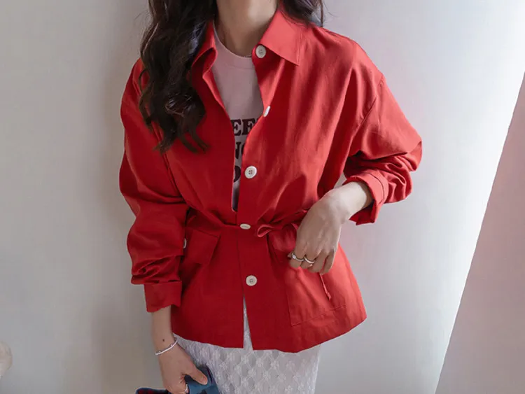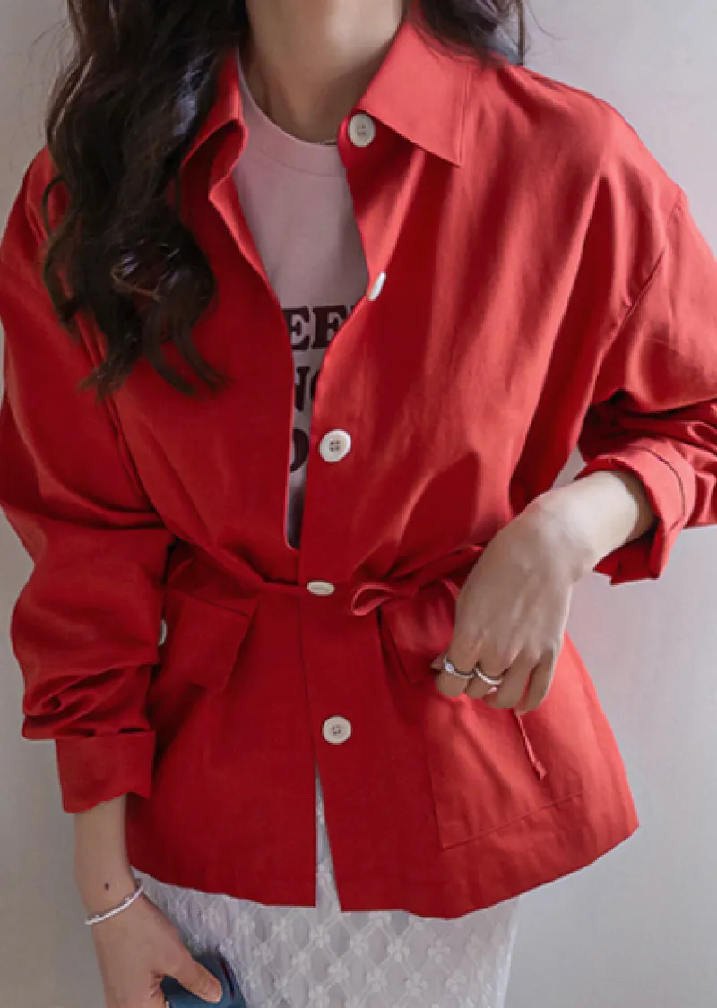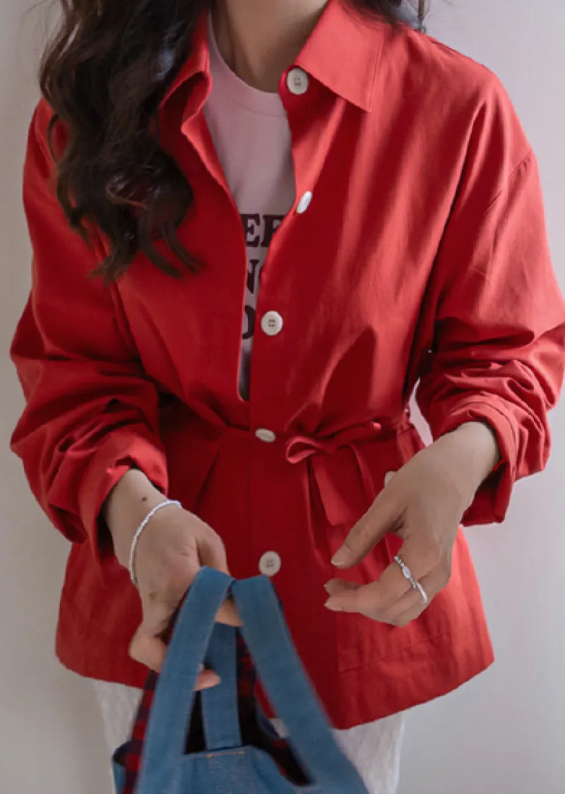 隨興氛圍兩穿腰綁帶襯衫外套