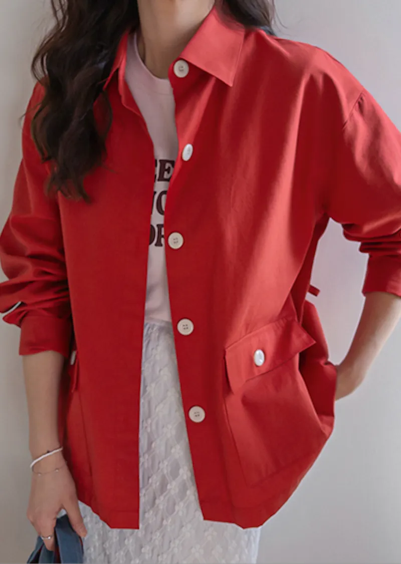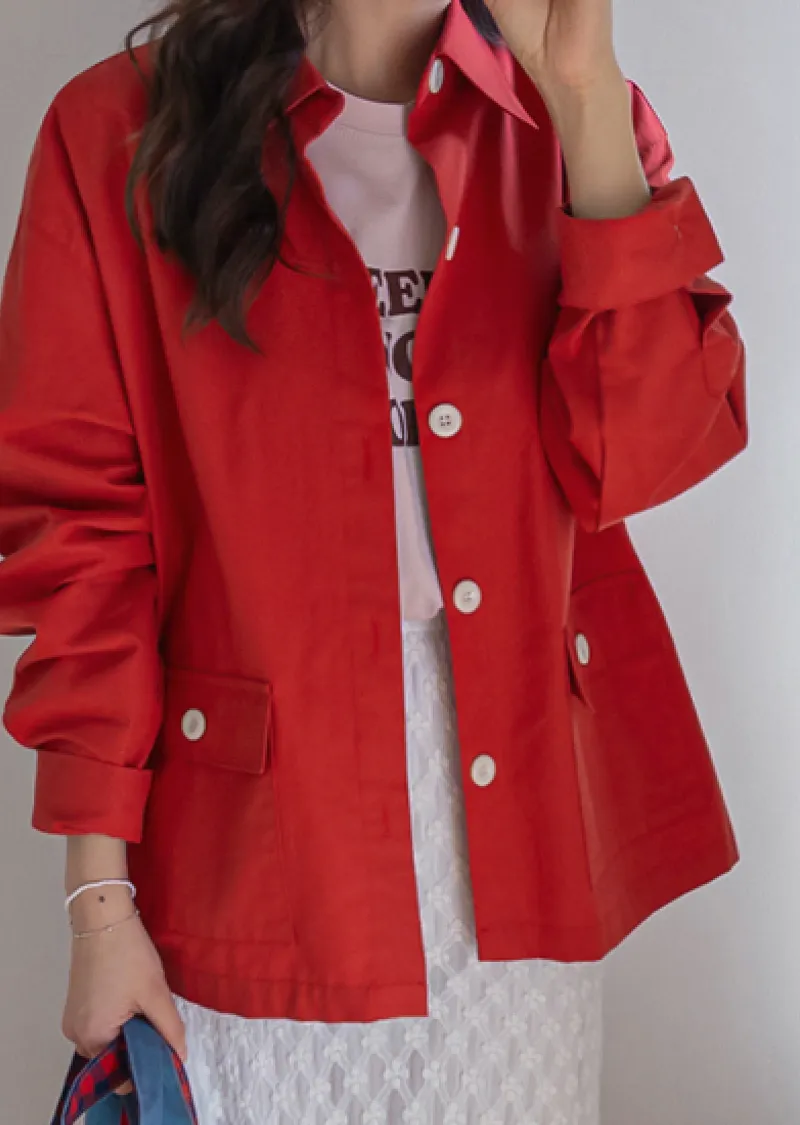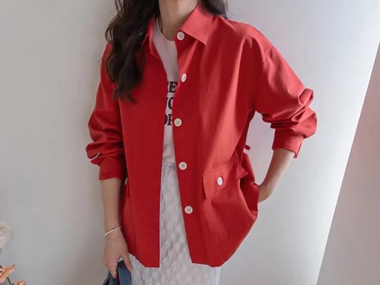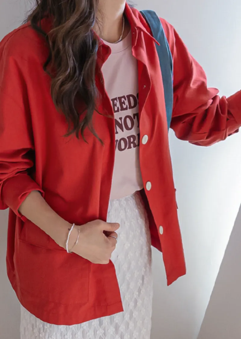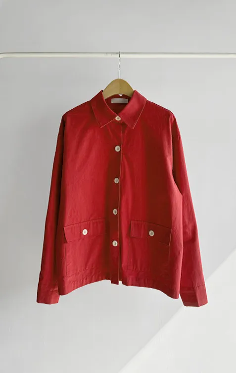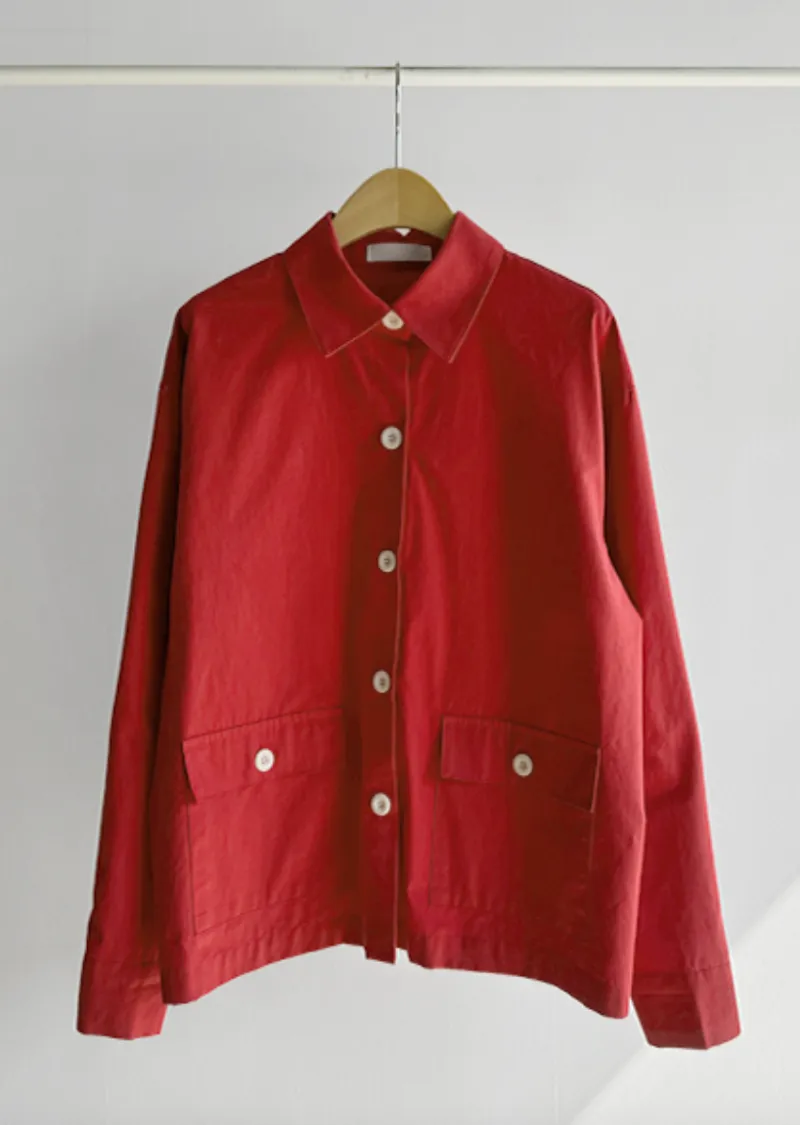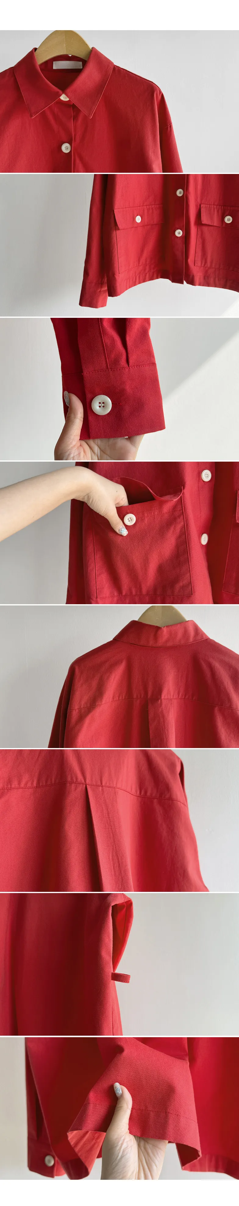 【一款兩穿單品,側邊設有孔眼,可搭配綁帶♡】【一款版型挺括的襯衫,可作外套穿著】【醒目的紐扣細節設計】【鮮豔的色彩為您的造型增添亮點】
