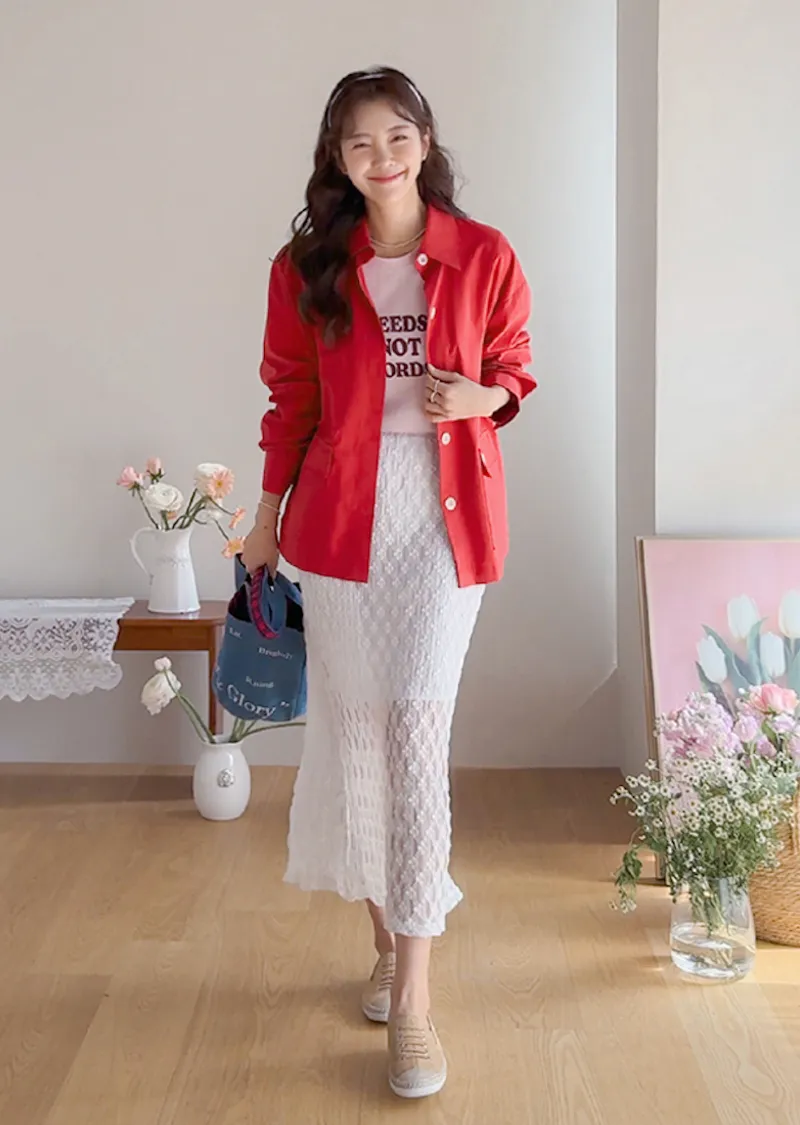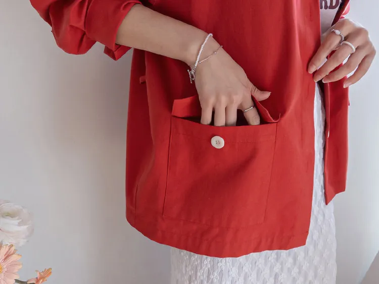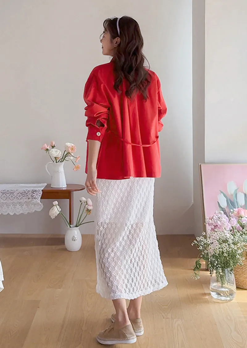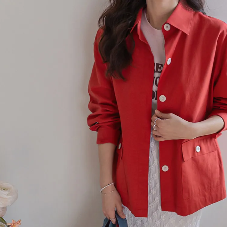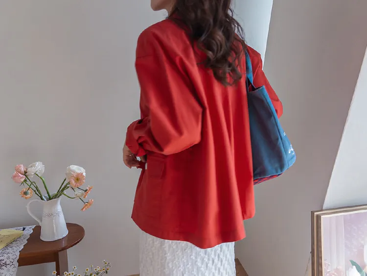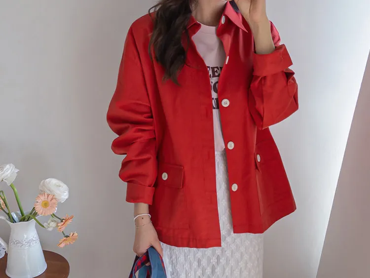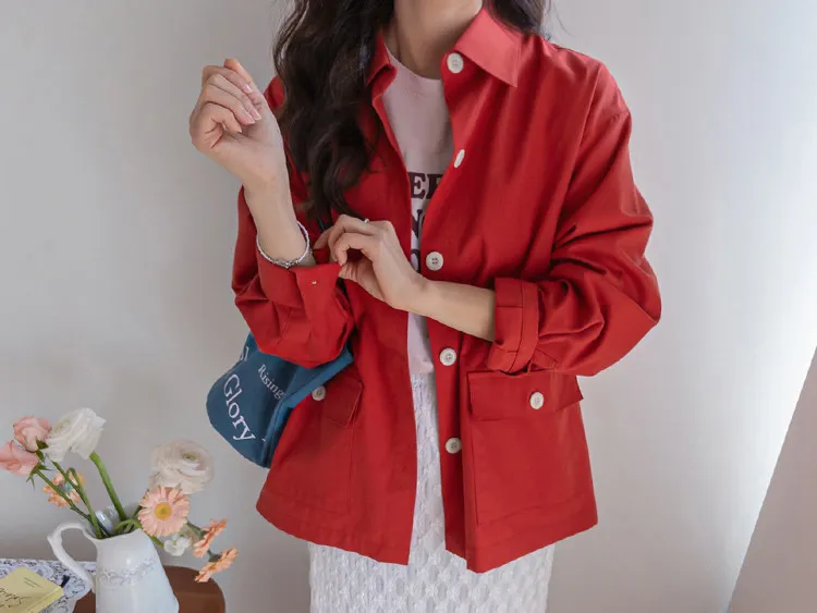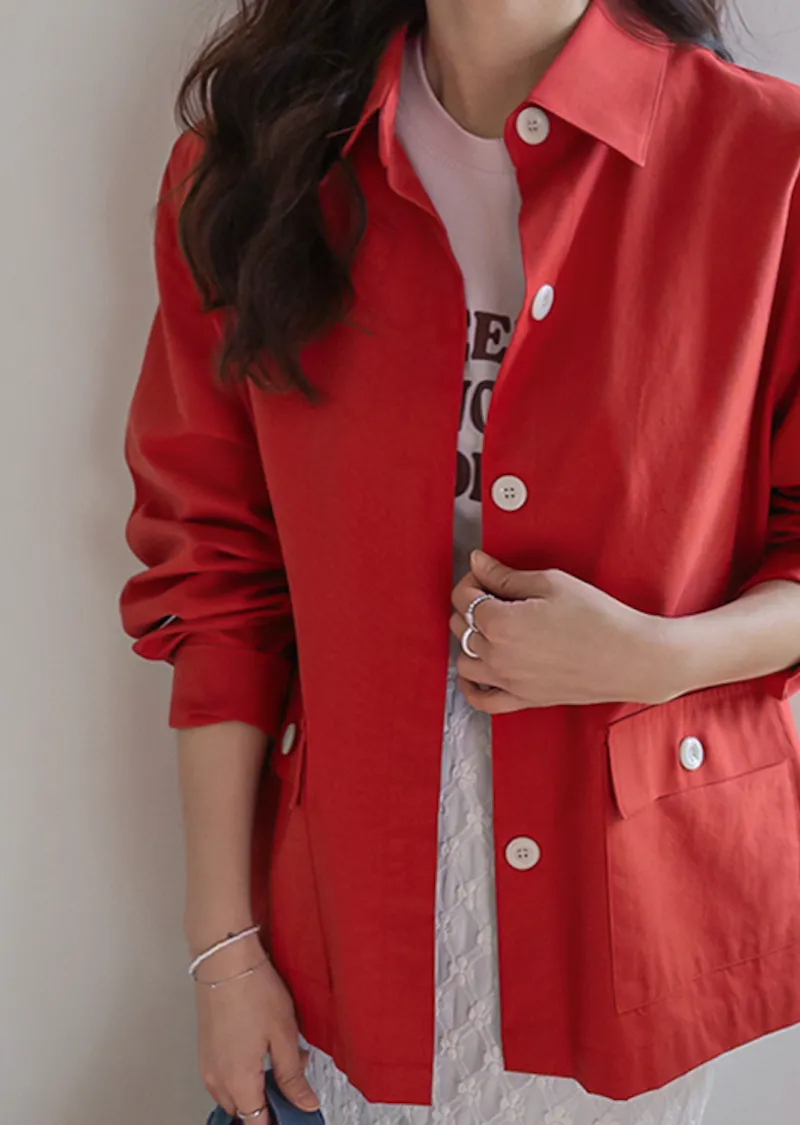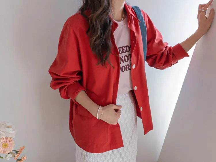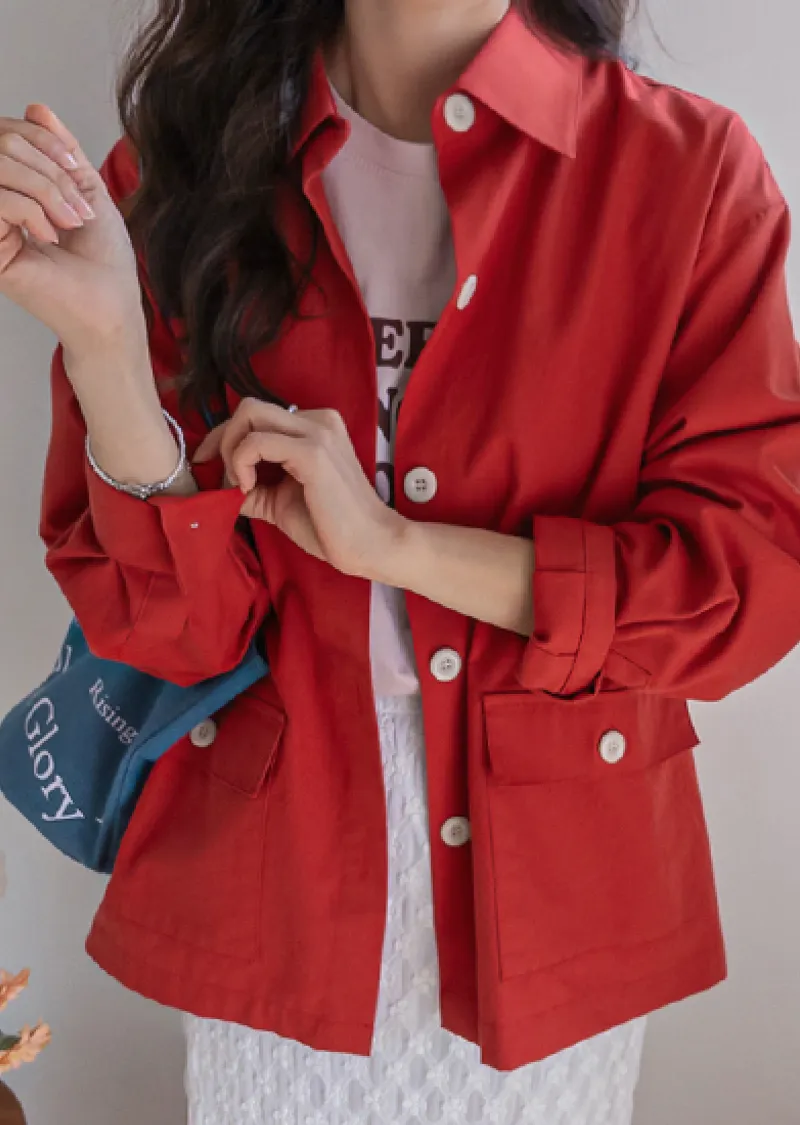 【一款兩穿單品,側邊設有孔眼,可搭配綁帶♡】【一款版型挺括的襯衫,可作外套穿著】【醒目的紐扣細節設計】【鮮豔的色彩為您的造型增添亮點】