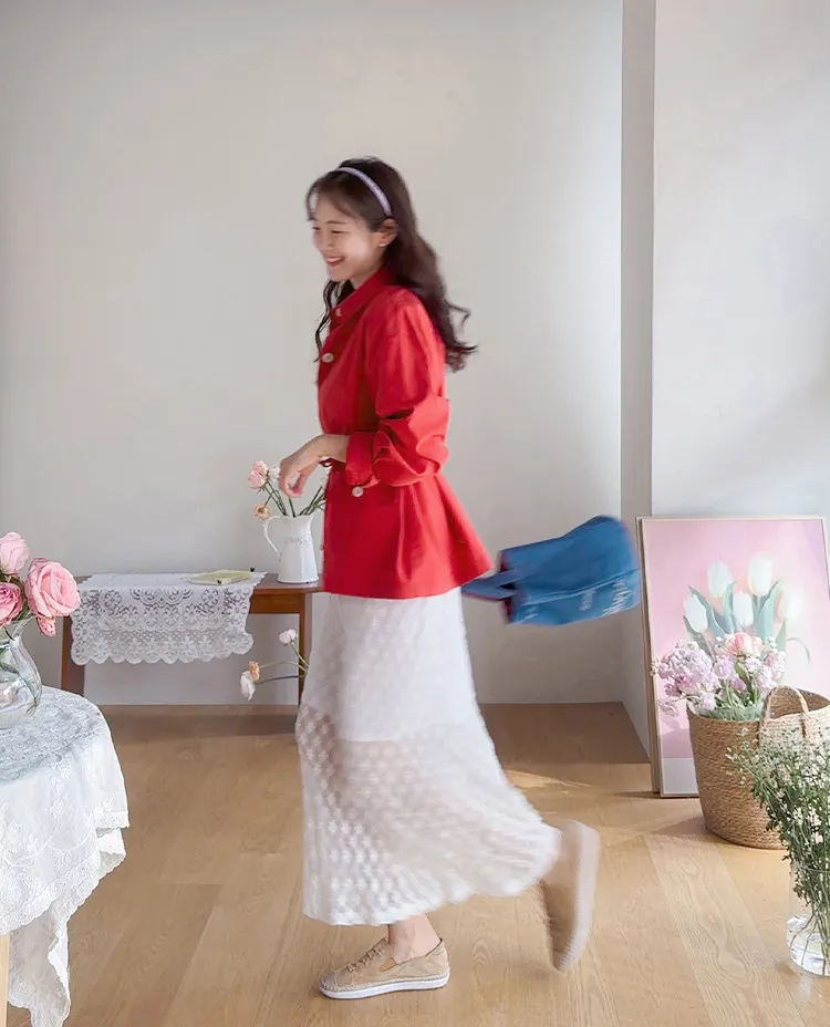 柔美氣質花朵蕾絲飄逸裙擺中長裙