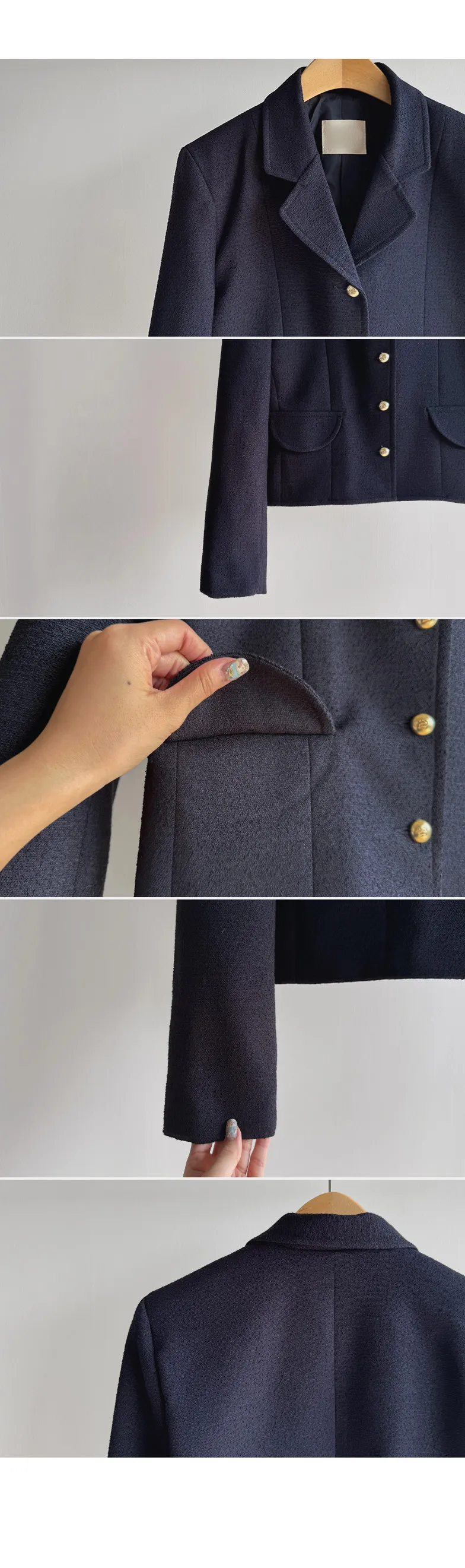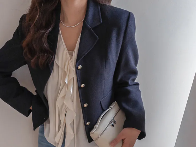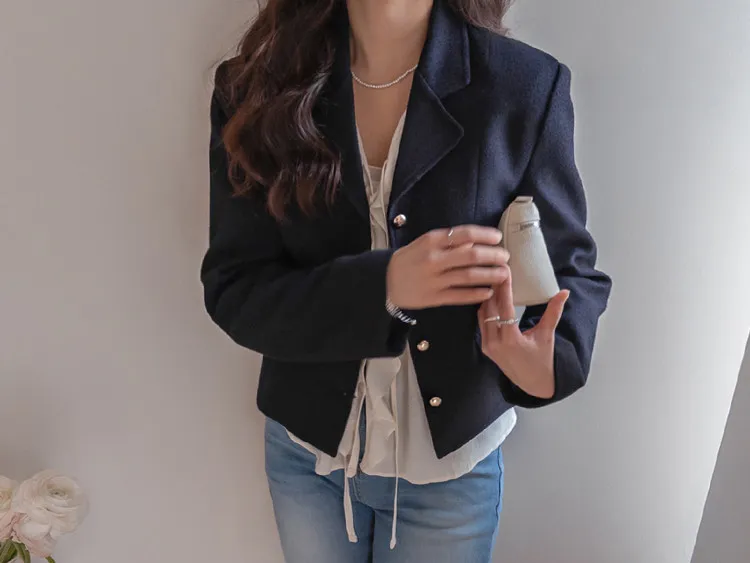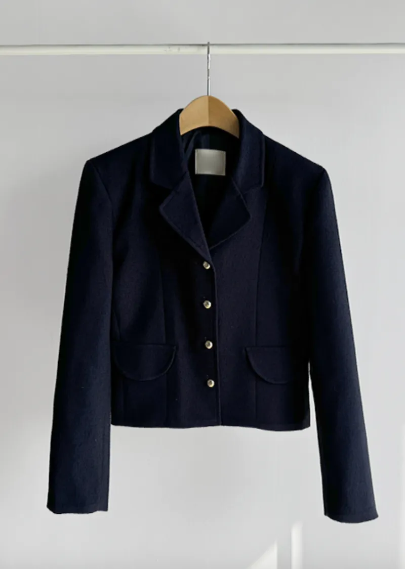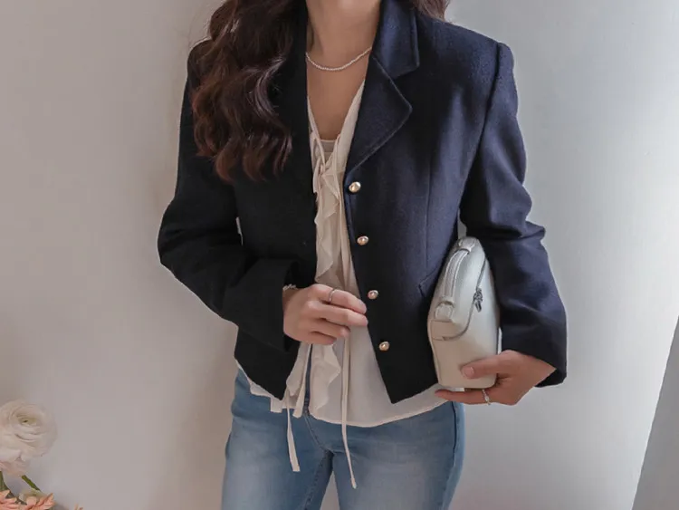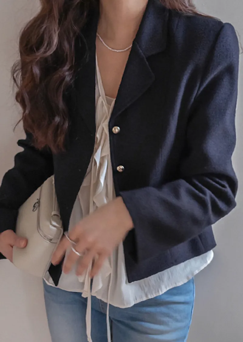 【飾有經典金色連結鈕扣的奢華外套】【精緻的廓形,短款設計凸顯身材比例】【內建襯裡,穿著舒適貼合】【巧妙的假口袋細節,避免單調感♡】