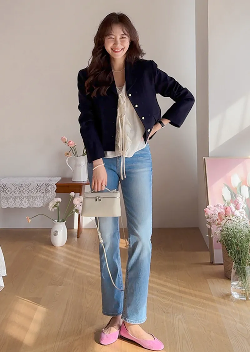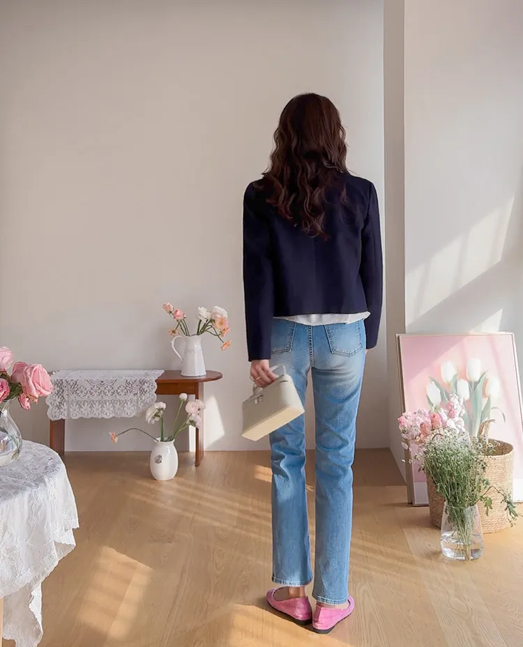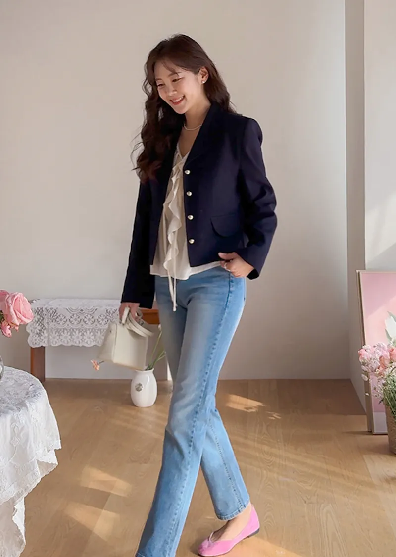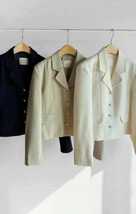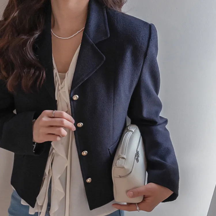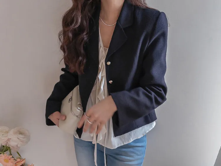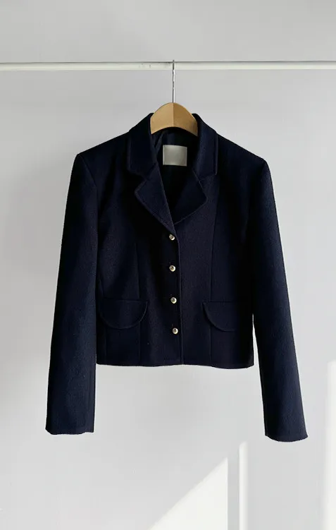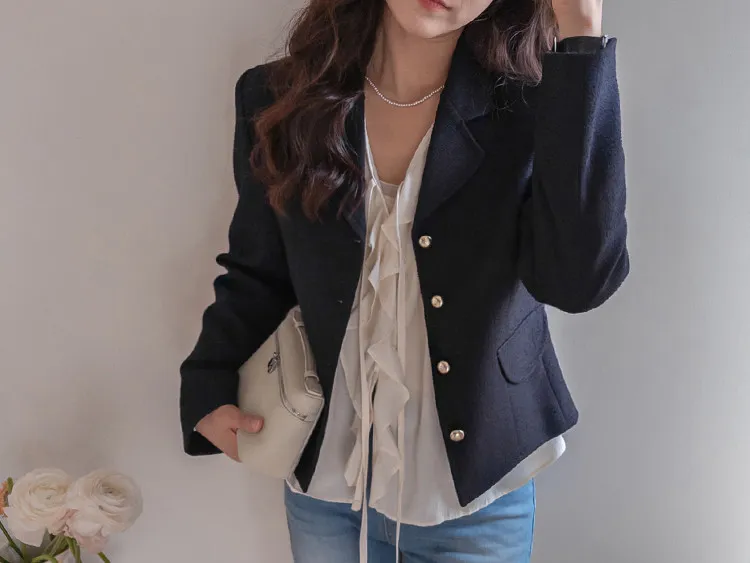 【飾有經典金色連結鈕扣的奢華外套】【精緻的廓形,短款設計凸顯身材比例】【內建襯裡,穿著舒適貼合】【巧妙的假口袋細節,避免單調感♡】