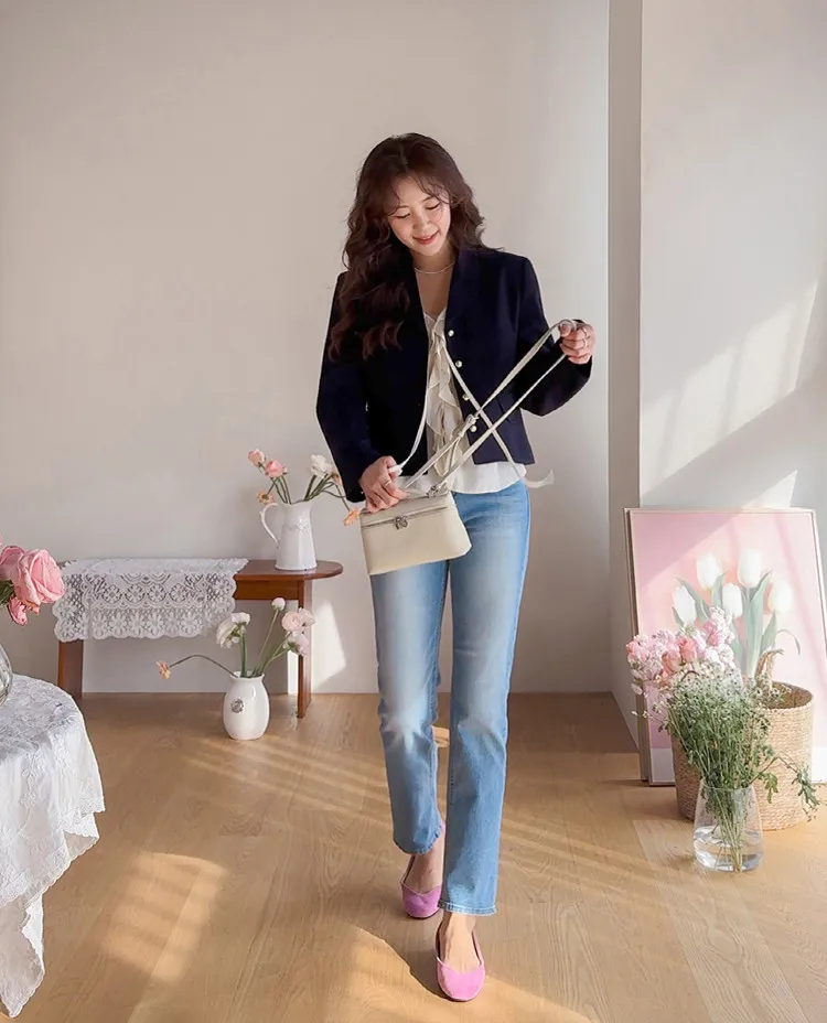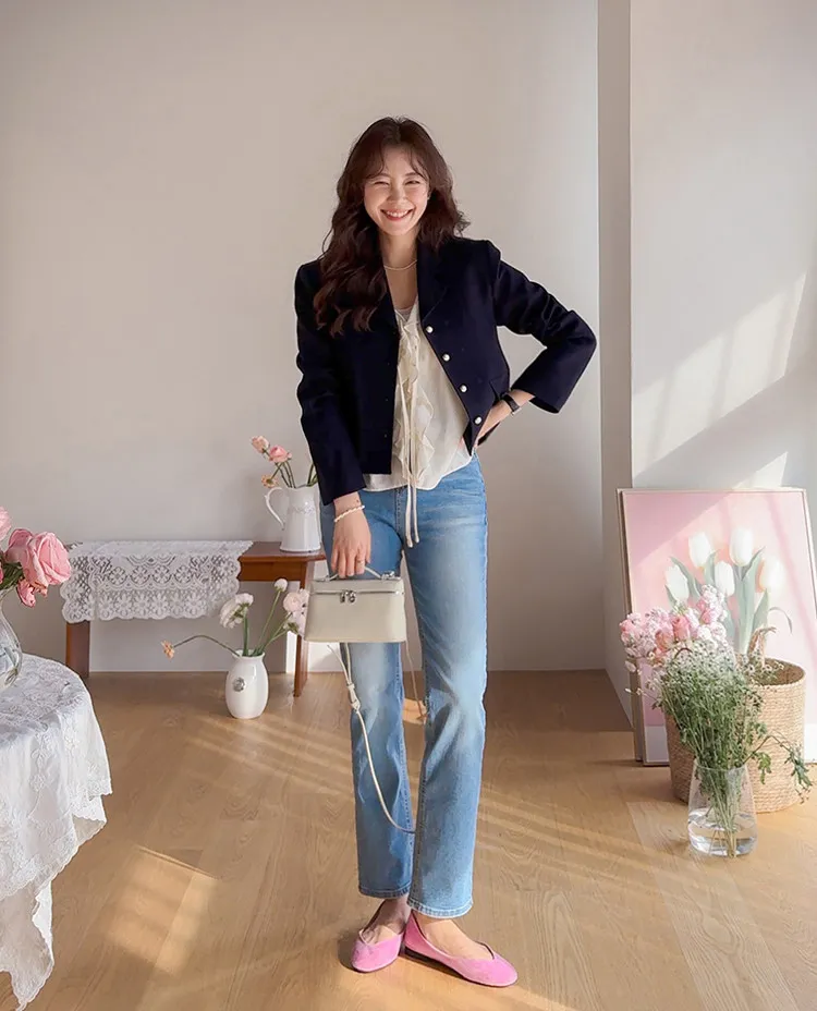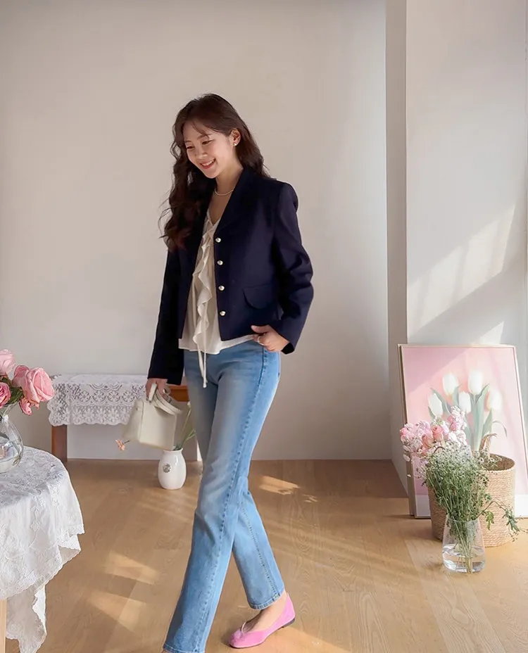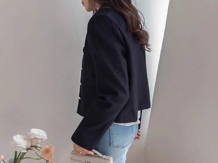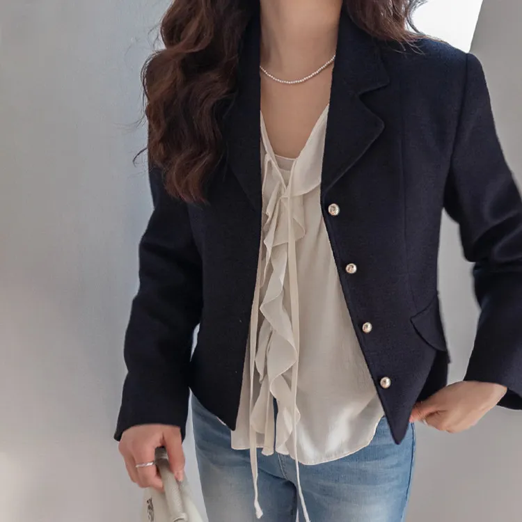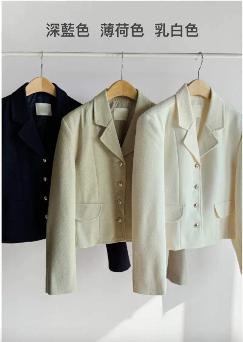 精緻優雅氣質點綴金扣俐落短版花呢外套