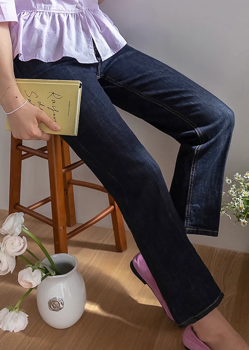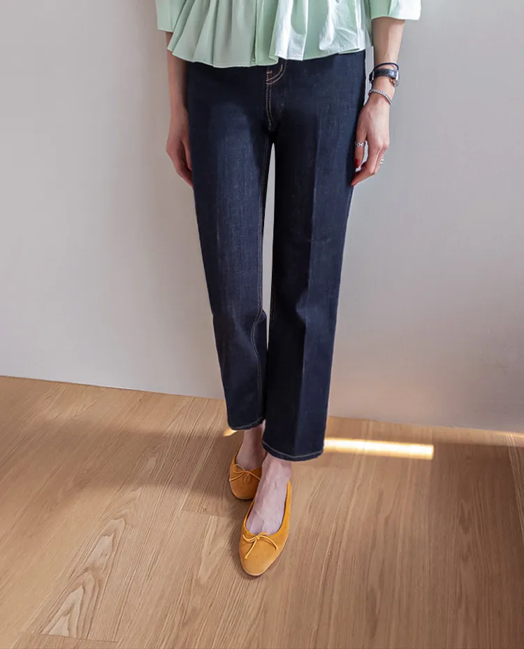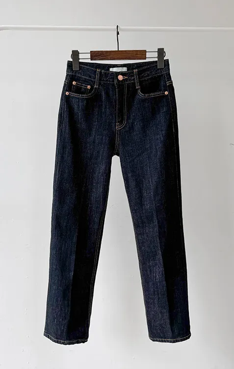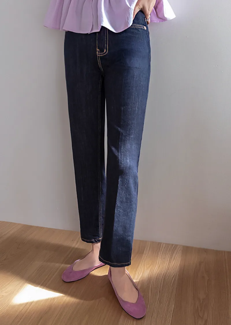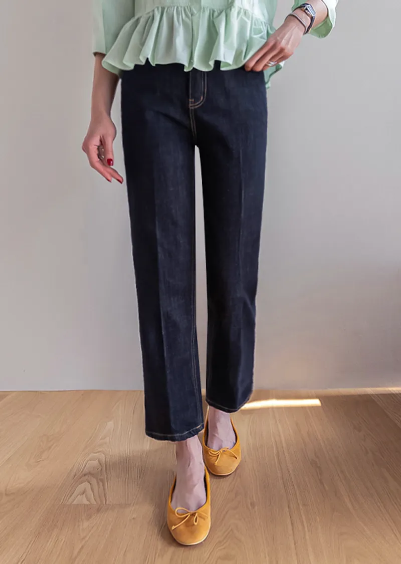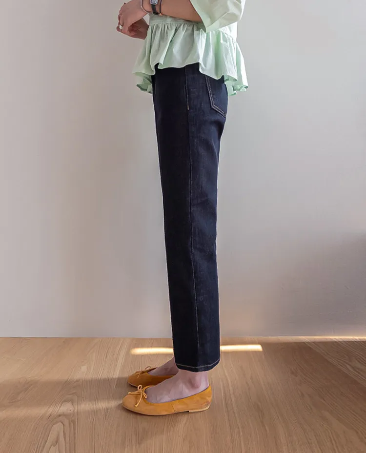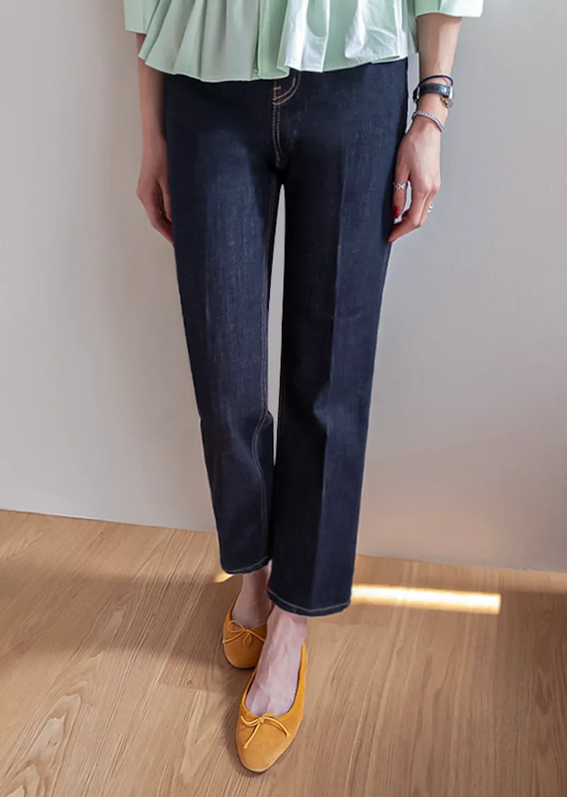 材質:99% 棉,1% 氨綸【不褪色牛仔布料,無需擔心掉色】【修身剪裁,褲線清晰】【九分褲長,完美垂至腳踝】【簡潔直筒版型】