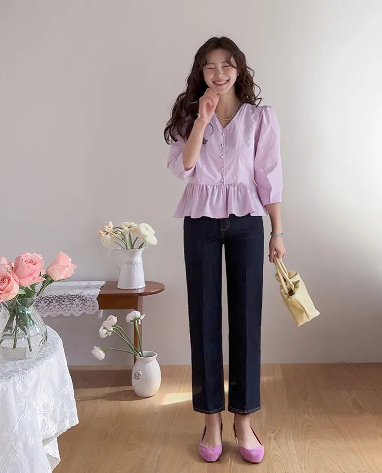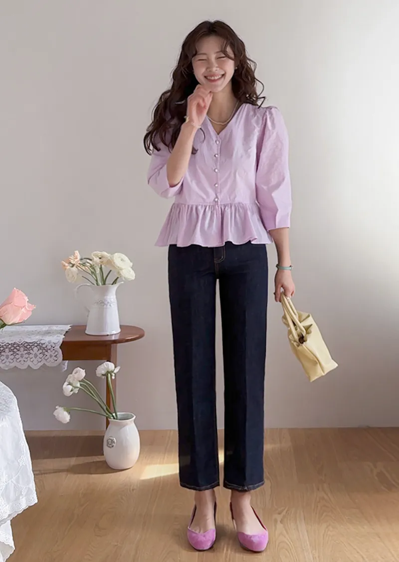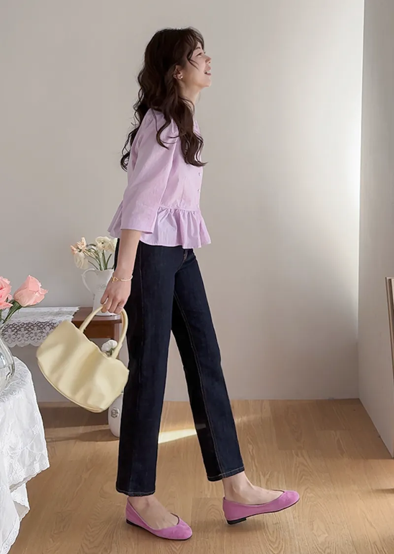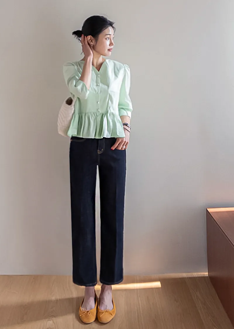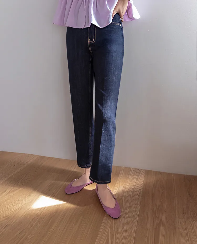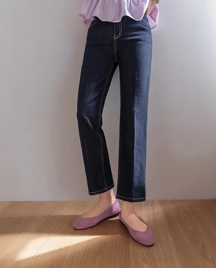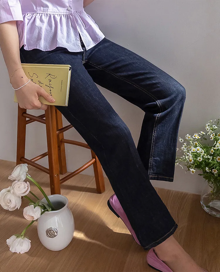 材質:99% 棉,1% 氨綸【不褪色牛仔布料,無需擔心掉色】【修身剪裁,褲線清晰】【九分褲長,完美垂至腳踝】【簡潔直筒版型】