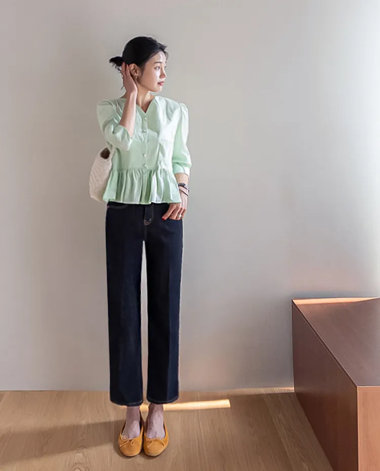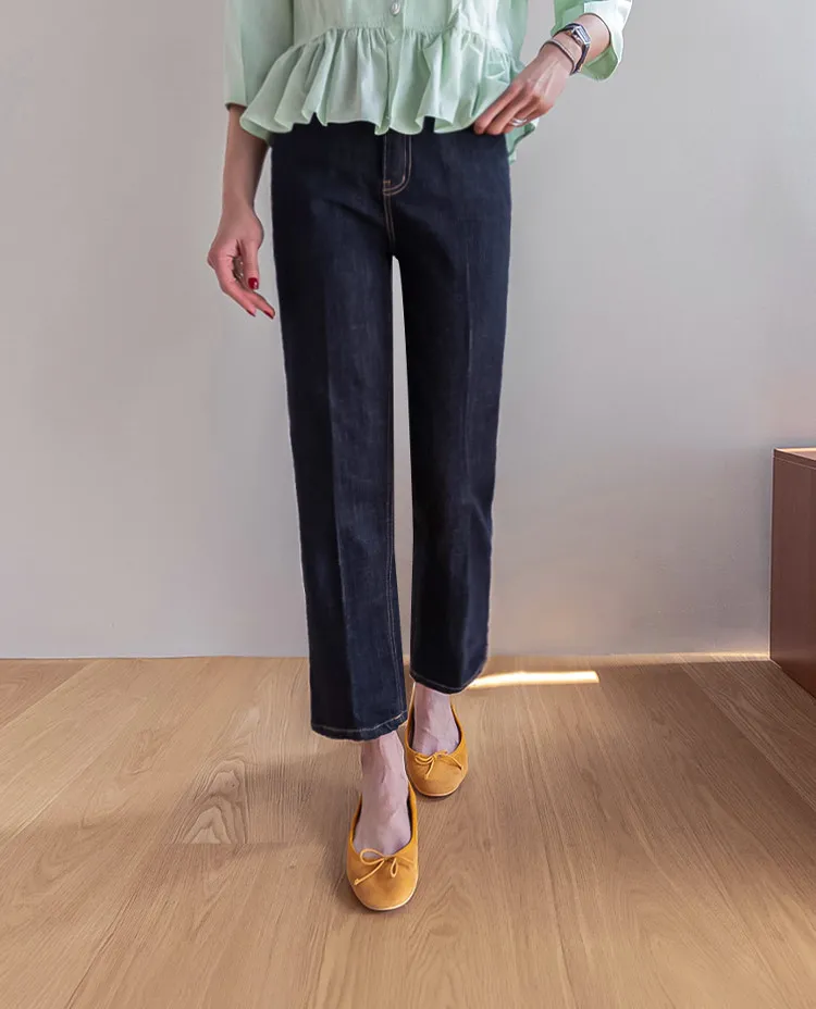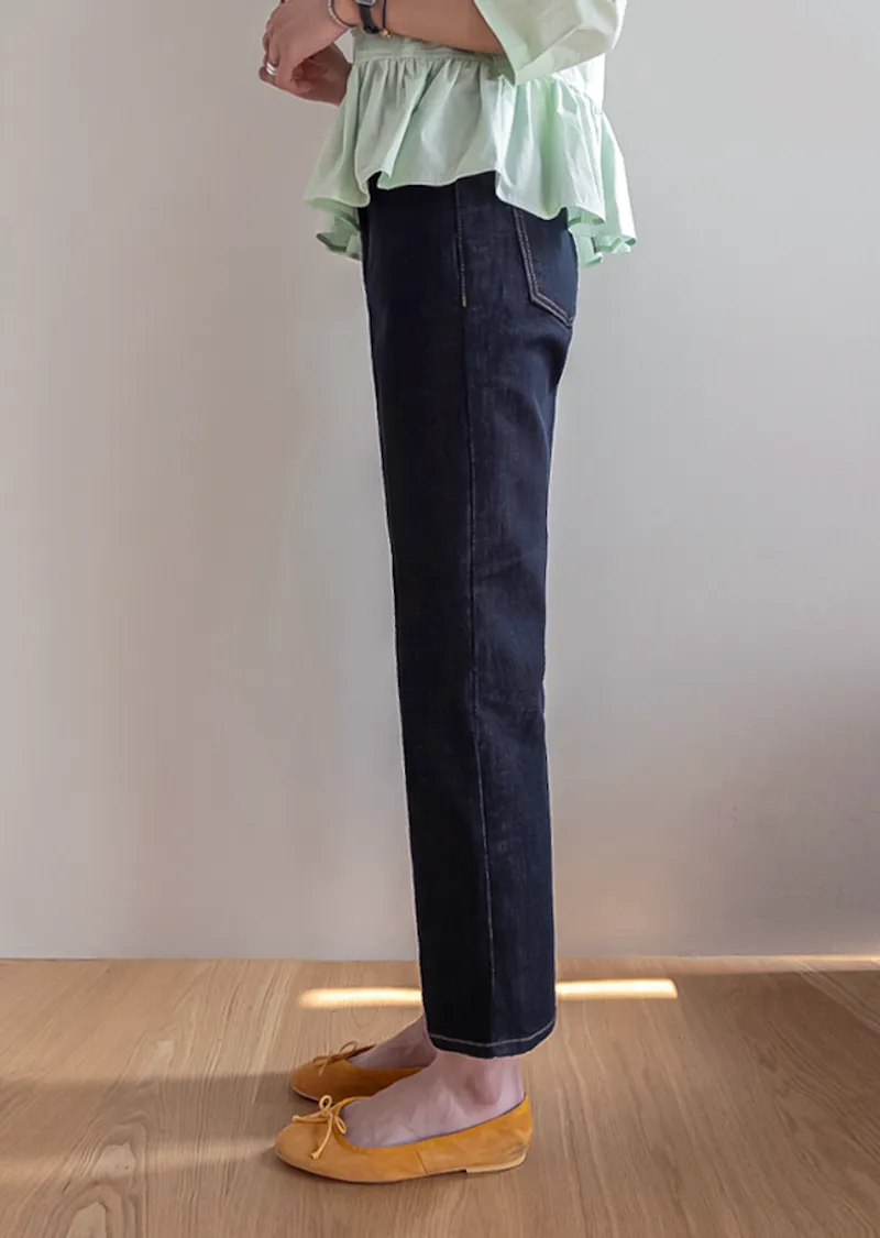 俐落線條及踝長度修身直筒版型牛仔褲
