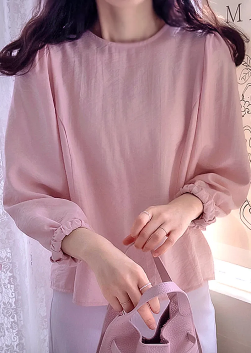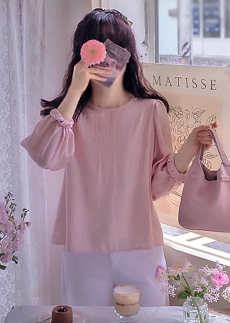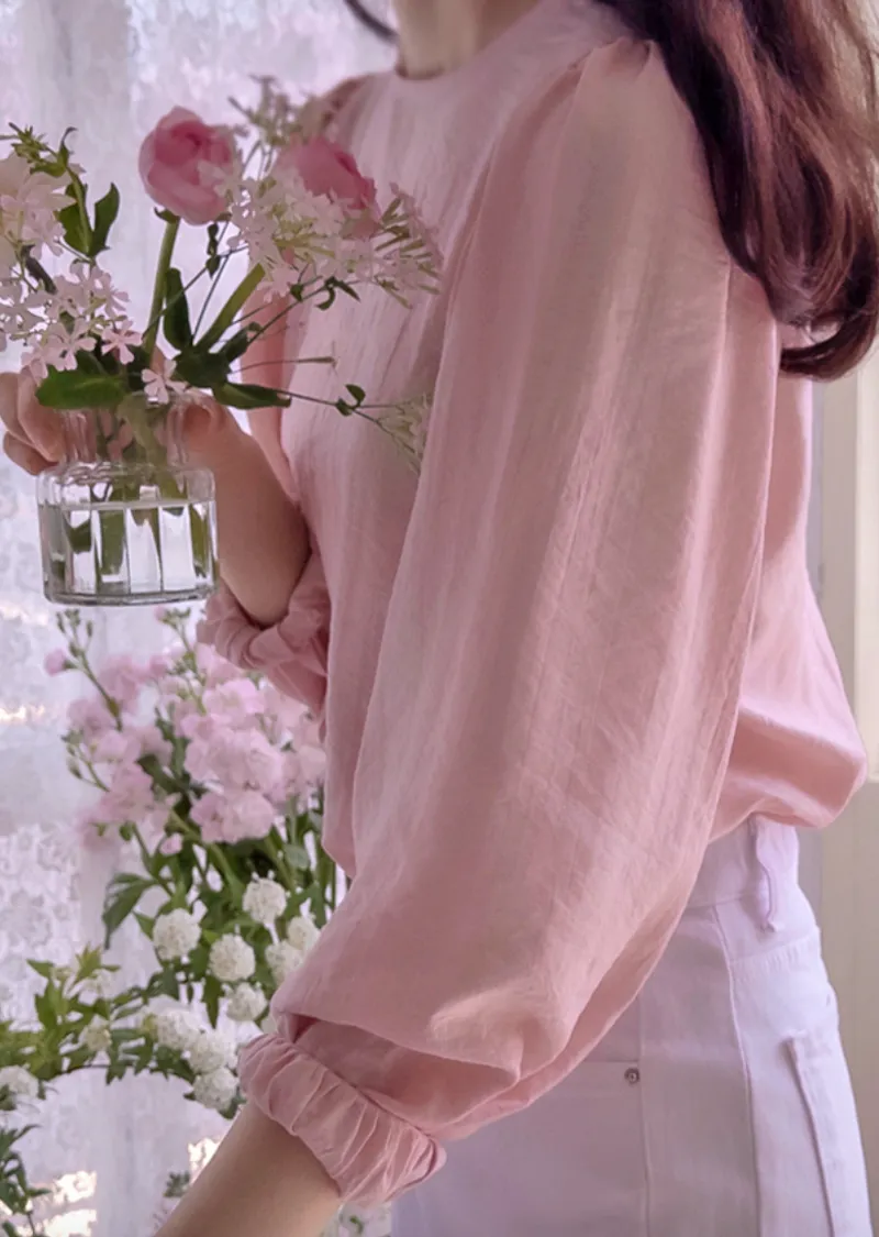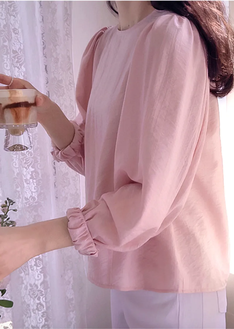 【後背拉鍊】【必備單品】【簡約剪裁,飄逸上衣】【圓領肩部褶皺設計,展現優雅氣質】【搭配色彩,更顯甜美可愛】【飄逸精緻,日常百搭上衣】