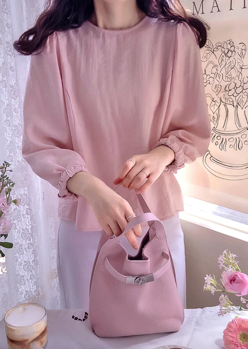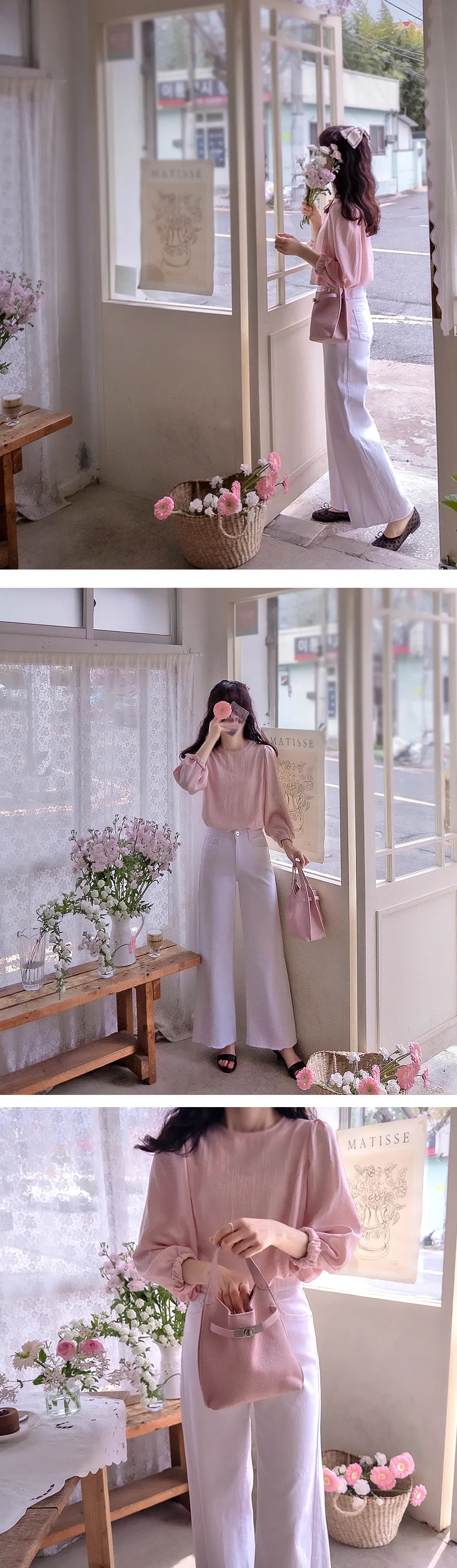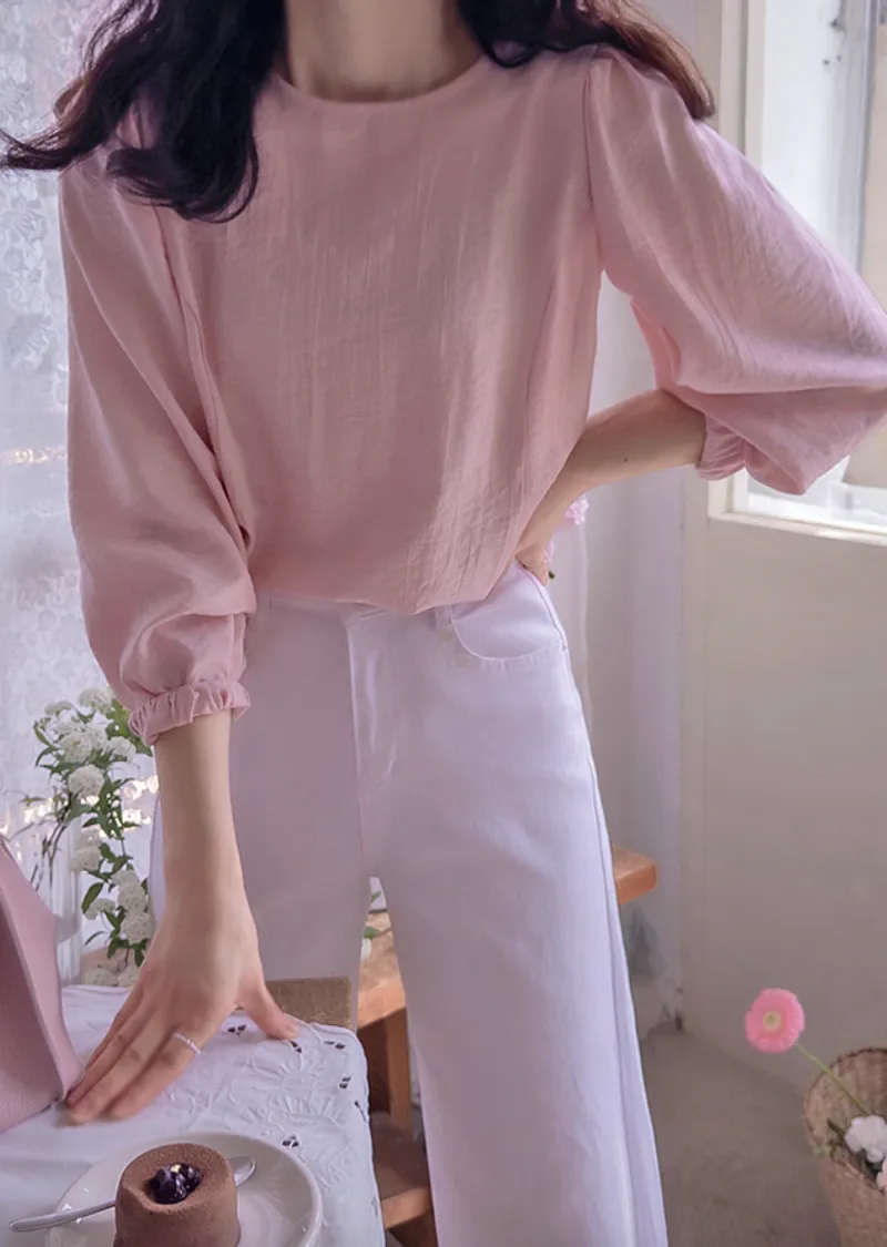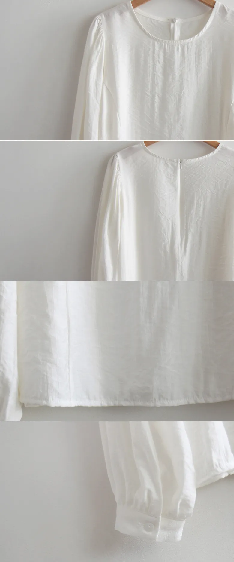 【後背拉鍊】【必備單品】【簡約剪裁,飄逸上衣】【圓領肩部褶皺設計,展現優雅氣質】【搭配色彩,更顯甜美可愛】【飄逸精緻,日常百搭上衣】