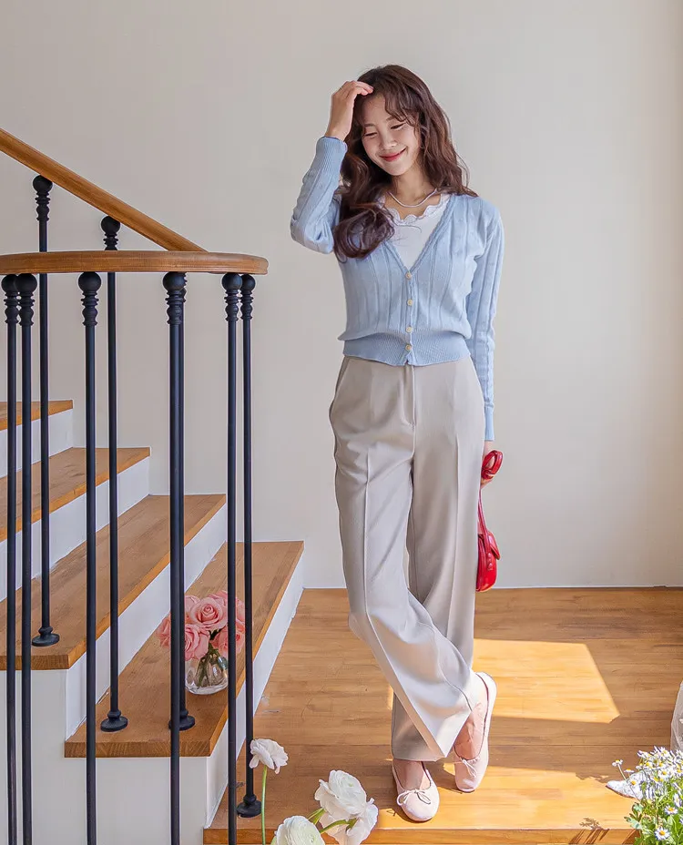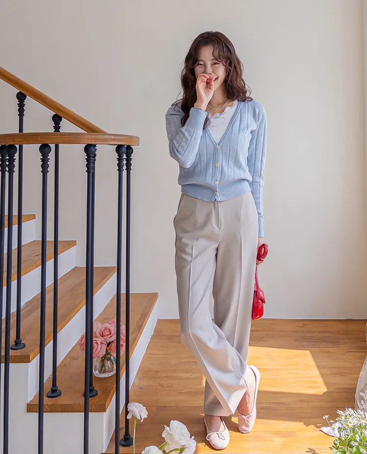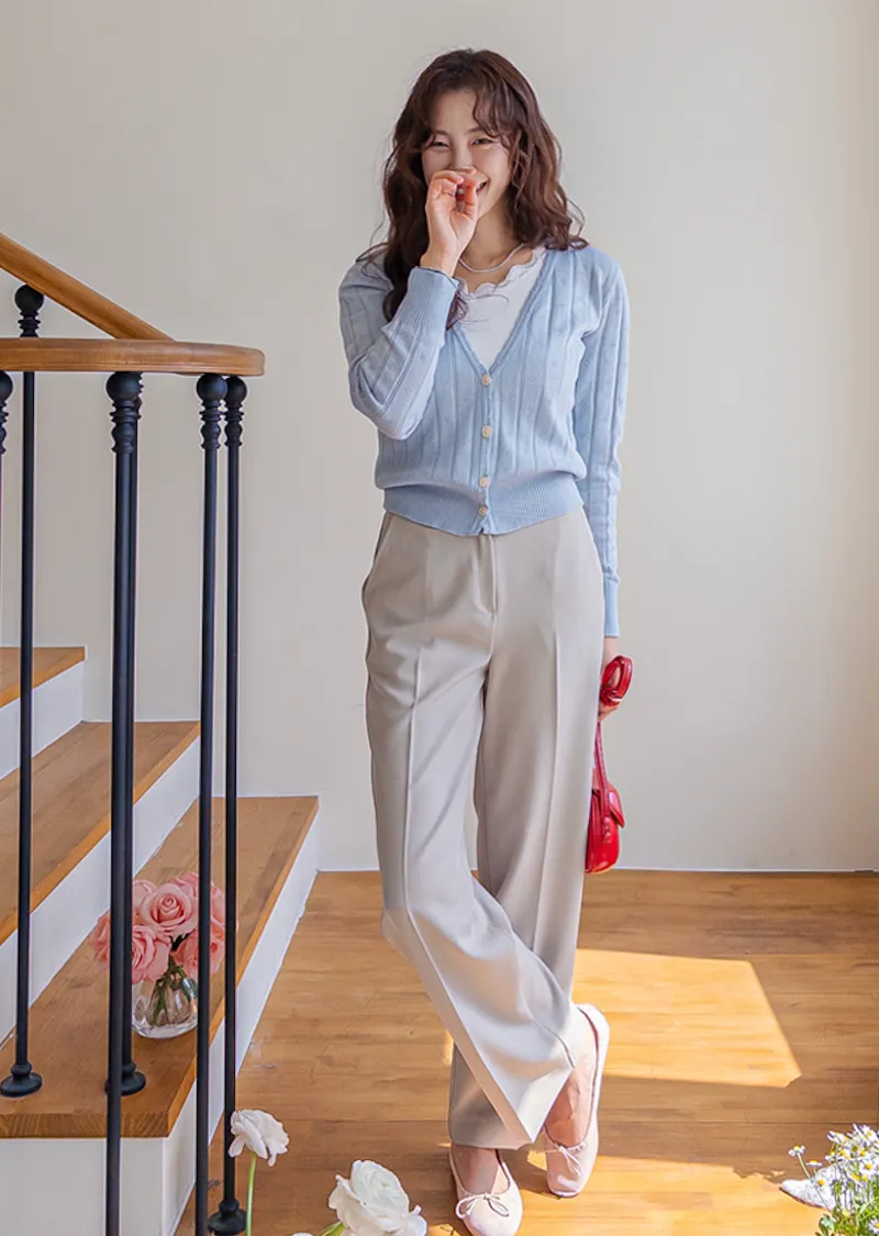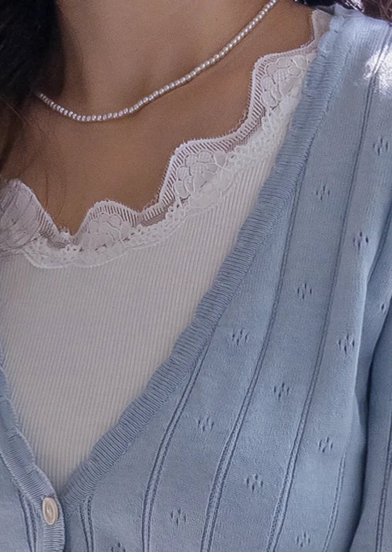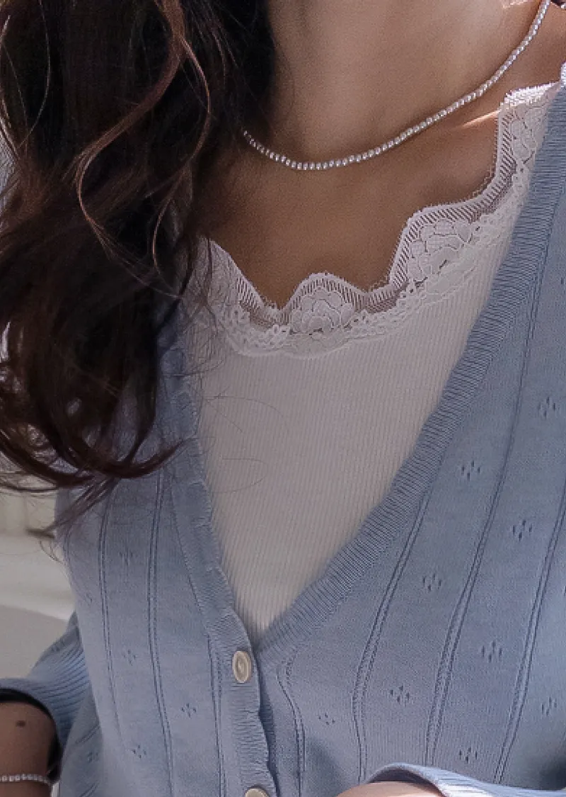 柔軟舒適領口鈕扣波浪襯邊精緻鏤空設計開衫