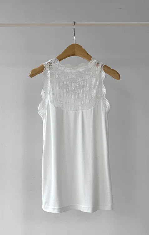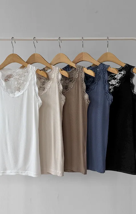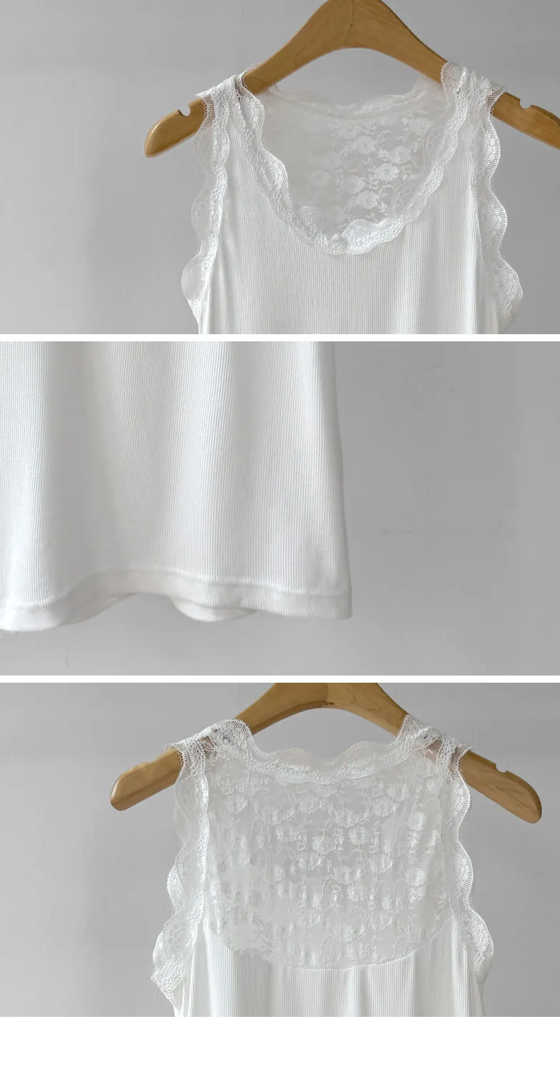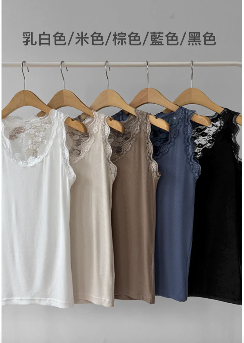 【蕾絲細節無袖上衣,展現女性柔美氣質♡】【彈性氨綸布料,彈性十足】【百搭實用,打造精緻貼合感】【日常點綴的理想之選】