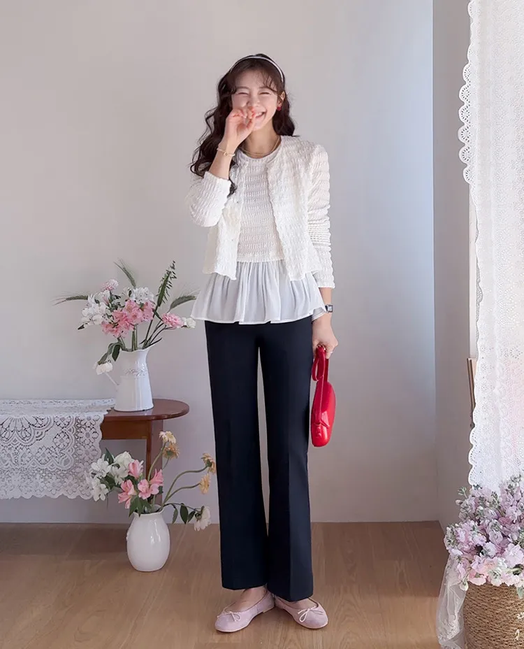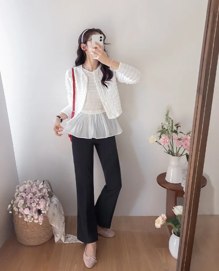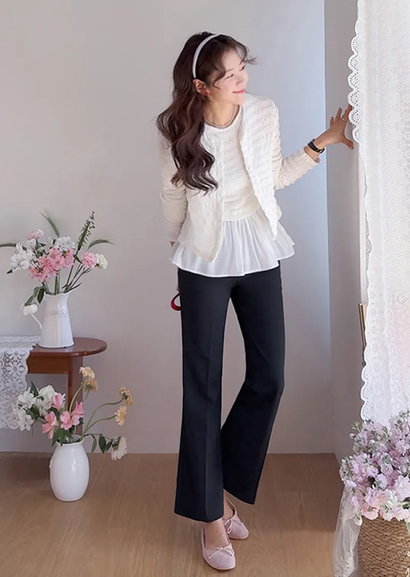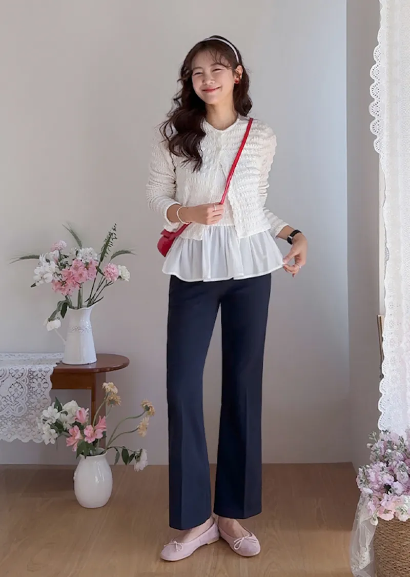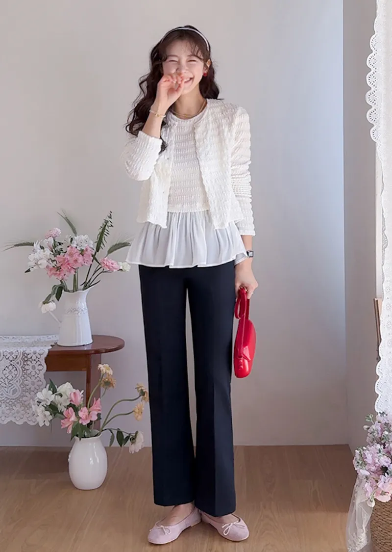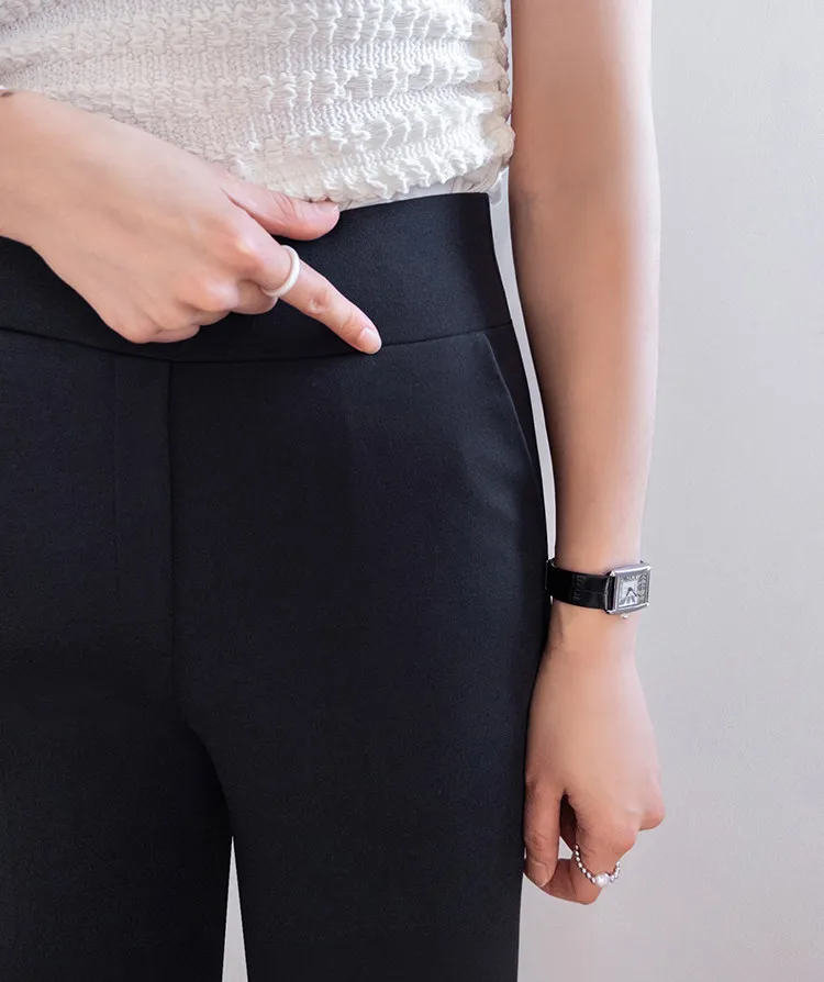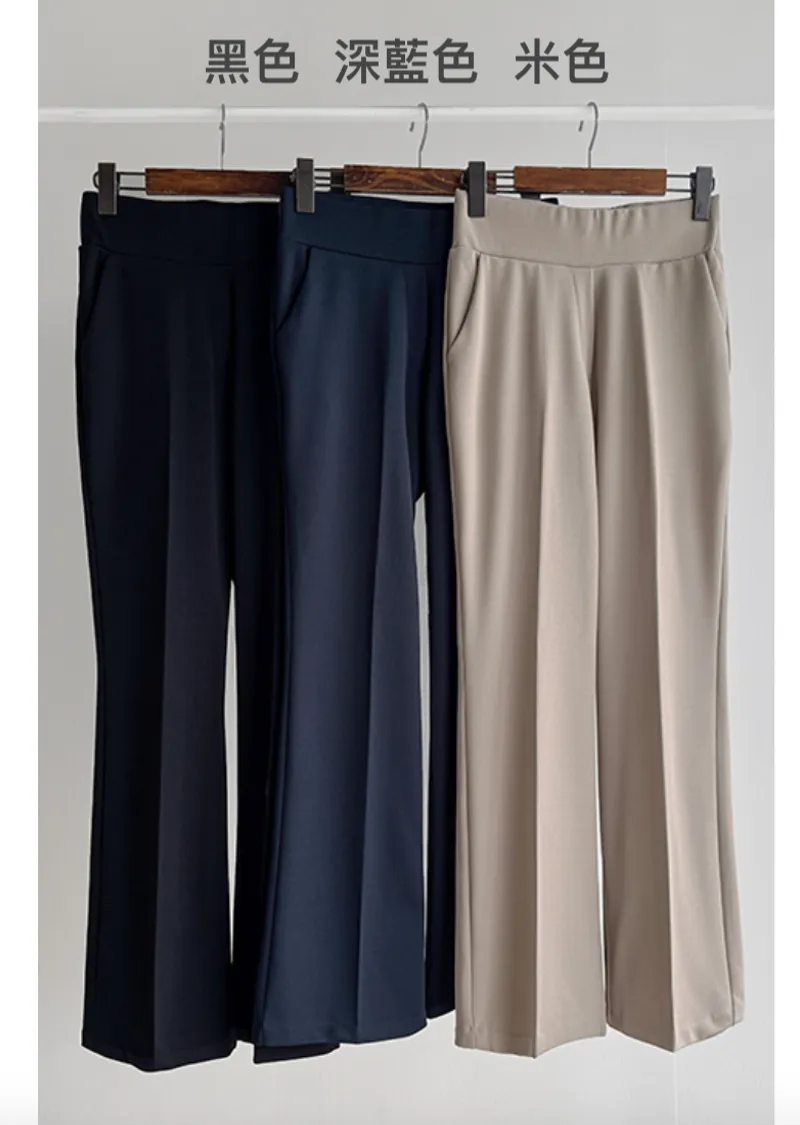 【寬彈性腰帶設計,舒適支撐腰部】【半靴型褲型,凸顯身材曲線】【高彈性布料,舒適活動】【百搭長褲,日常穿著或工作場合皆宜】