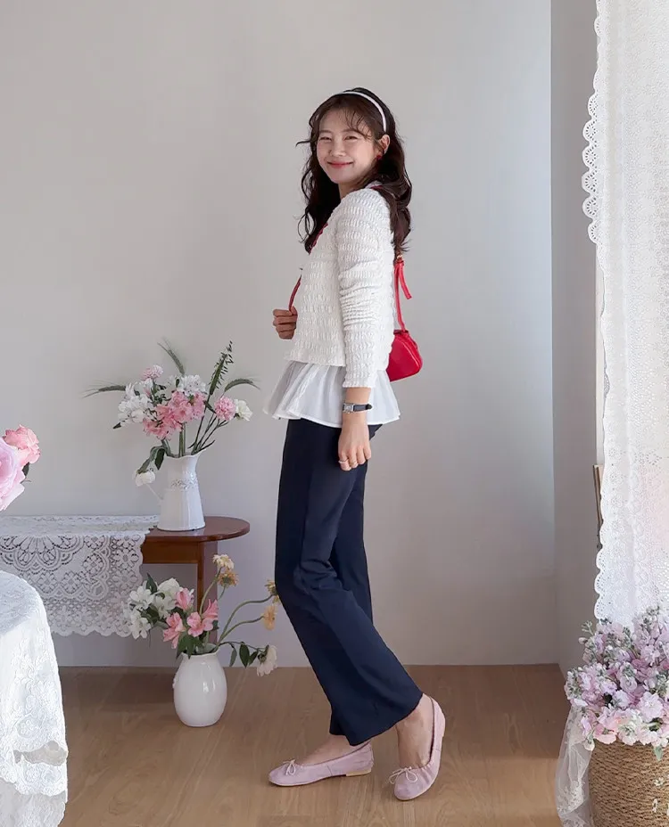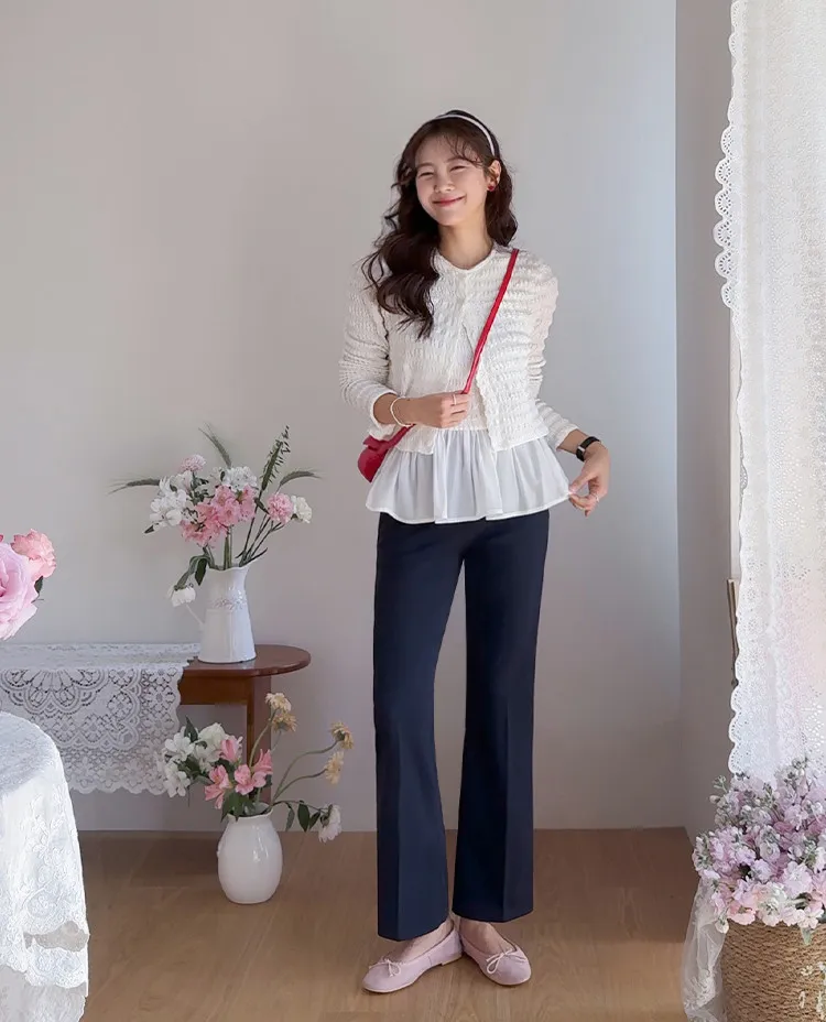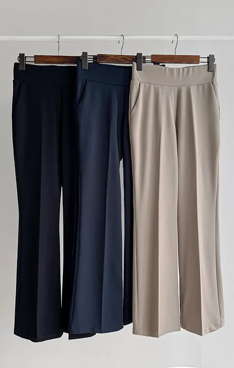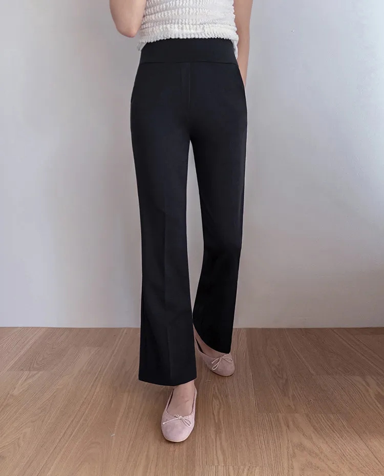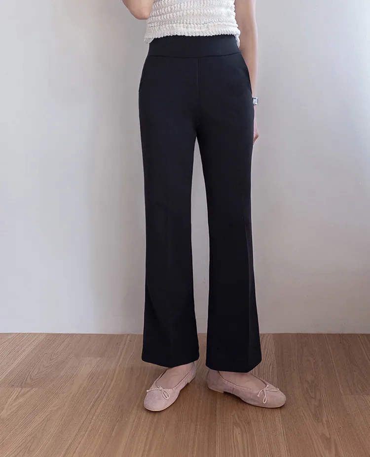 輕盈舒適寬彈性腰帶靴型休閒褲