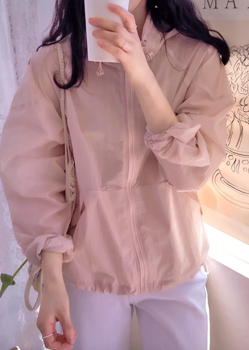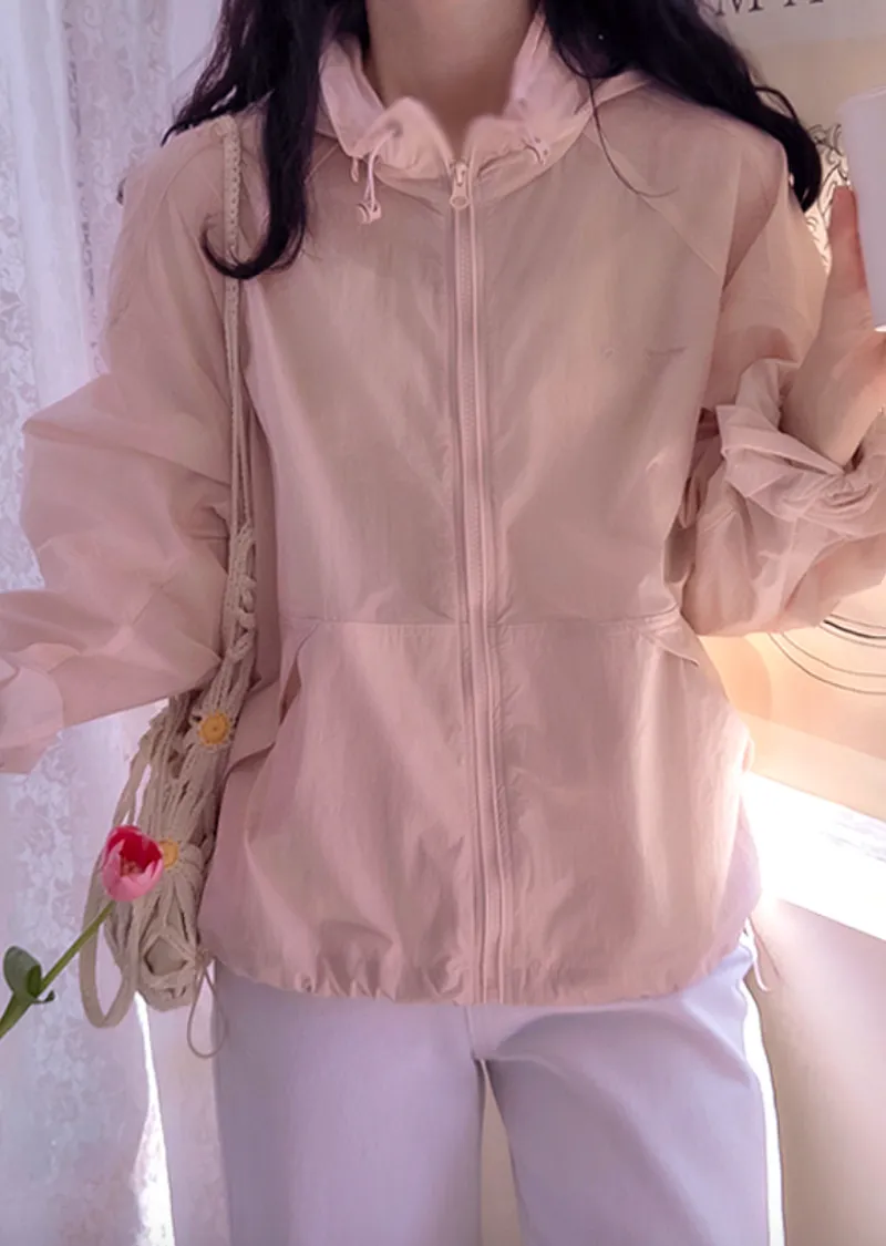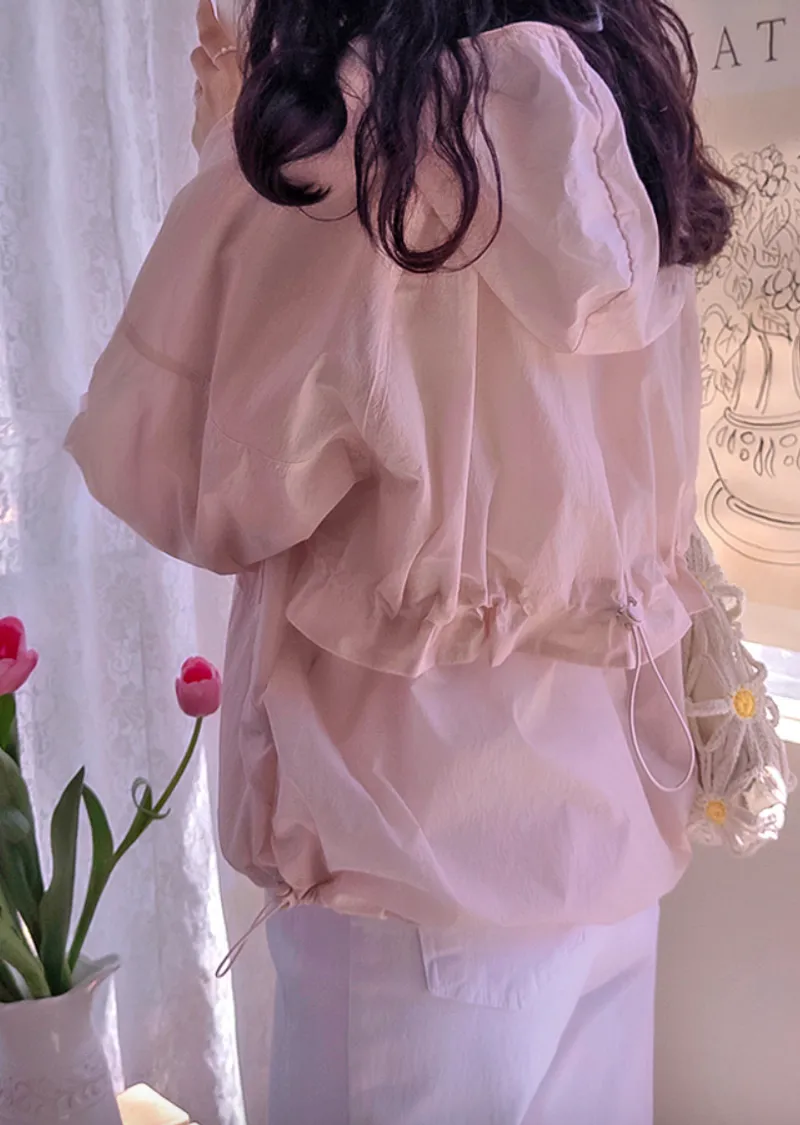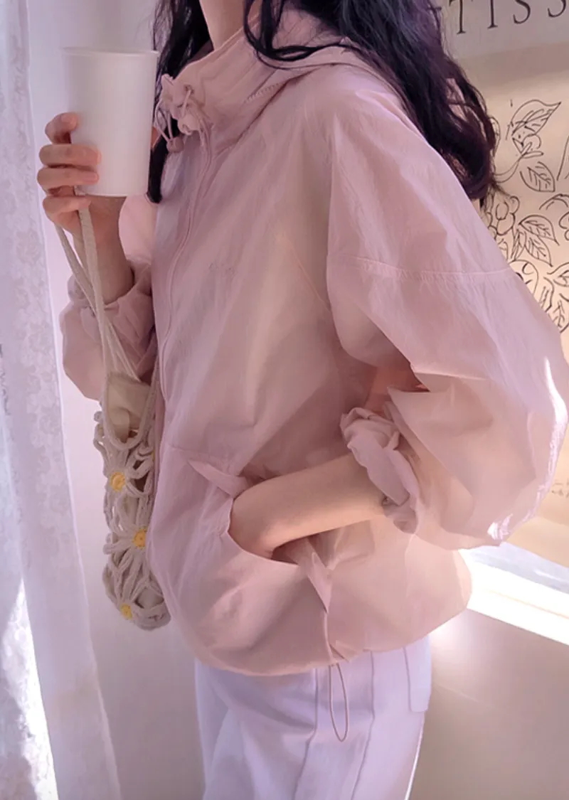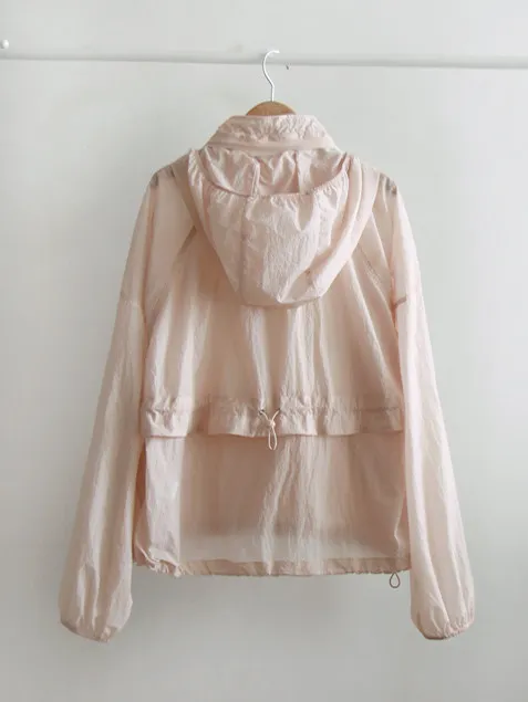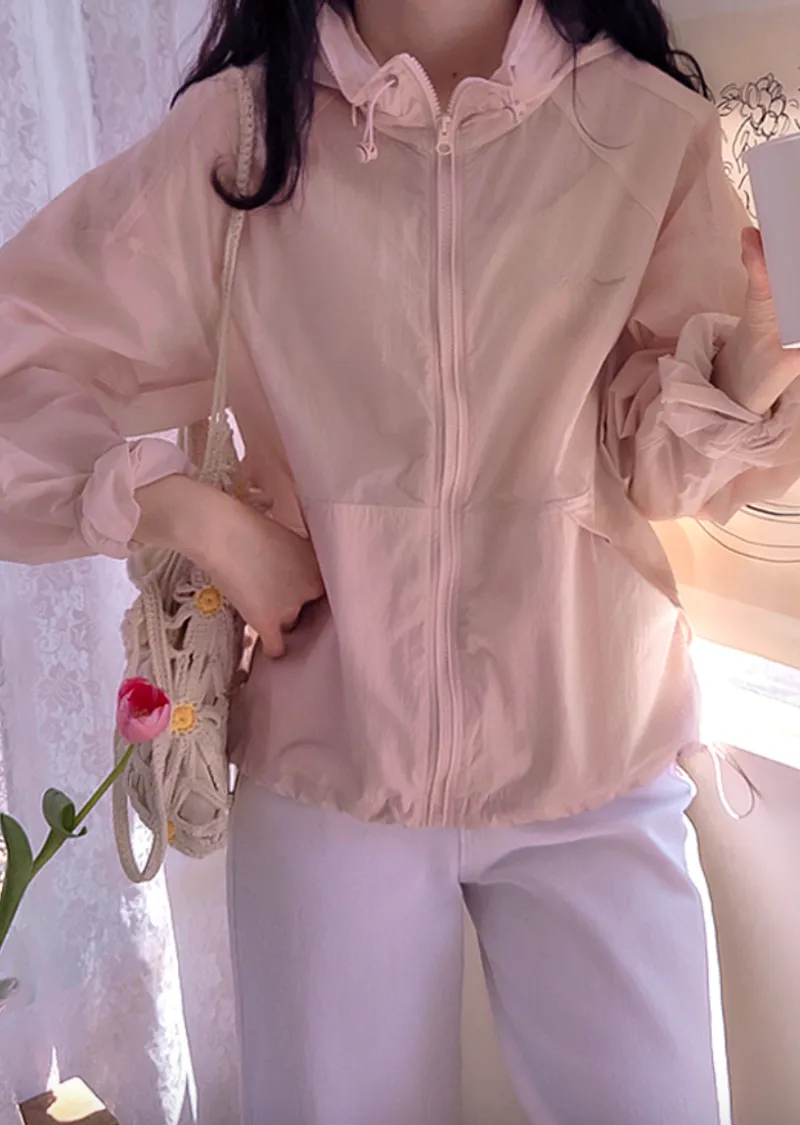 春夏風格穿搭輕款抽繩連帽拉鍊外套