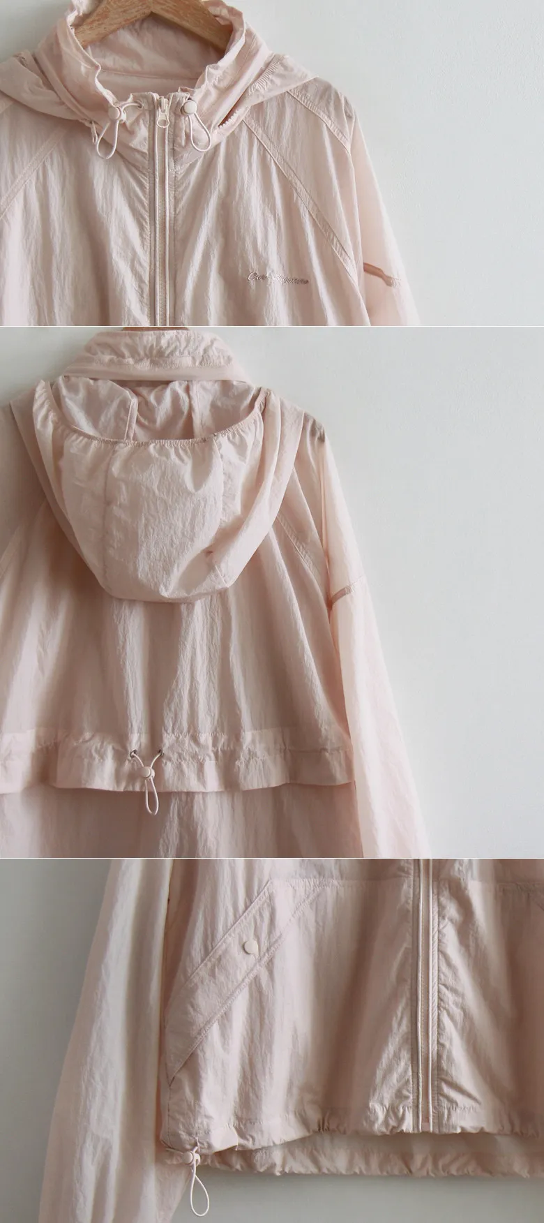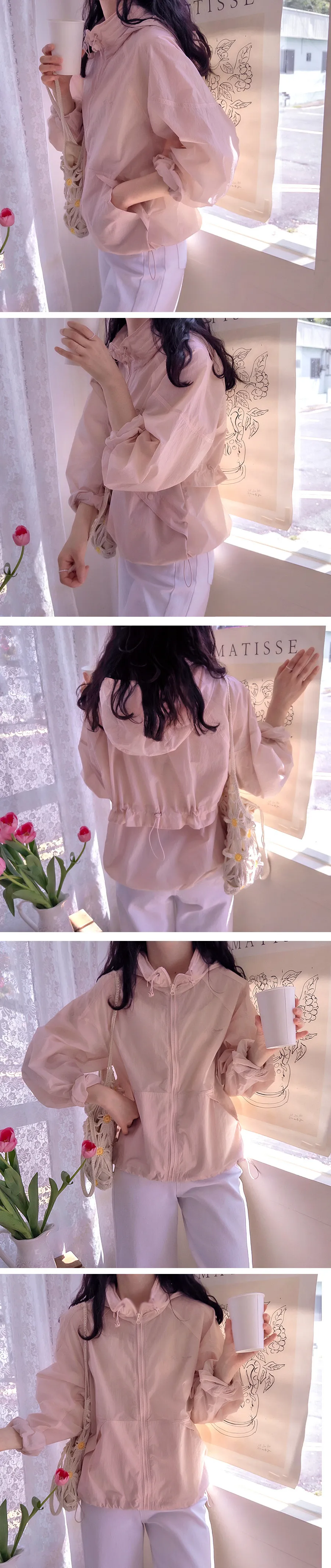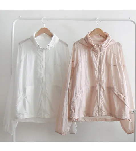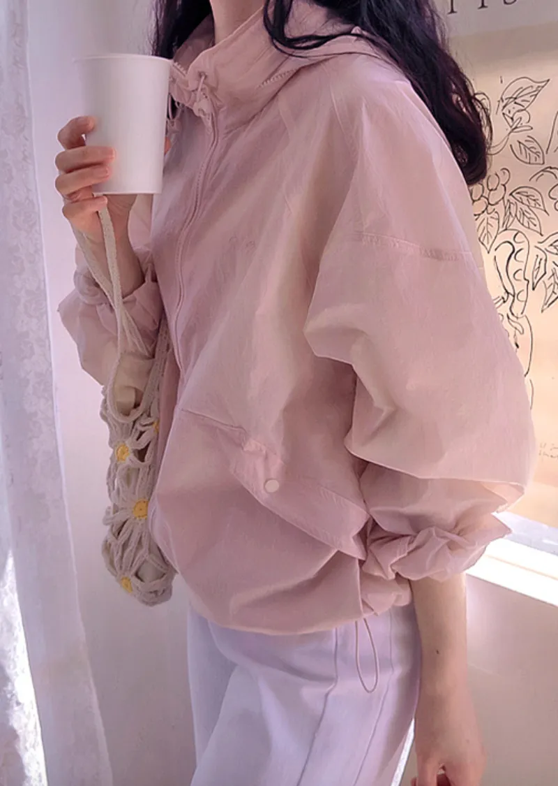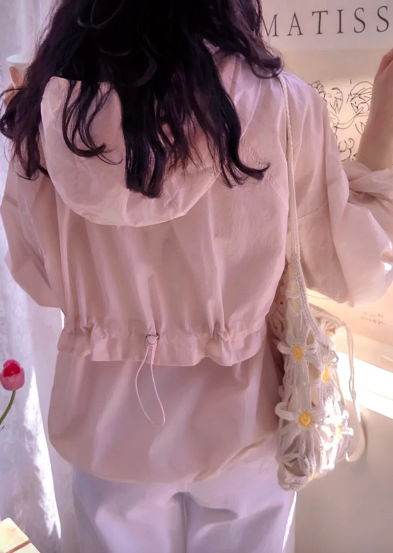 春夏風格穿搭輕款抽繩連帽拉鍊外套