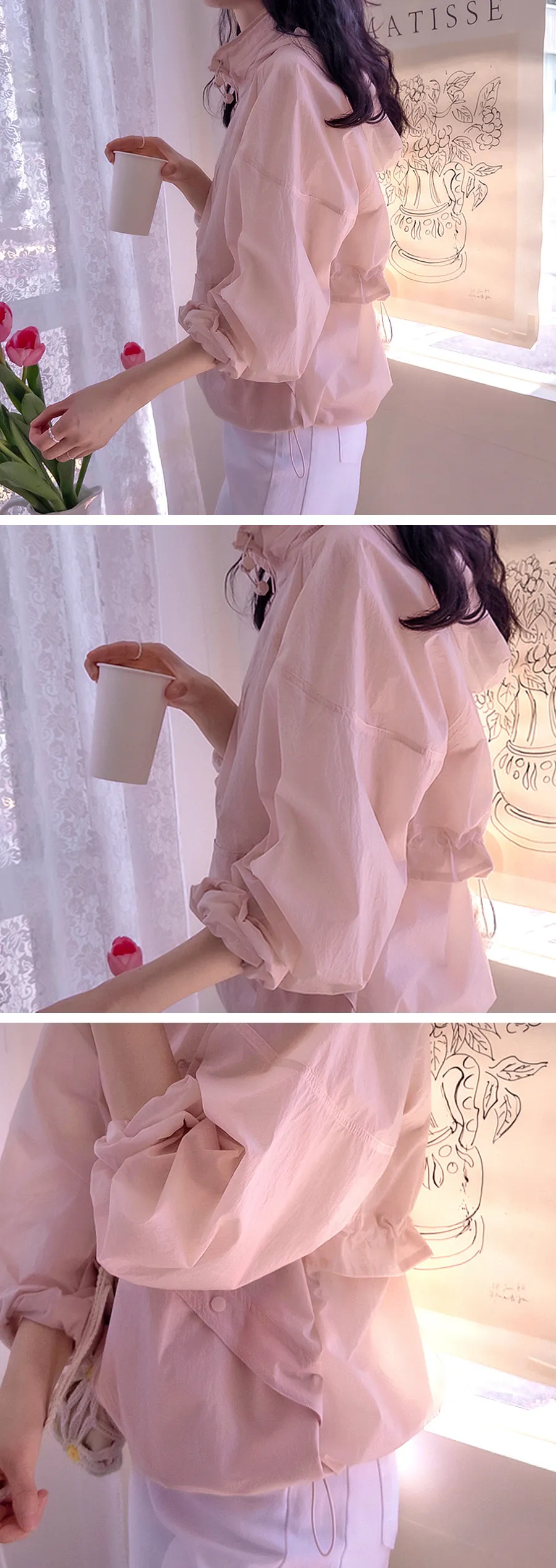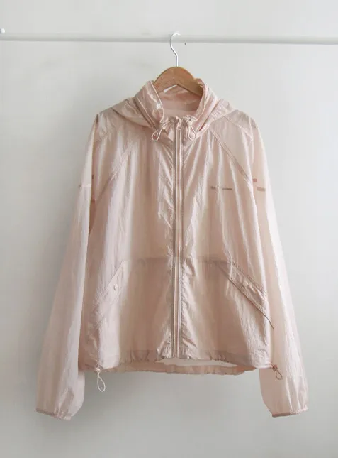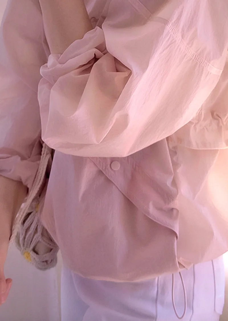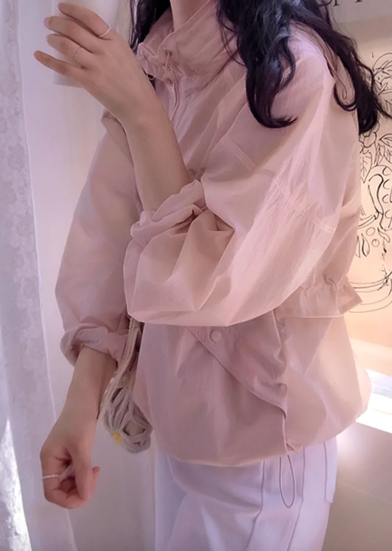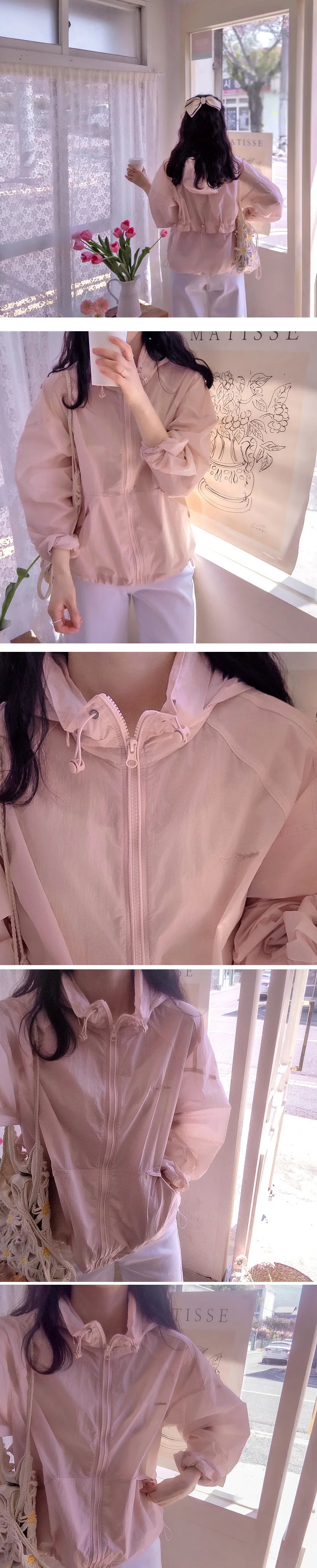 春夏風格穿搭輕款抽繩連帽拉鍊外套