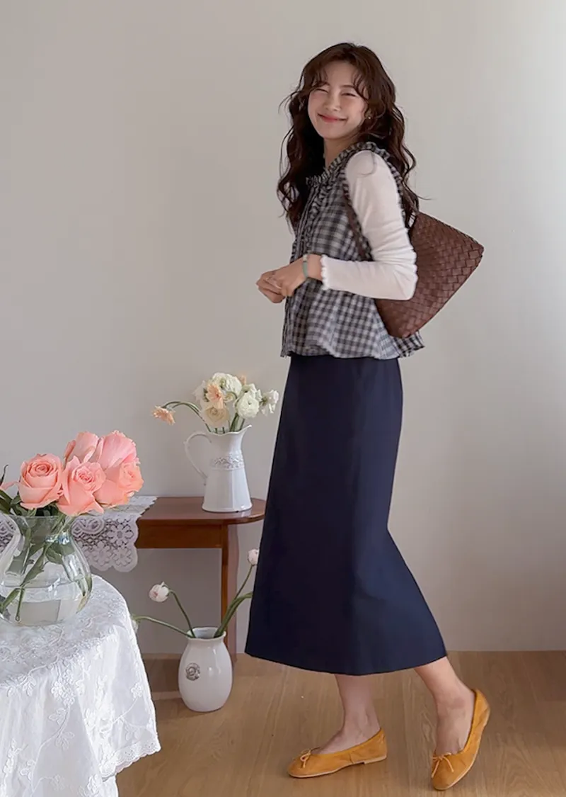 精緻氛圍舒適彈性修身H剪裁後開衩中長裙