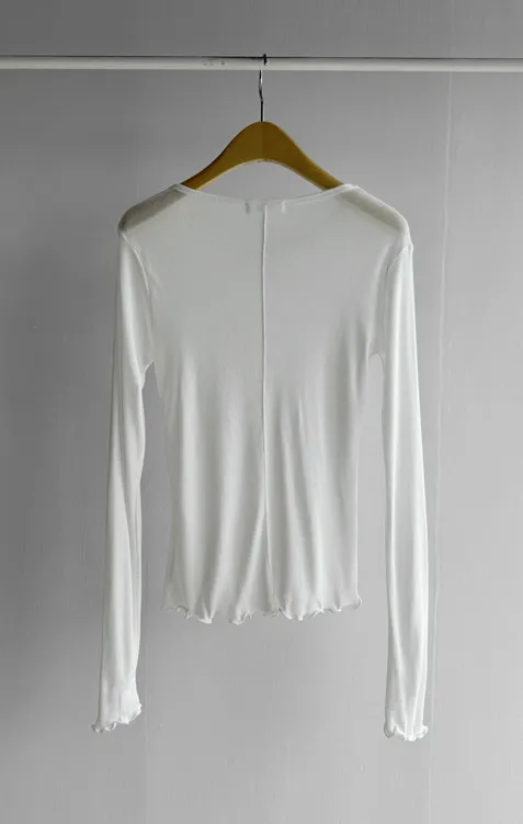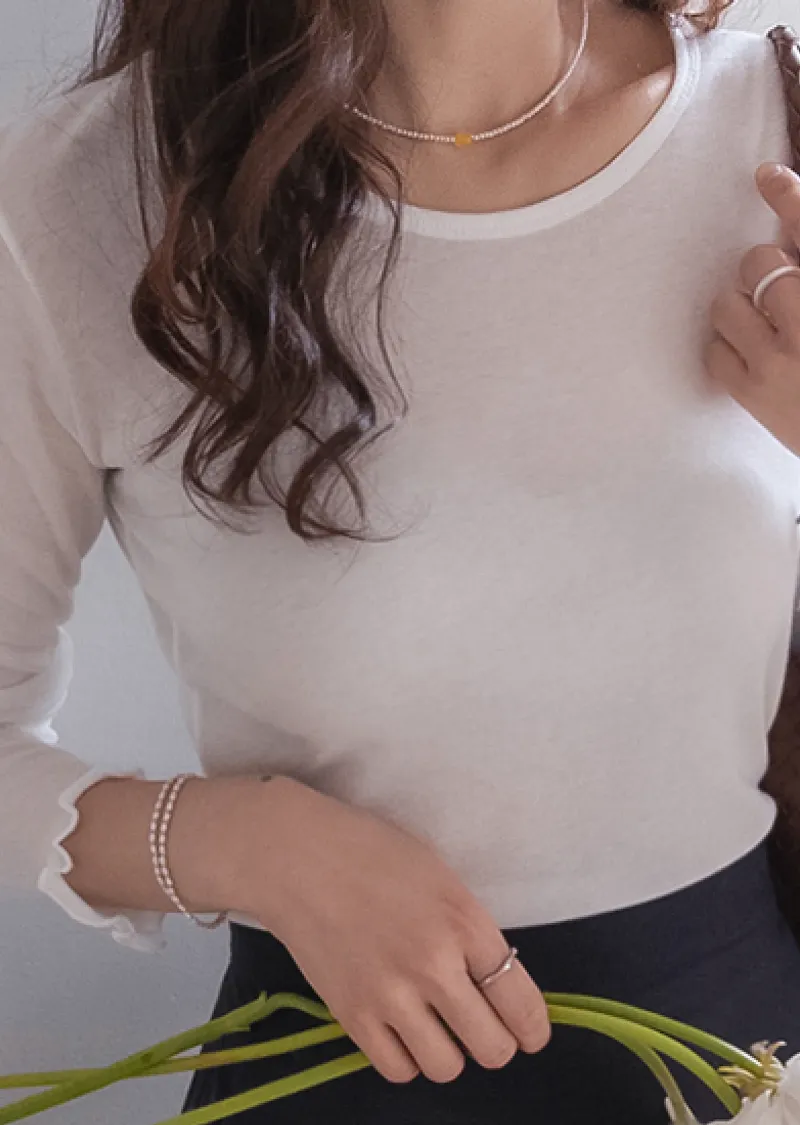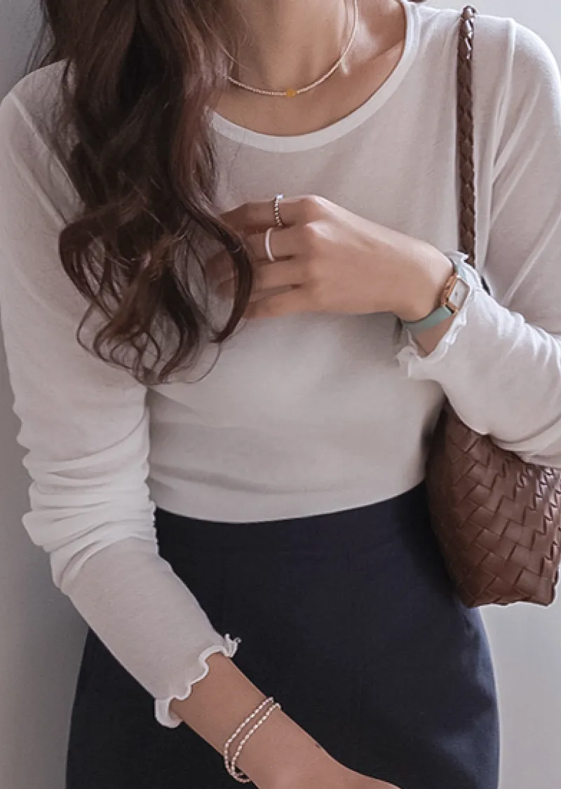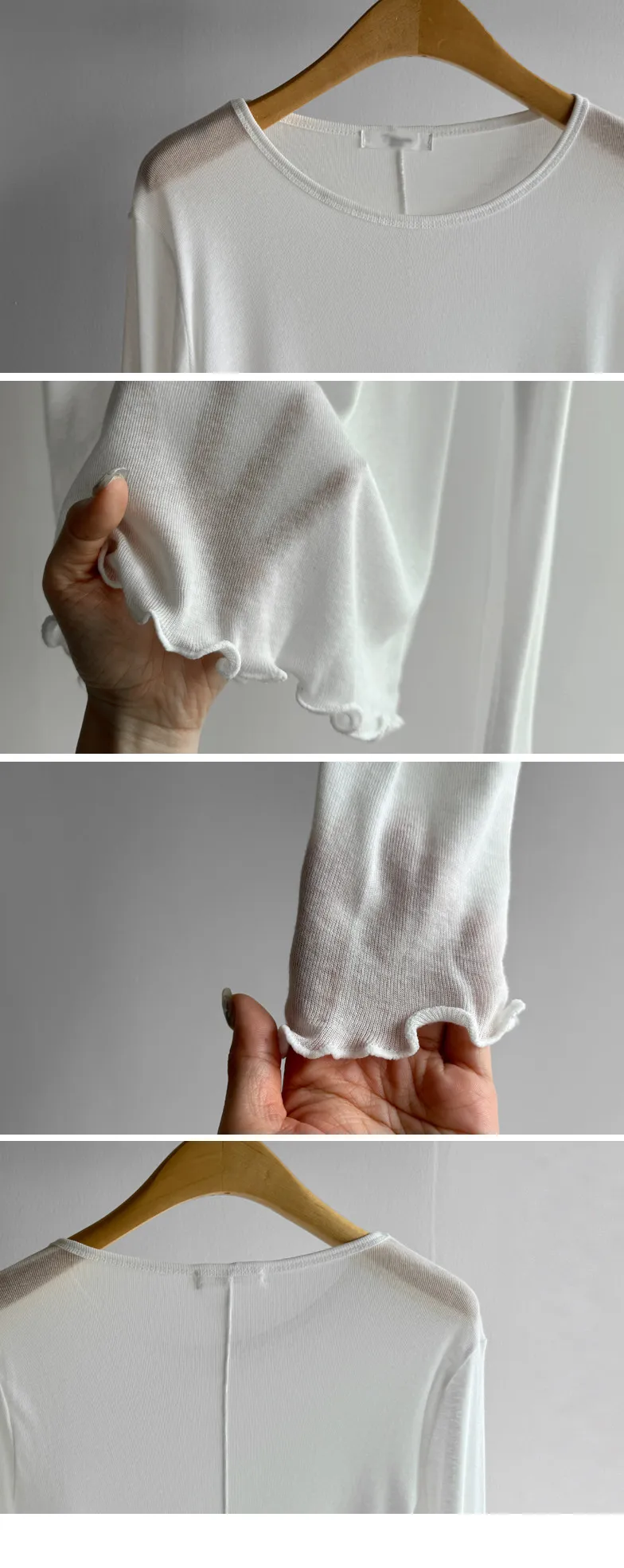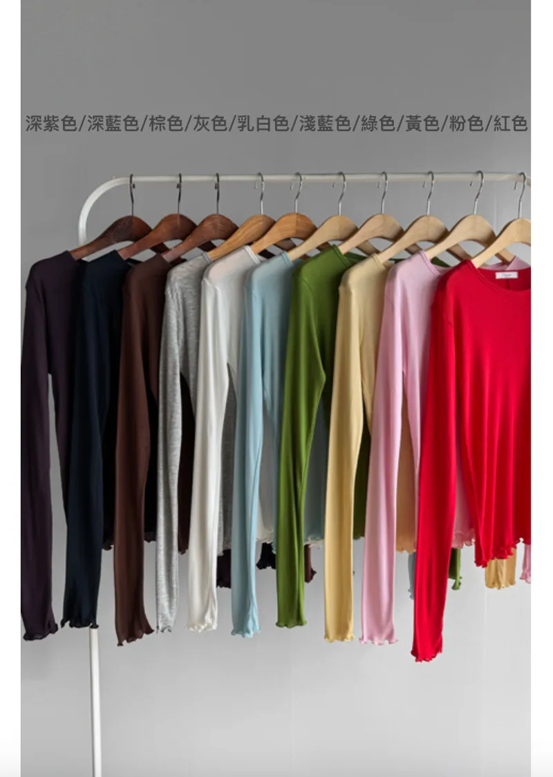 柔軟彈性天絲混紡點綴袖末下擺波浪邊上衣
