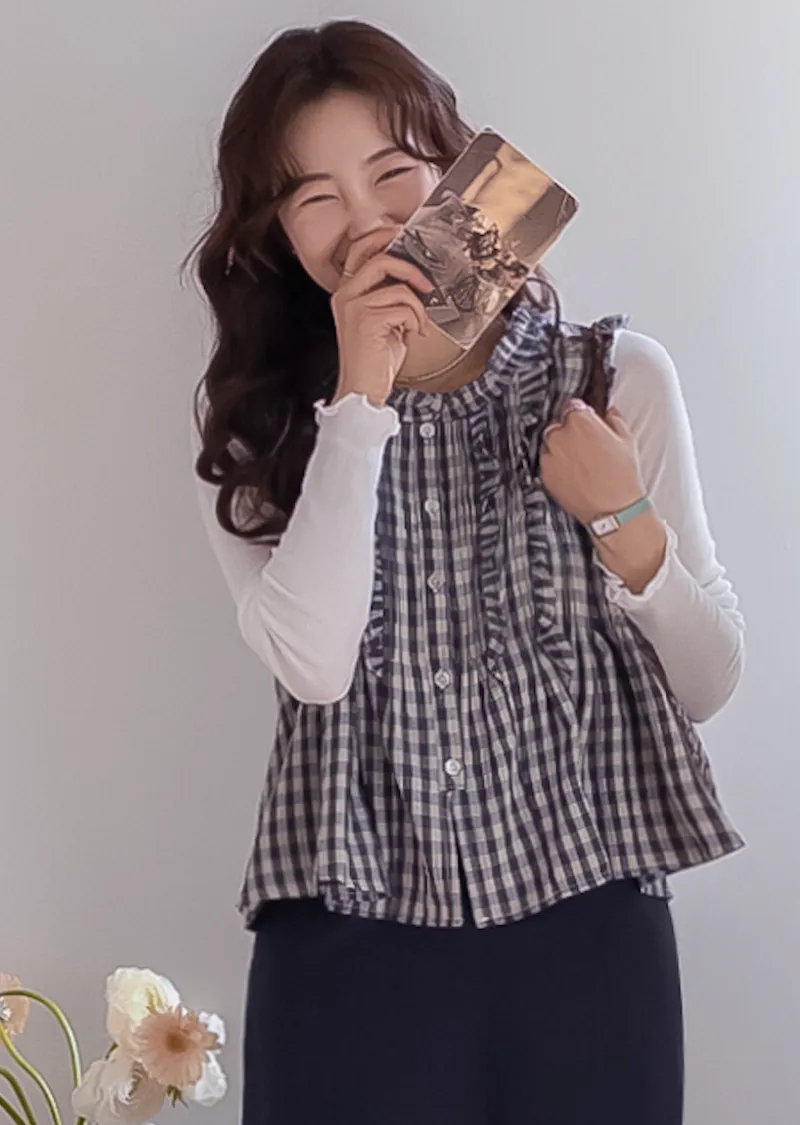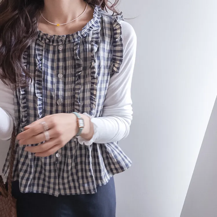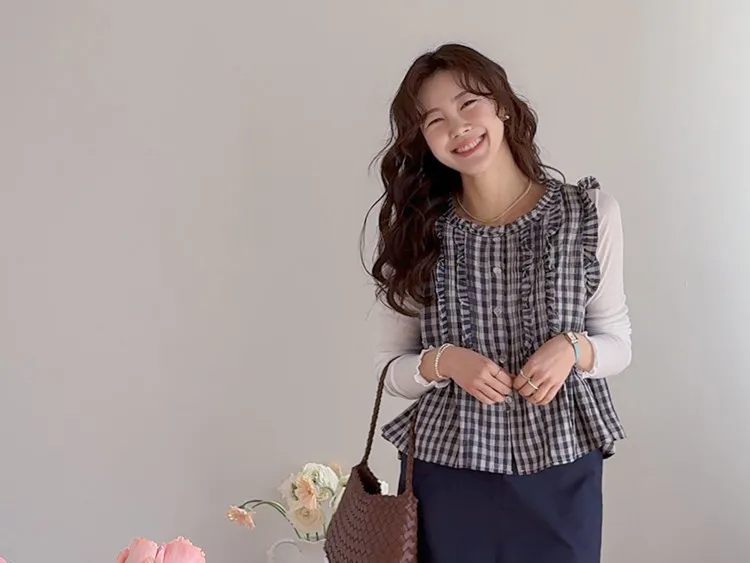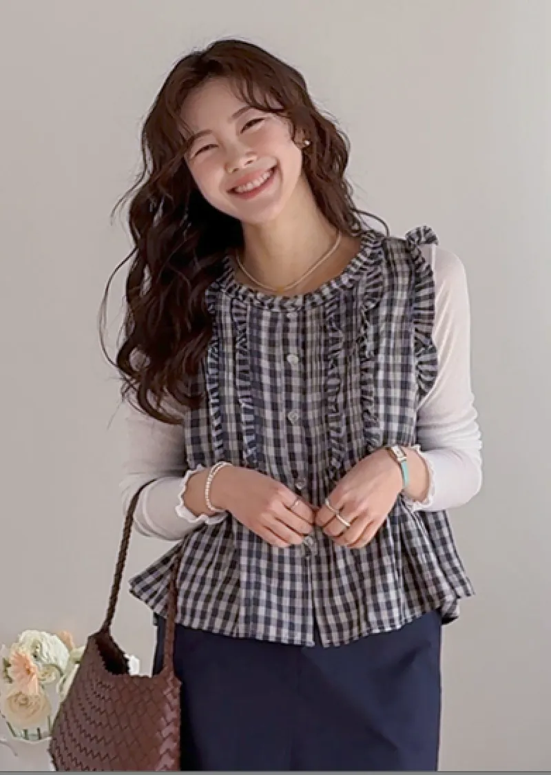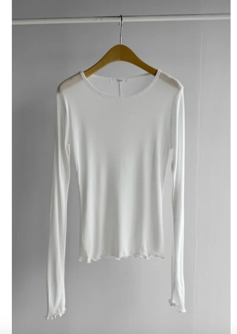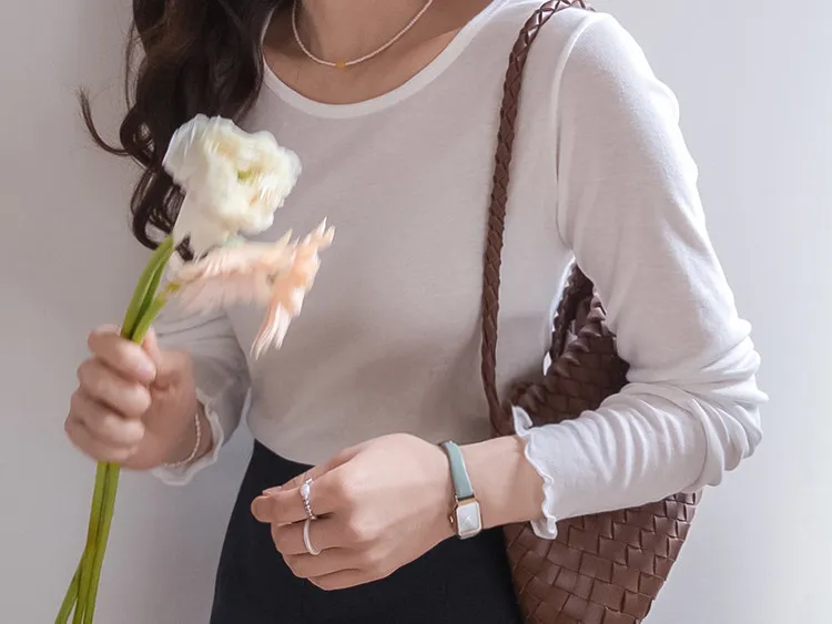 柔軟彈性天絲混紡點綴袖末下擺波浪邊上衣