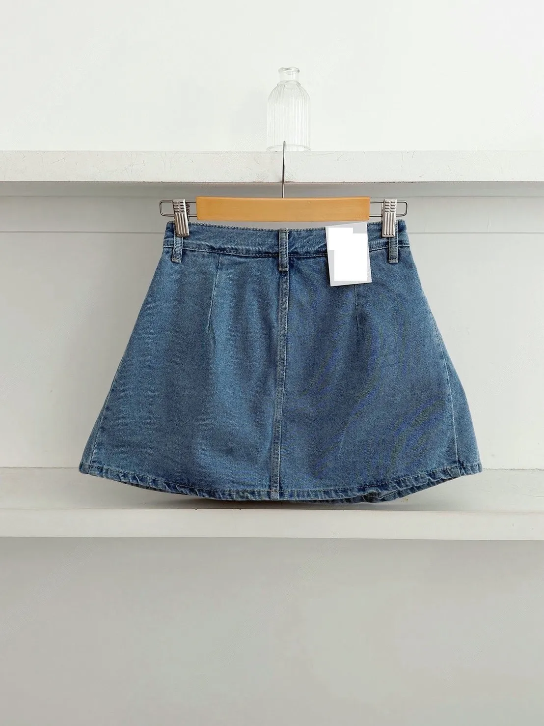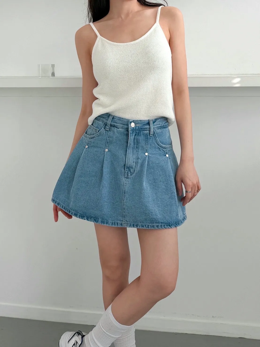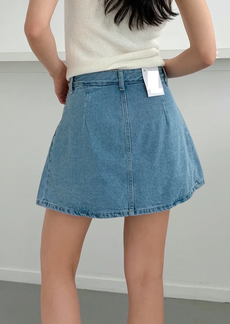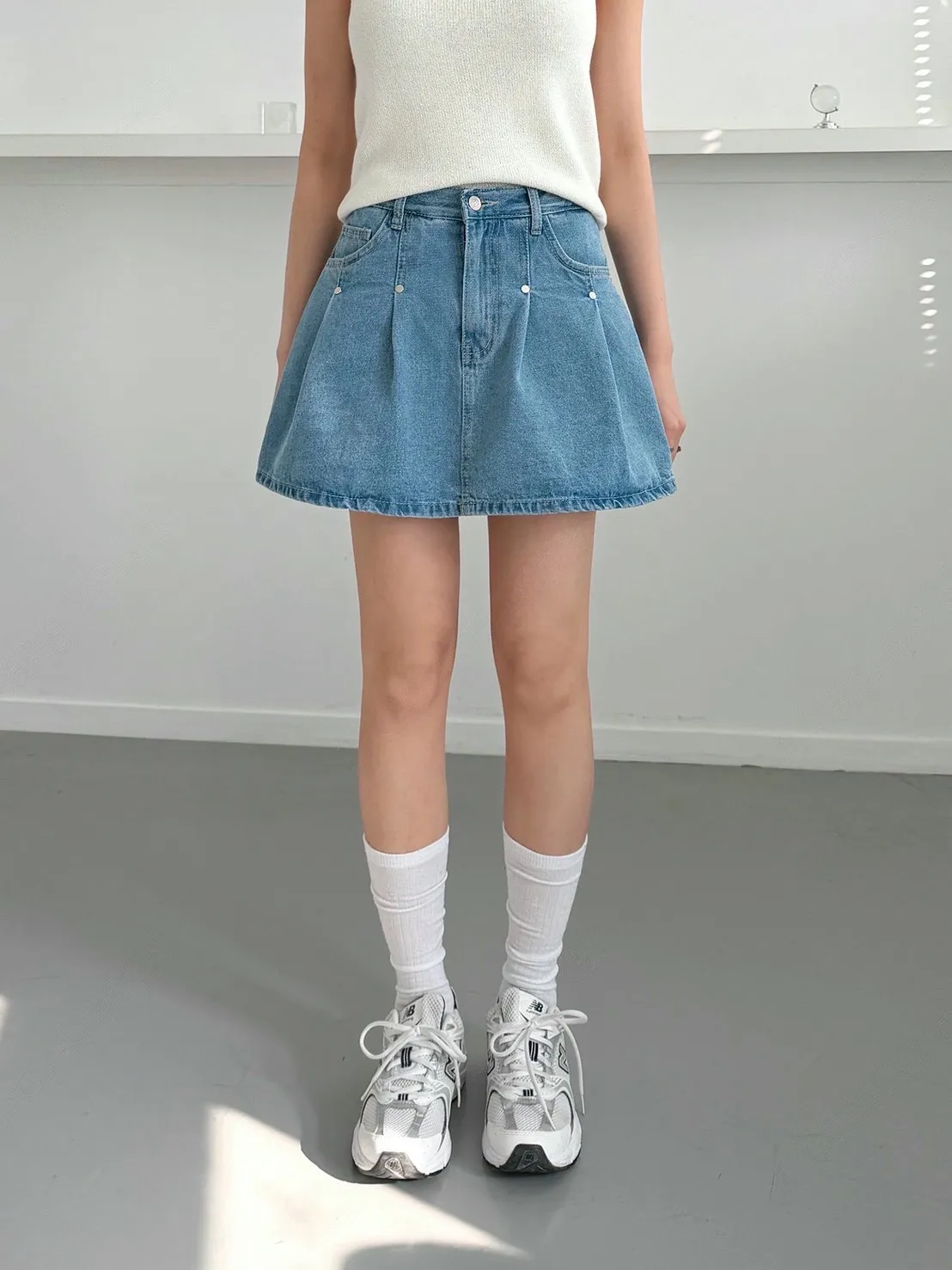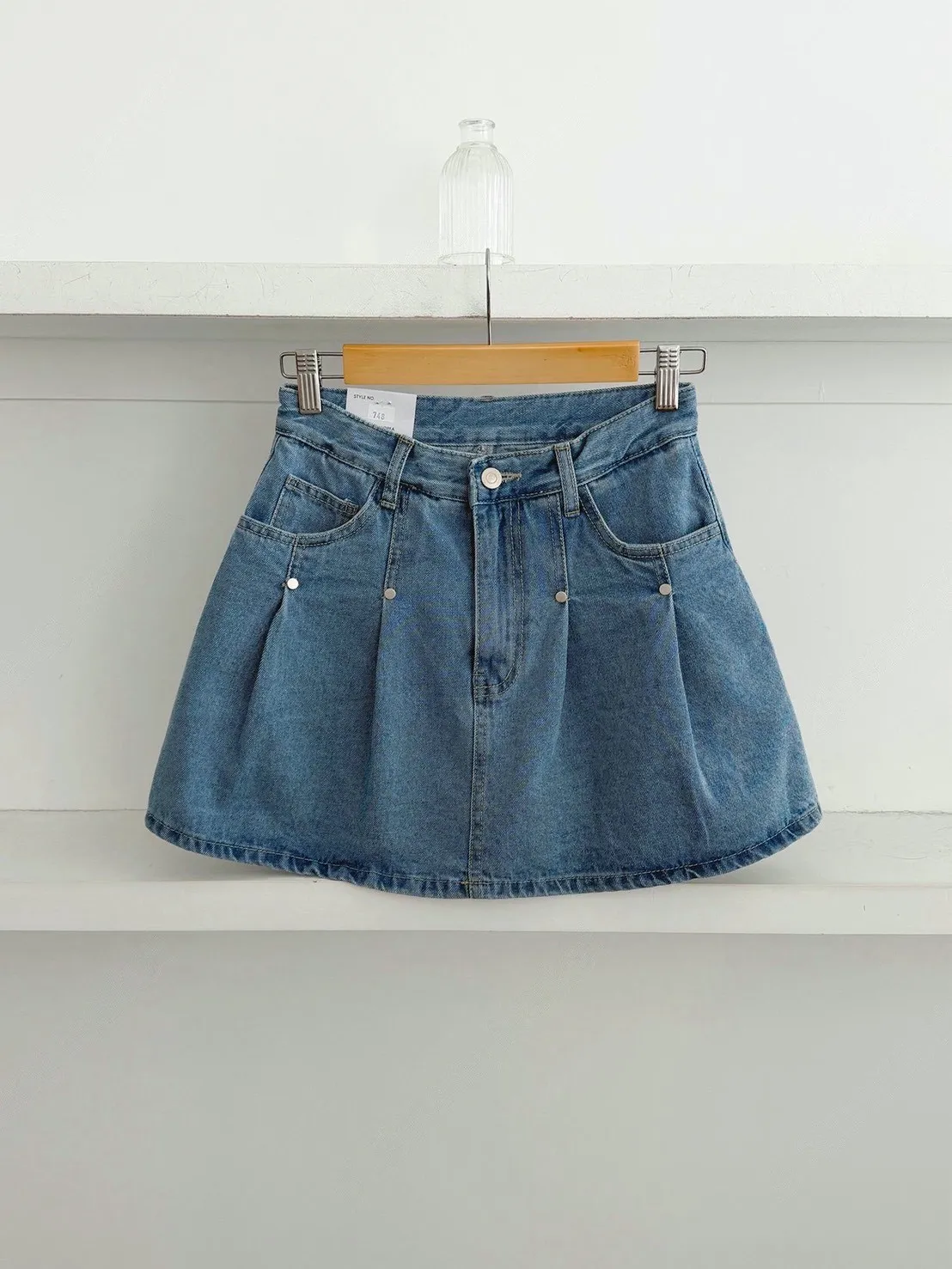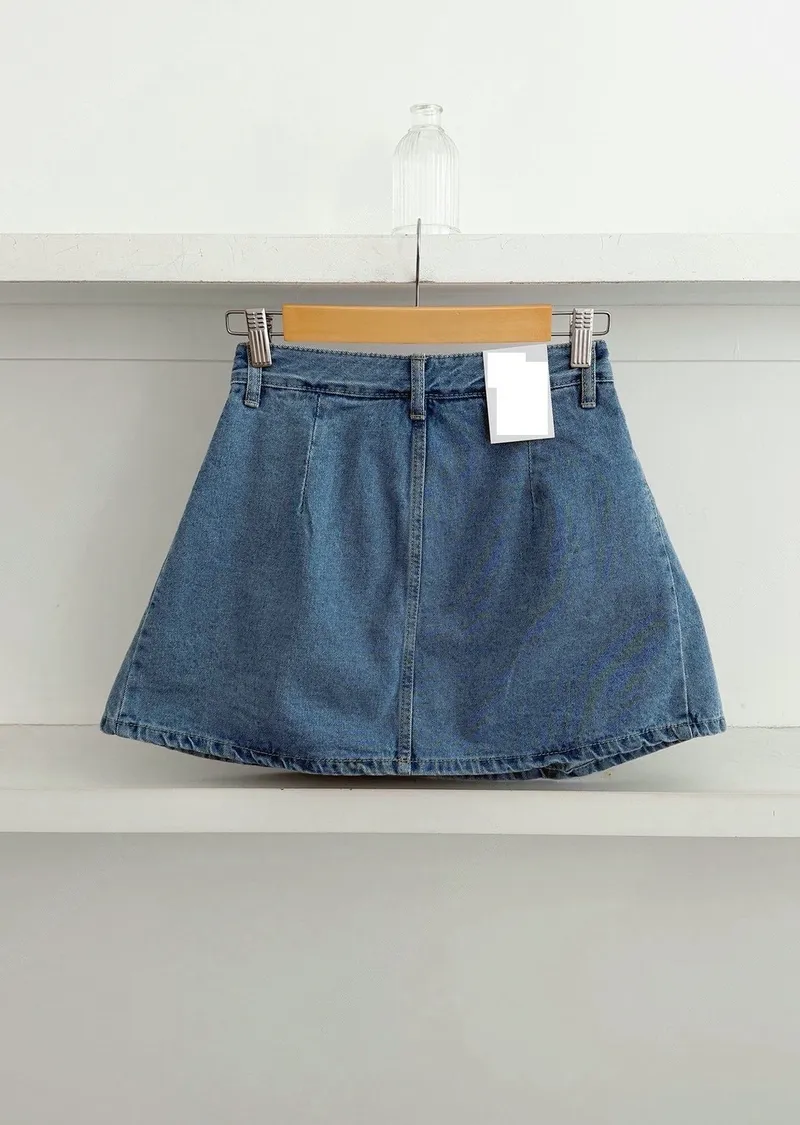 高腰鉚釘牛仔百褶褲裙