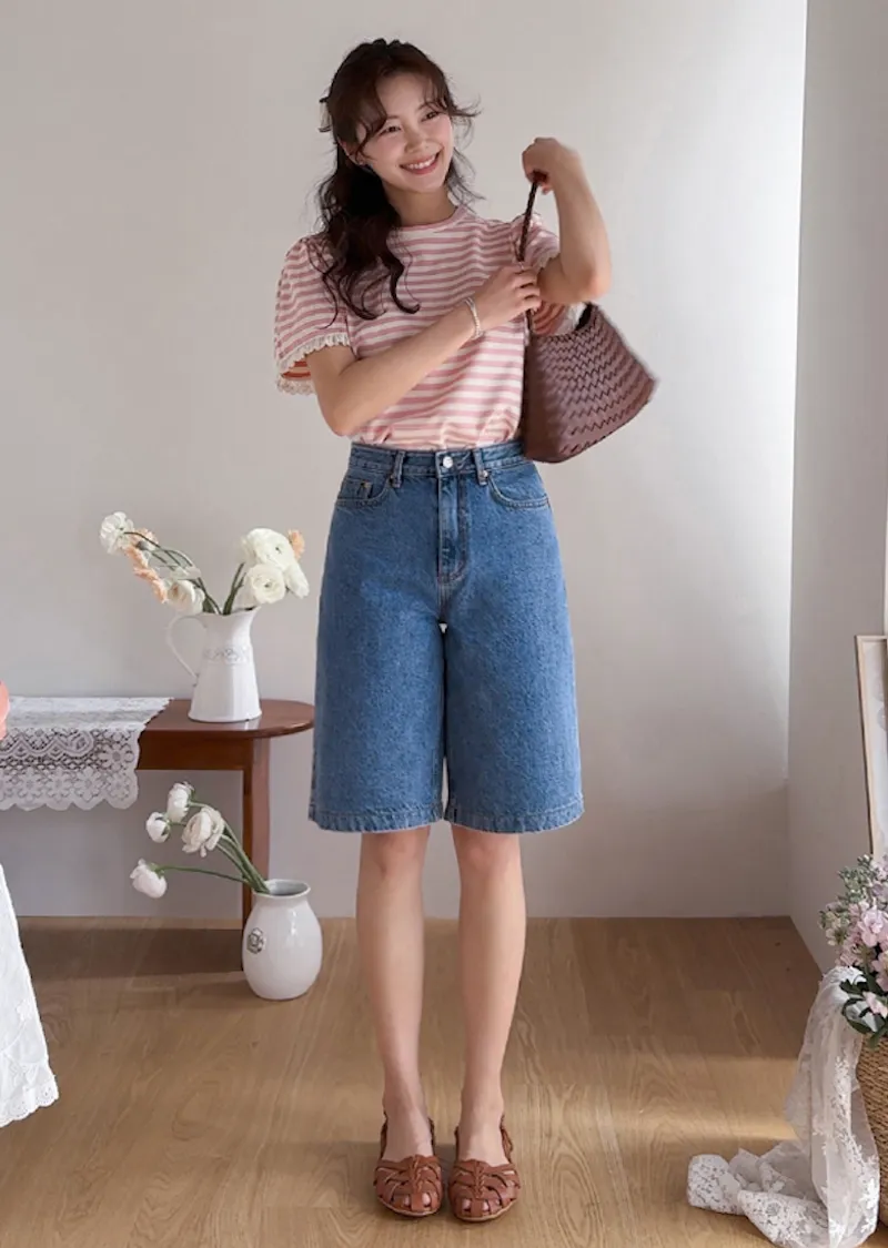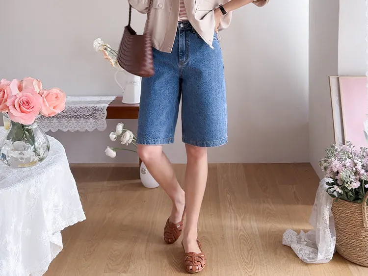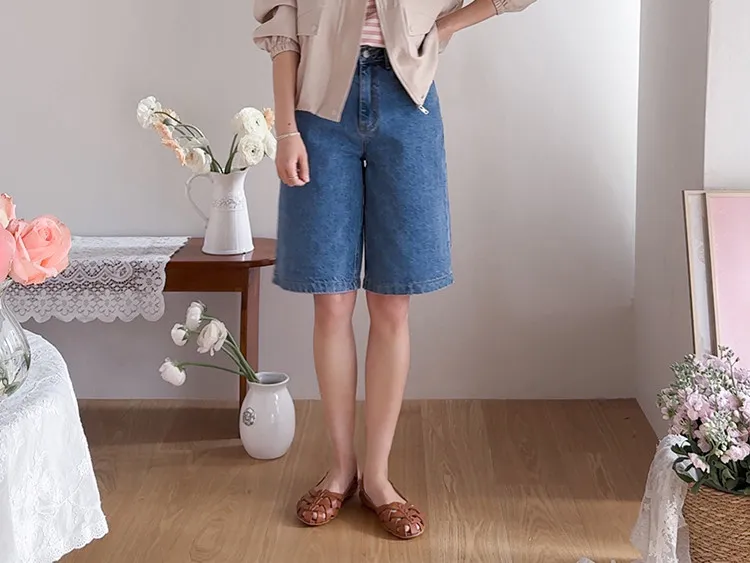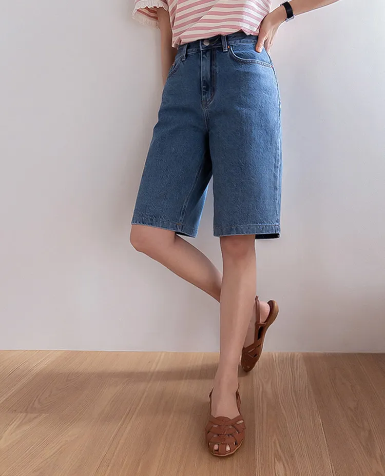 材質:100% 棉【及膝風格短褲,活力四射】【寬鬆直筒版型】【結實耐用的牛仔布料,保持俐落合身】【日常休閒百搭單品】