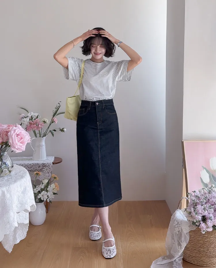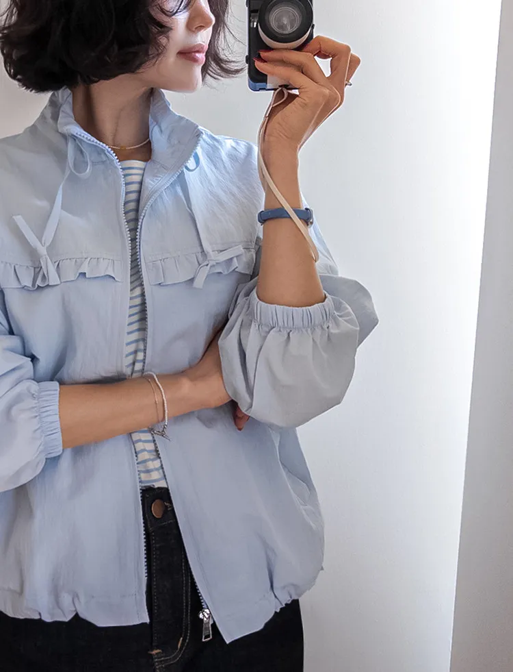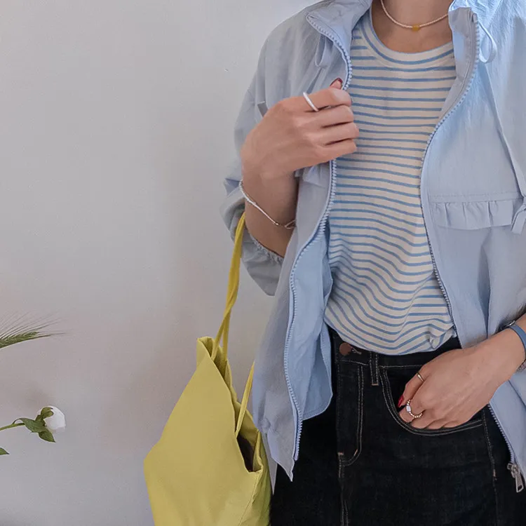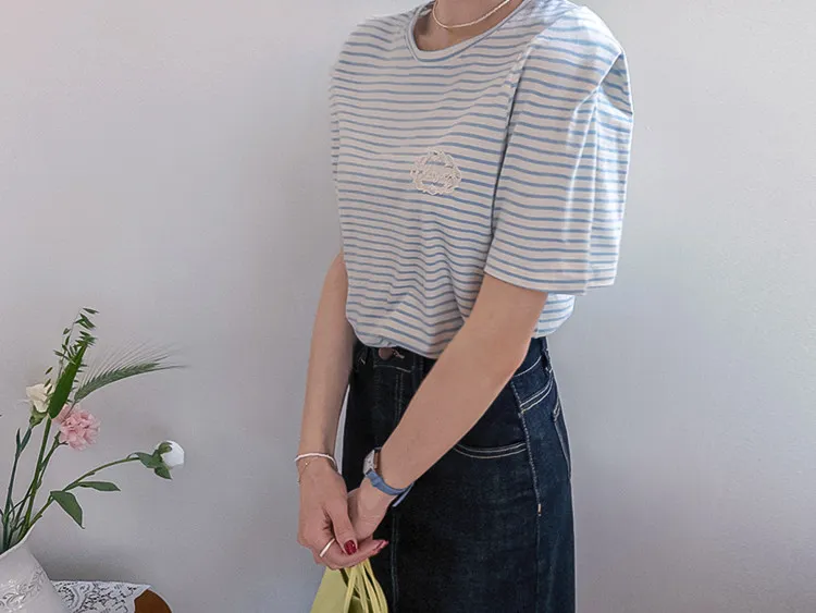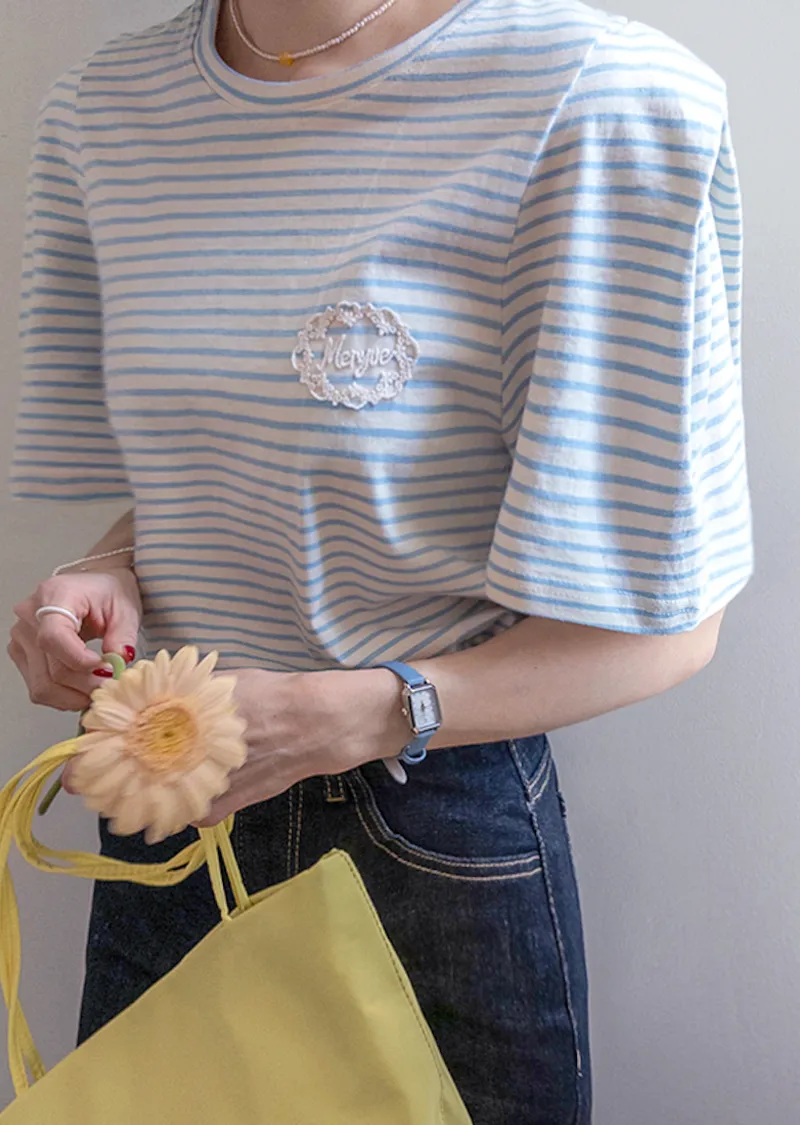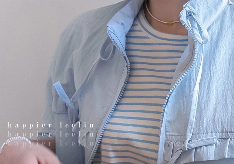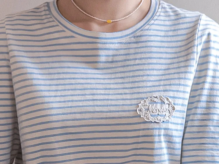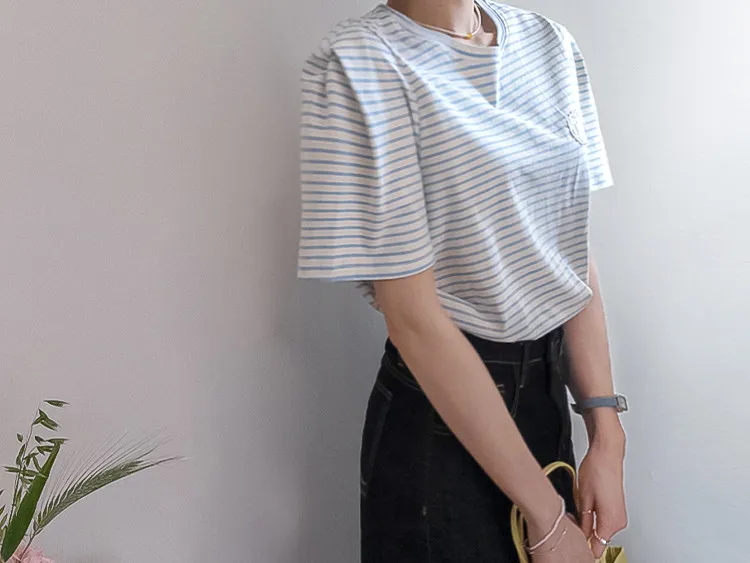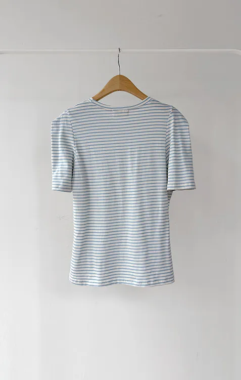 【清新氣息,飾以精緻條紋】【蓬鬆泡泡袖,飾有褶襉細節】【胸前飾有蕾絲貼花】【基礎長度,適合日常穿著】