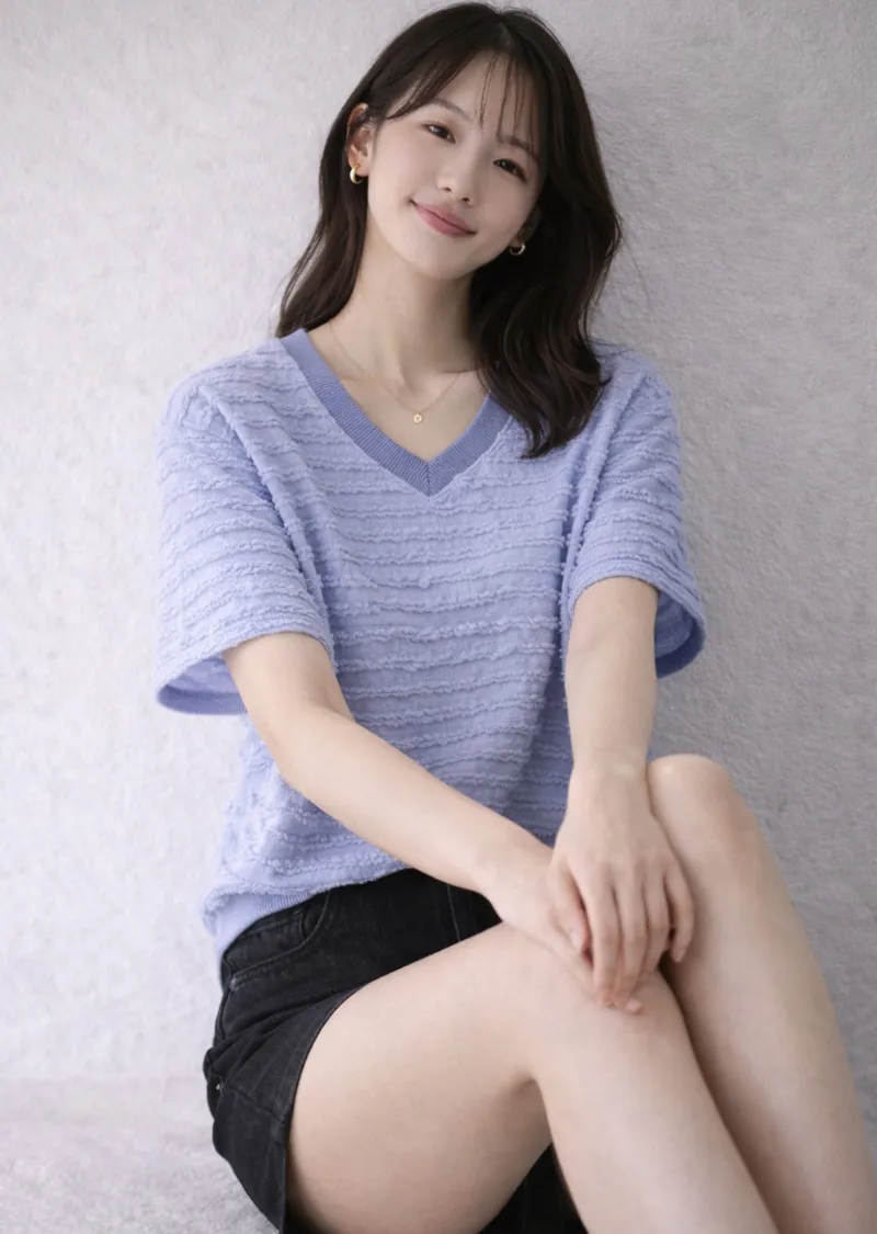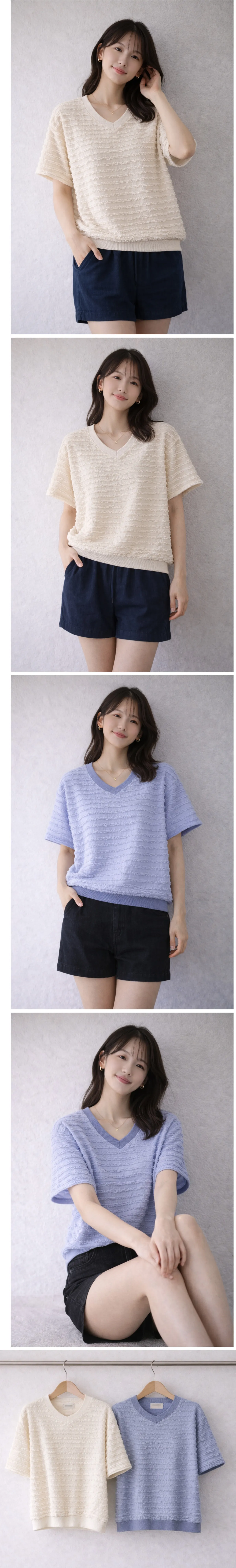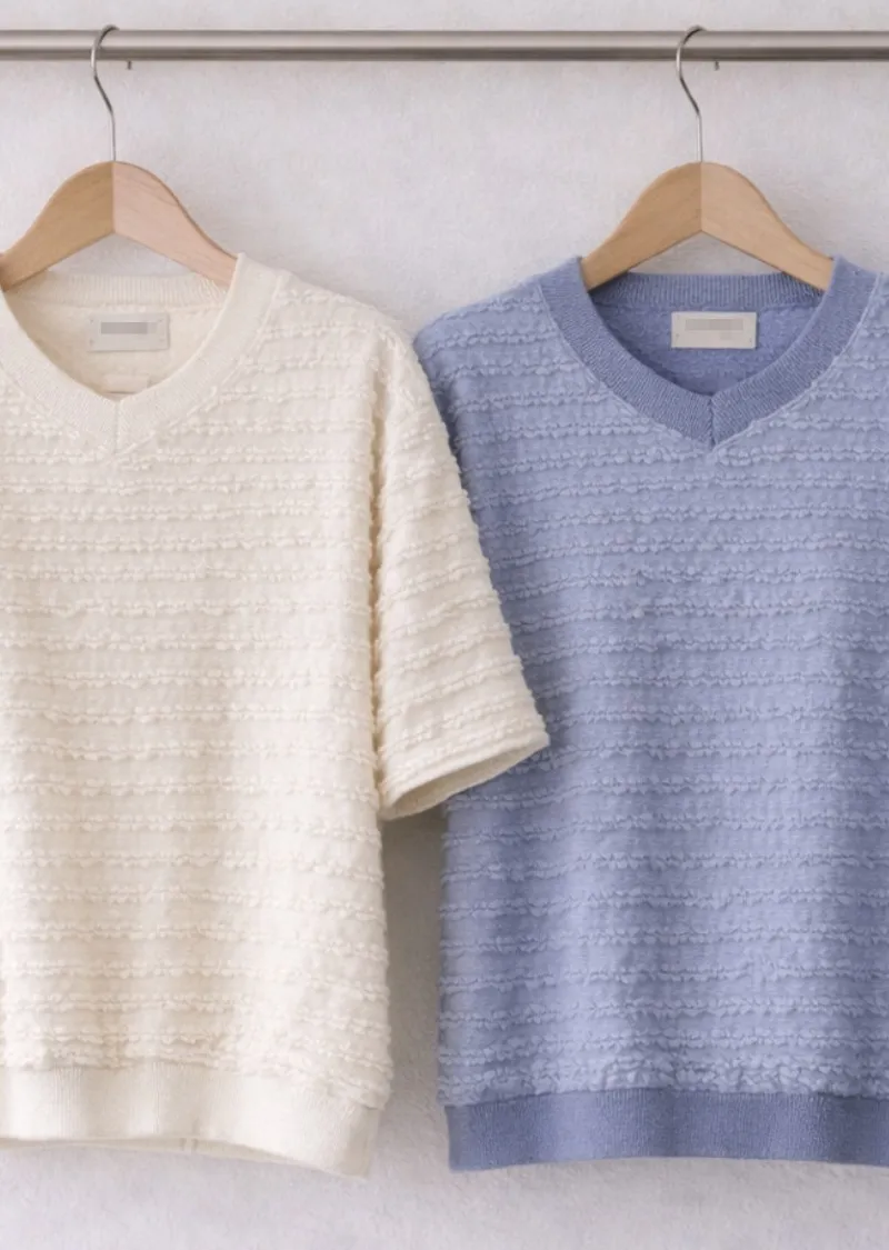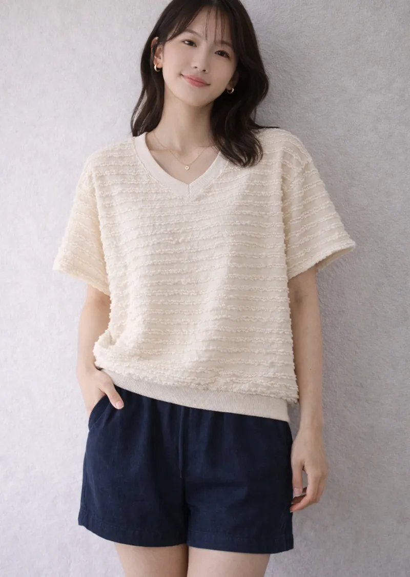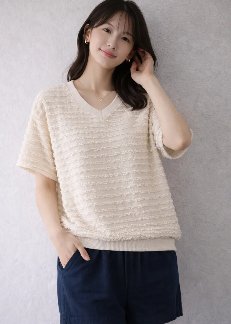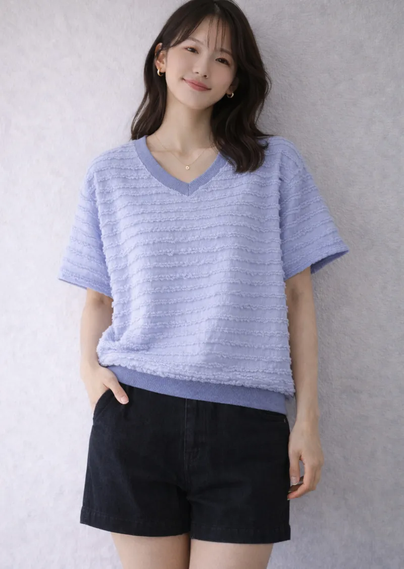 波浪層次設計V領短T