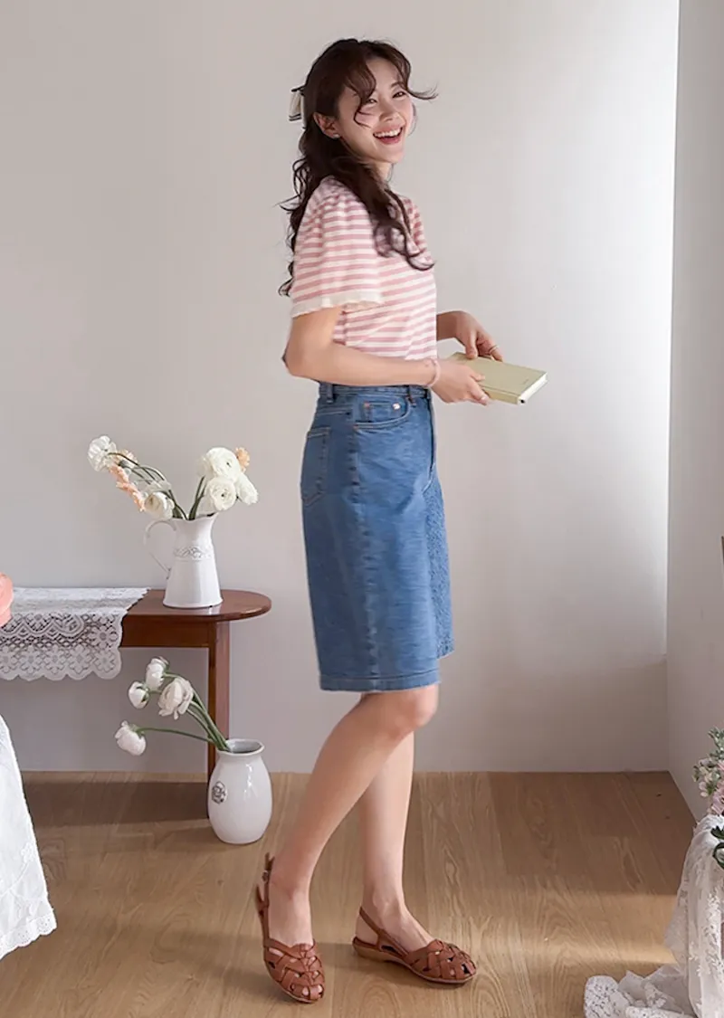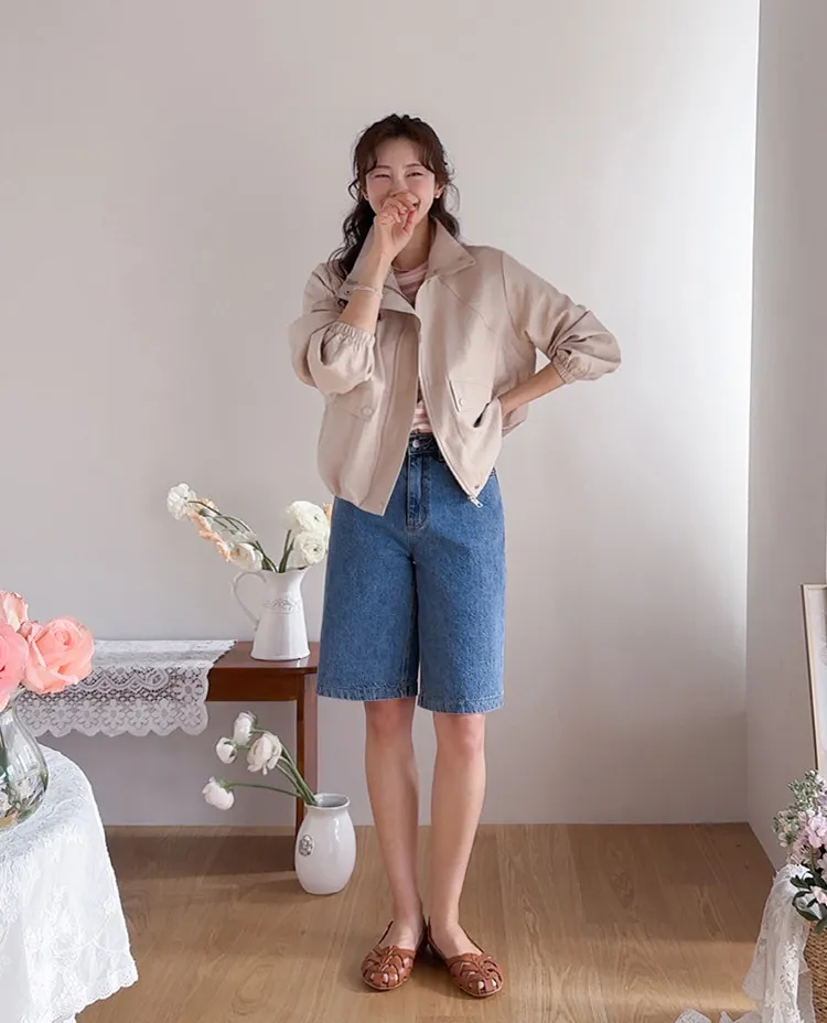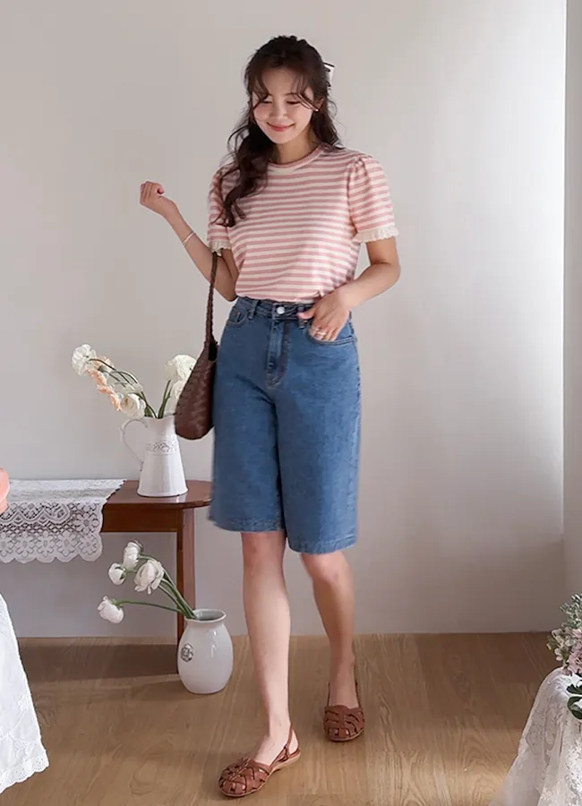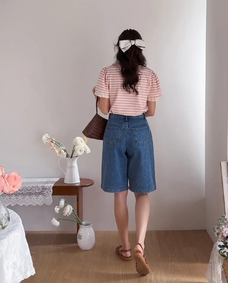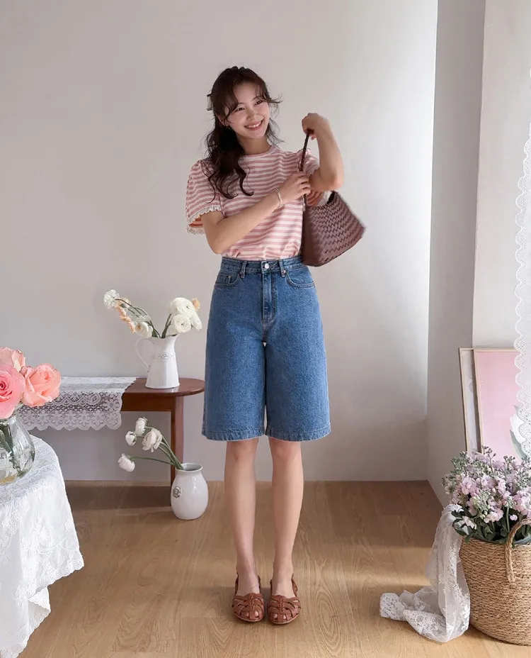 日常穿著休閒風格五分及膝牛仔短褲