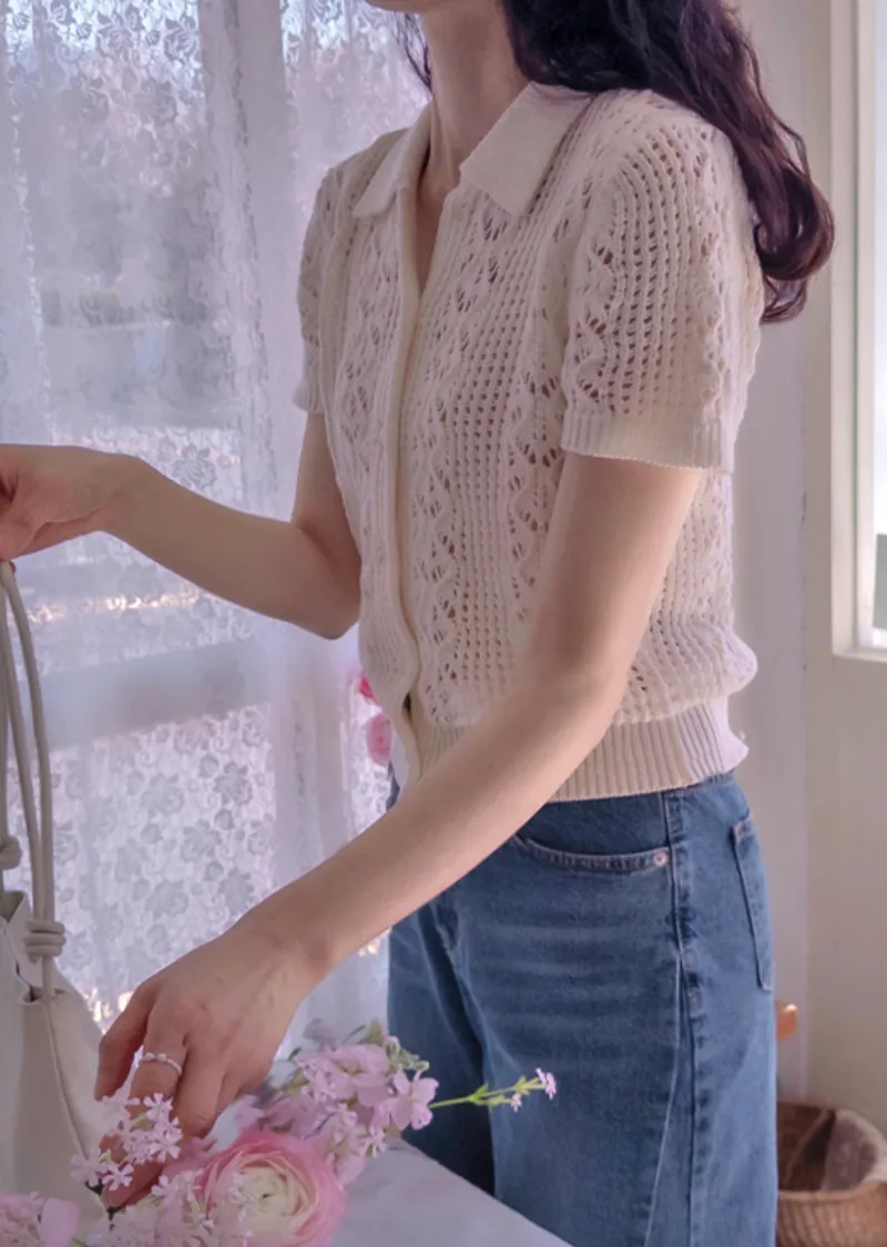 【親膚棉質針織春夏款】【領口盡顯優雅氣質】【夏季專屬設計,精雕細琢的織紋,完美契合夏日風格】【柔和色調,輕鬆打造奢華造型】【簡約百搭,日常穿著舒適】【紐扣閉合】