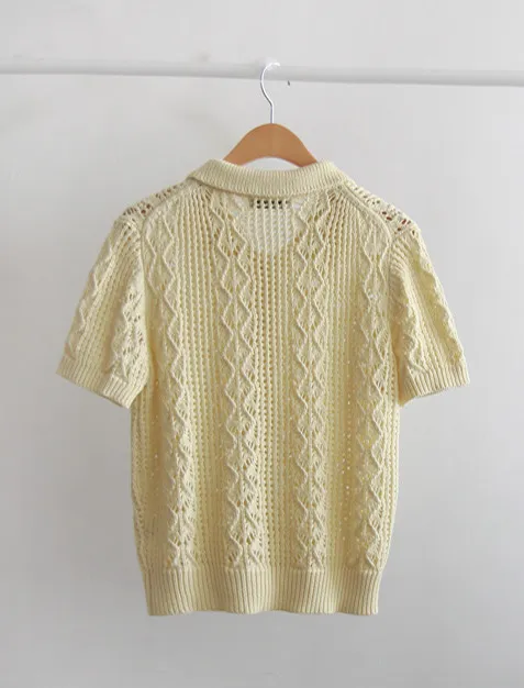 優雅氣質獨特編織線條短袖排扣針織上衣