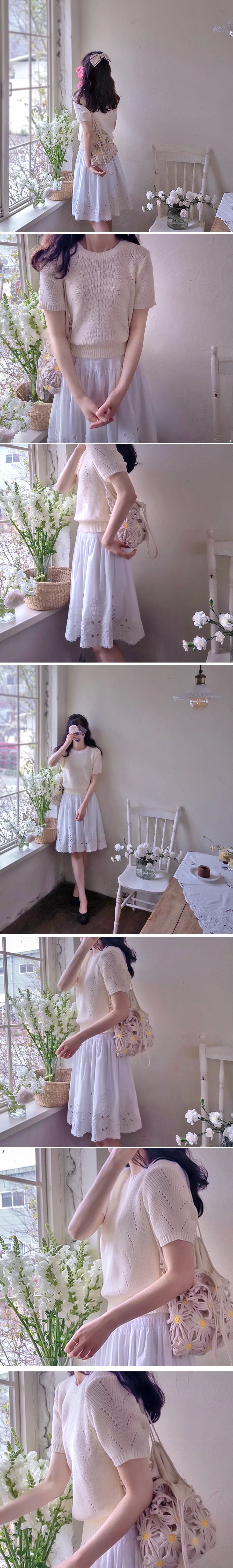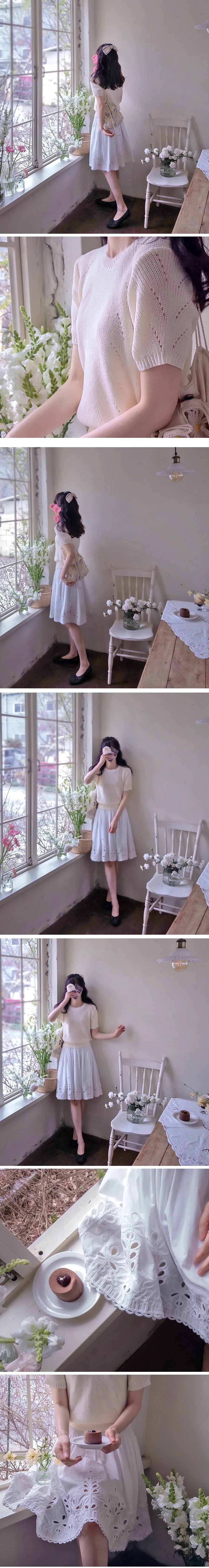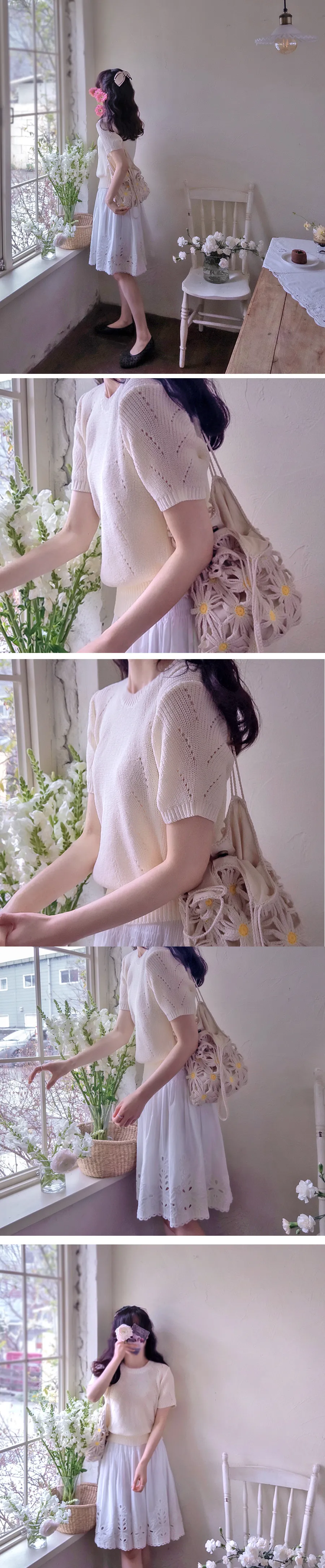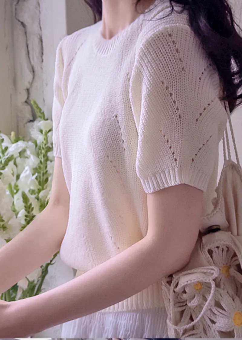 材質:100% 聚酯纖維【亮彩針織衫,觸感涼爽】【袖子和衣身的鏤空設計,春夏的理想之選】【優雅圓領針織衫非常適合日常穿著】【推薦這款帶有精緻鏤空細節的短袖針織衫】