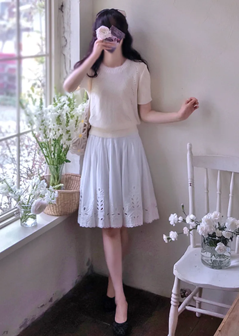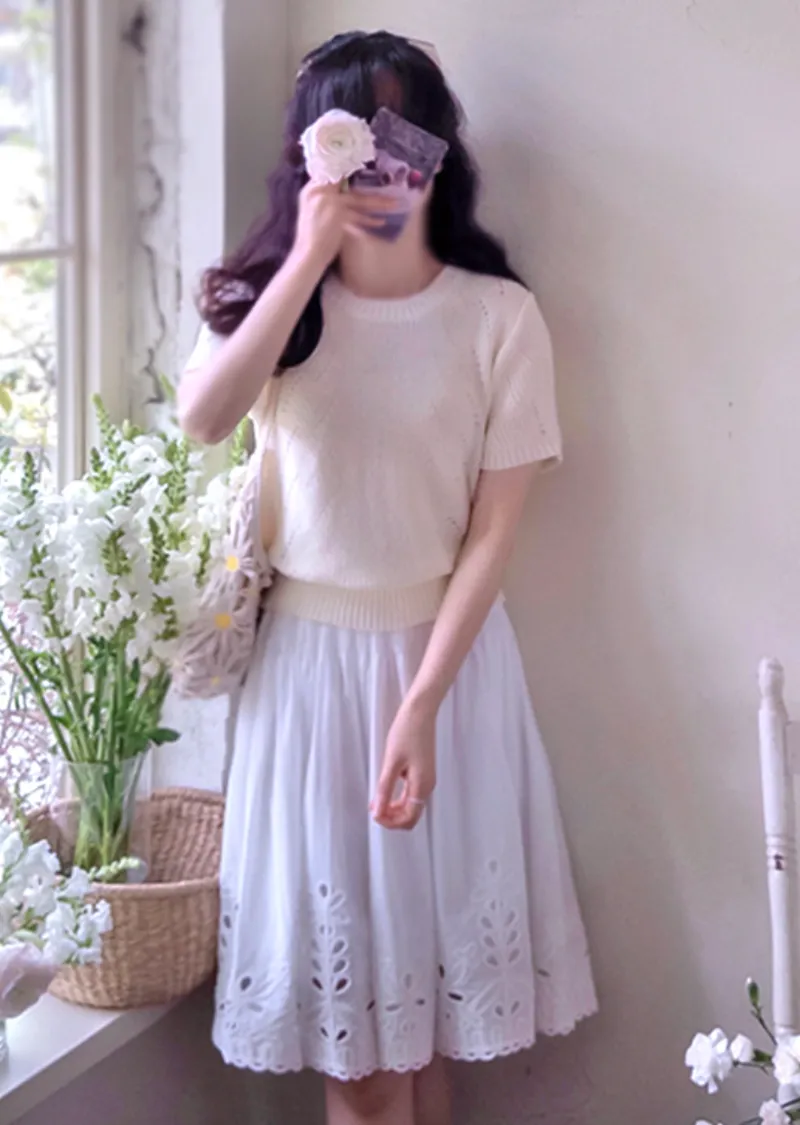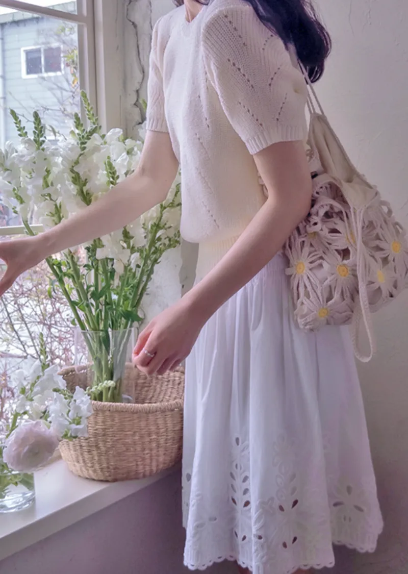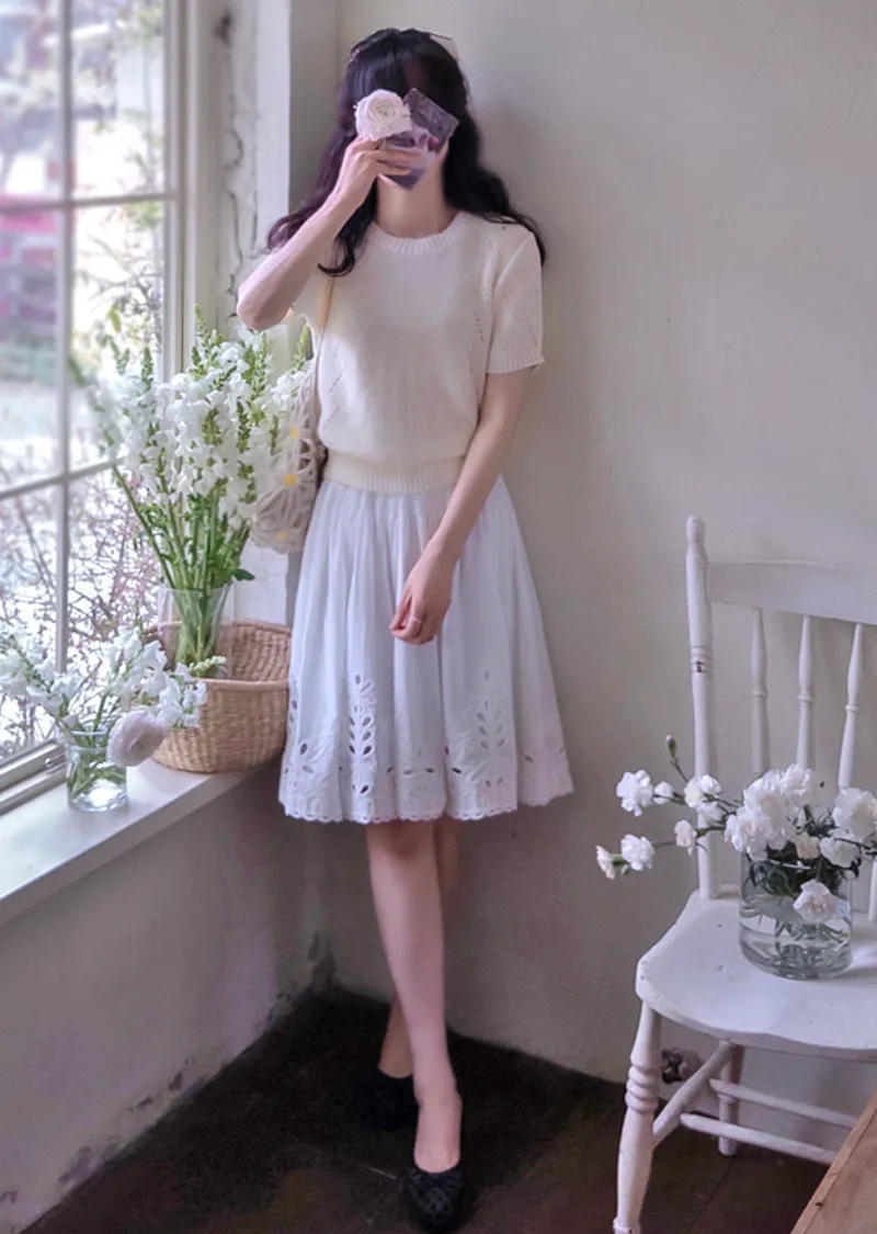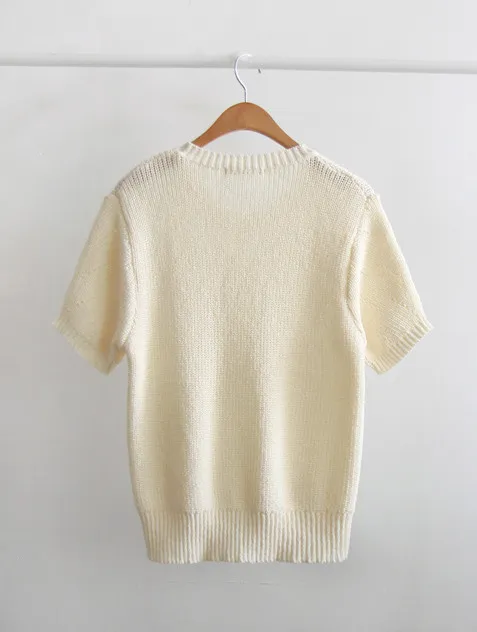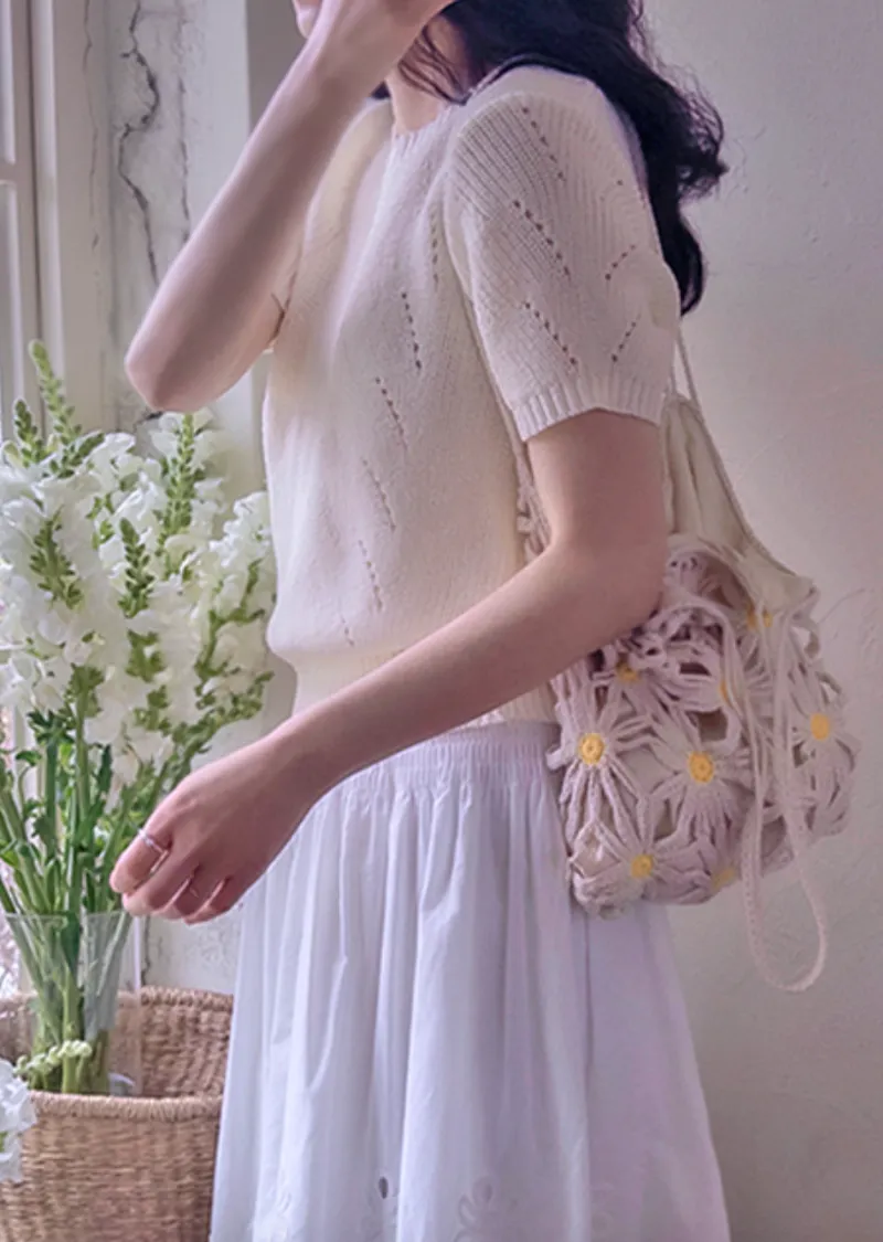 材質:100% 聚酯纖維【亮彩針織衫,觸感涼爽】【袖子和衣身的鏤空設計,春夏的理想之選】【優雅圓領針織衫非常適合日常穿著】【推薦這款帶有精緻鏤空細節的短袖針織衫】
