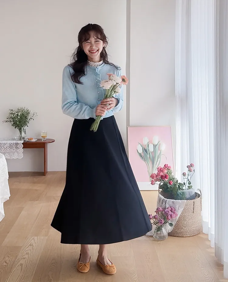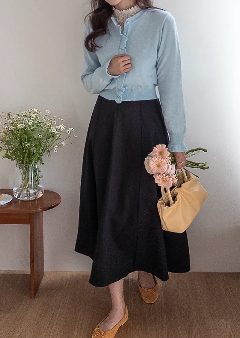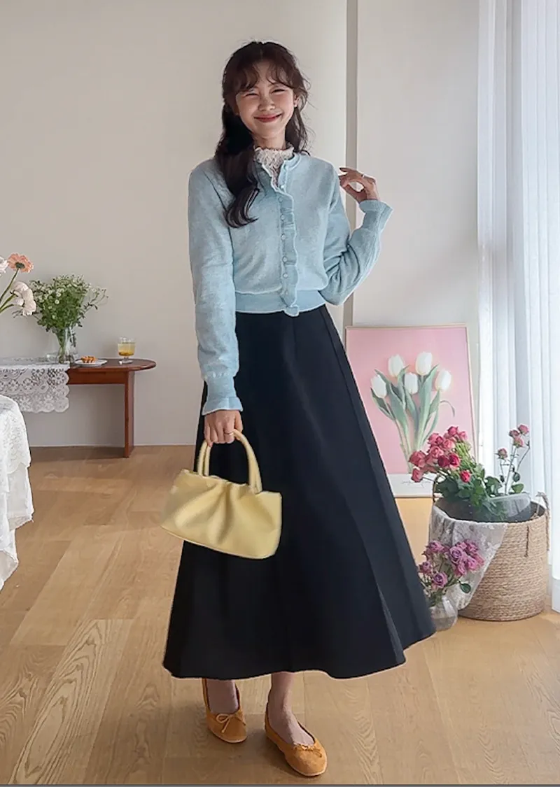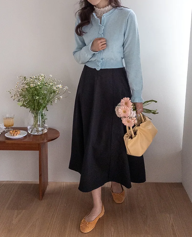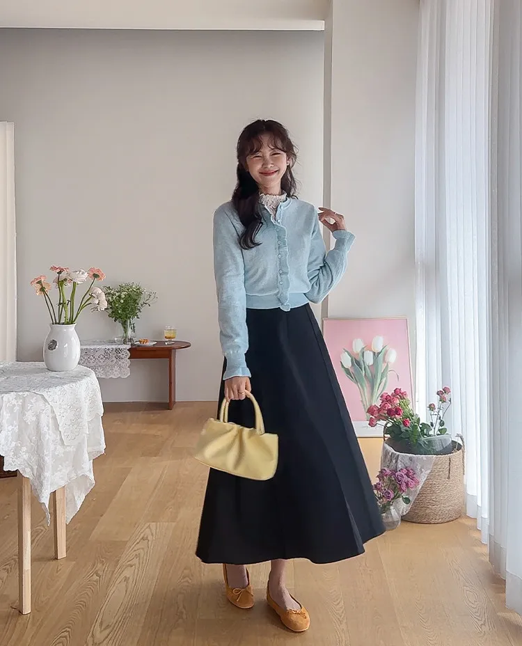 魅力鈕扣荷葉襯邊優雅袖末摺邊開衫