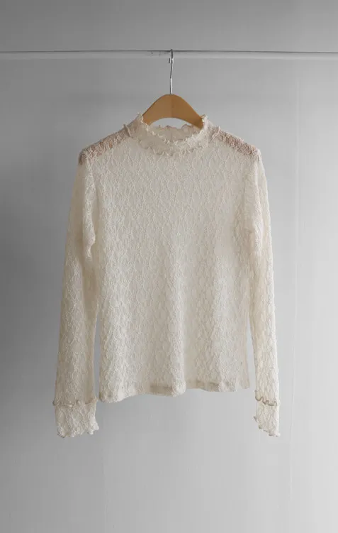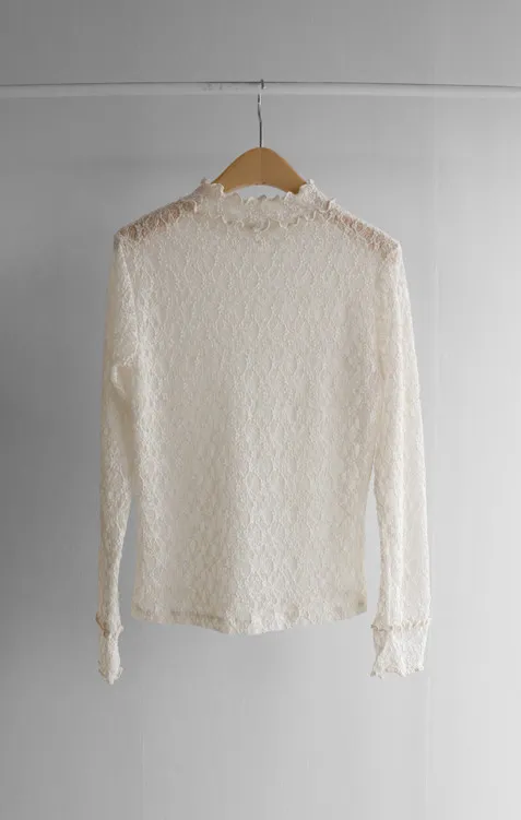 精緻蕾絲紋理領口袖末層次摺邊可疊穿上衣