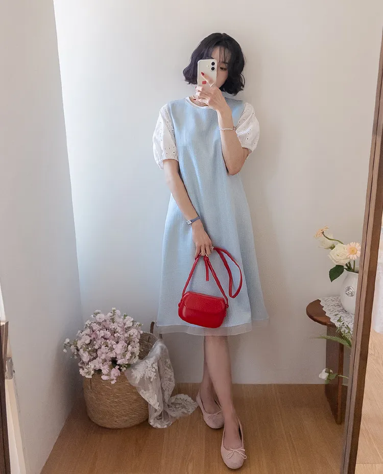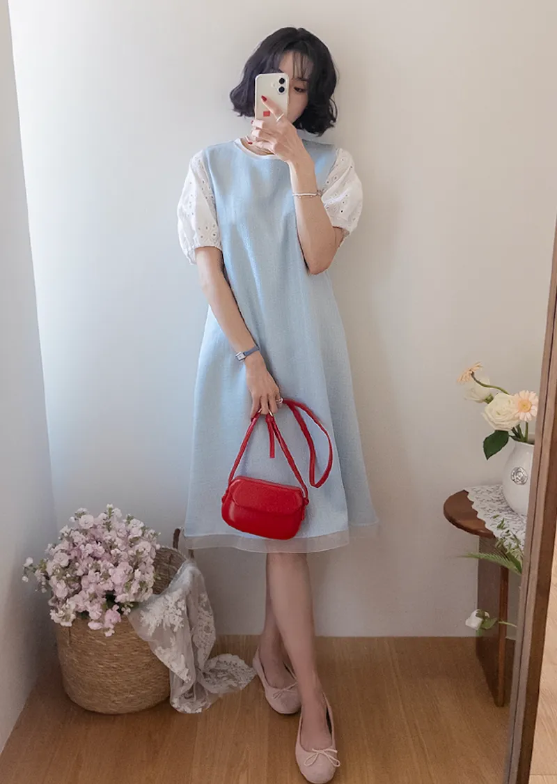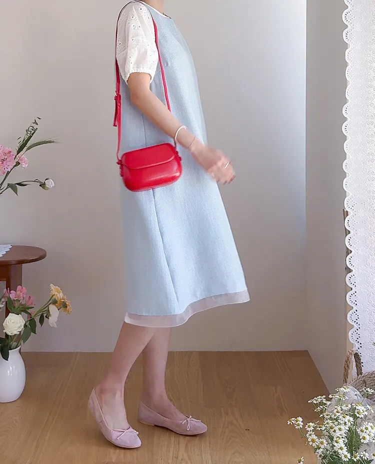 【寬鬆A字輪廓】【合身舒適】【下擺透視疊層設計】【日常穿著或派對造型皆宜】