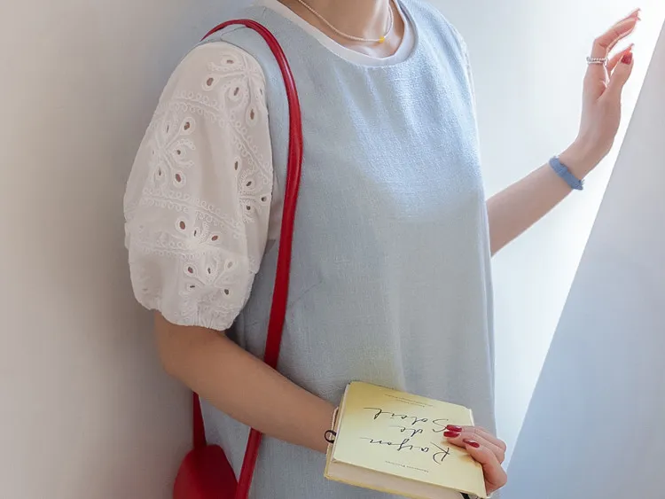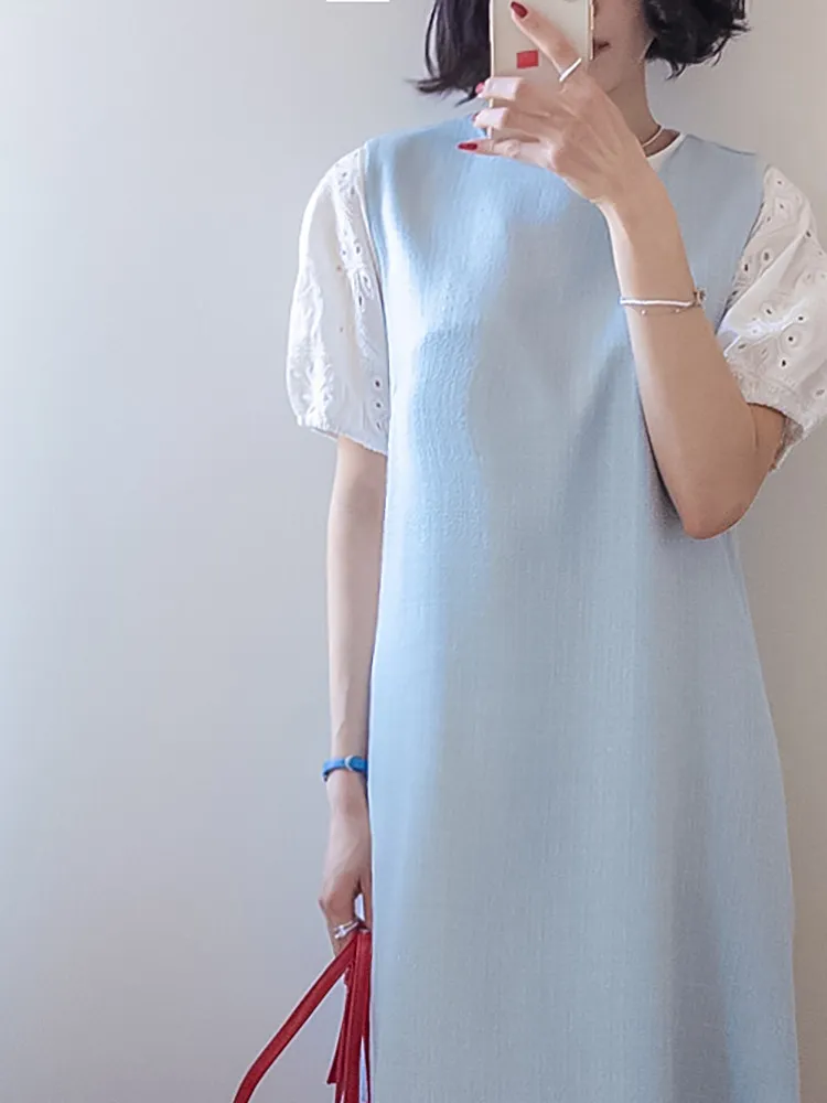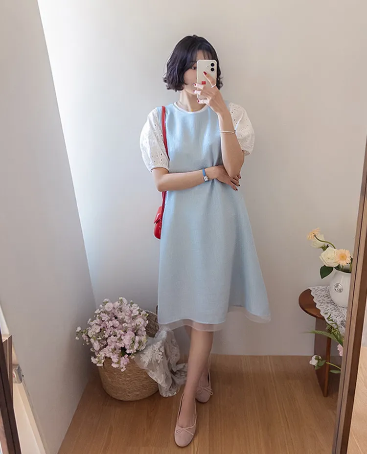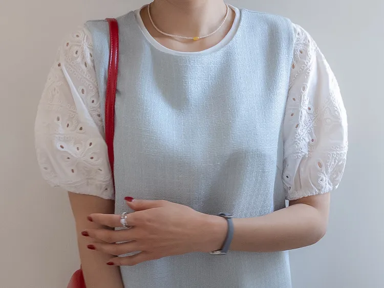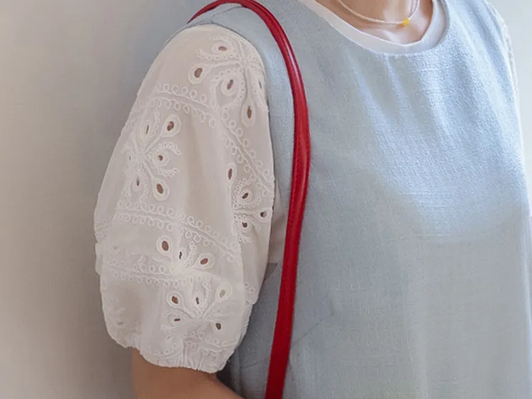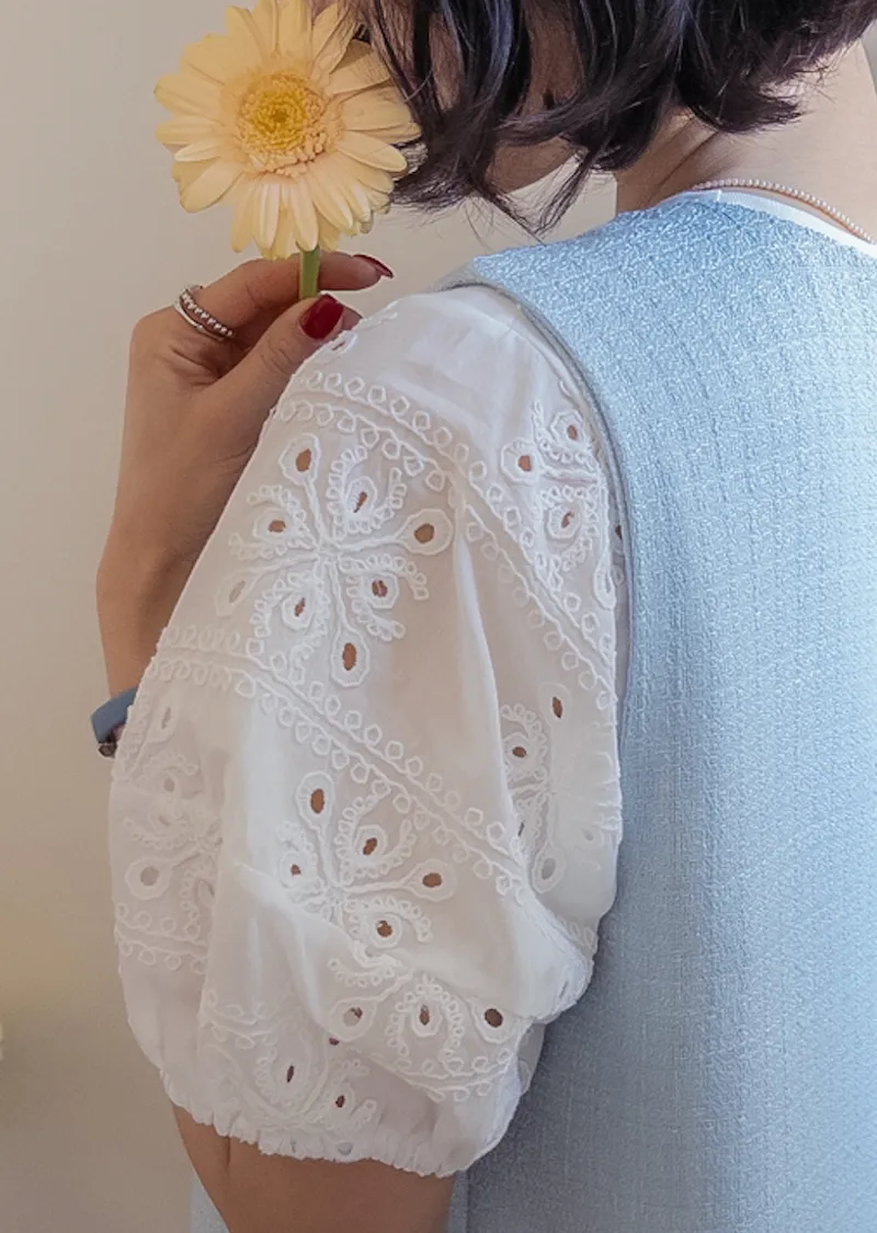 柔美氛圍精緻鏤空蕾絲泡泡袖上衣
