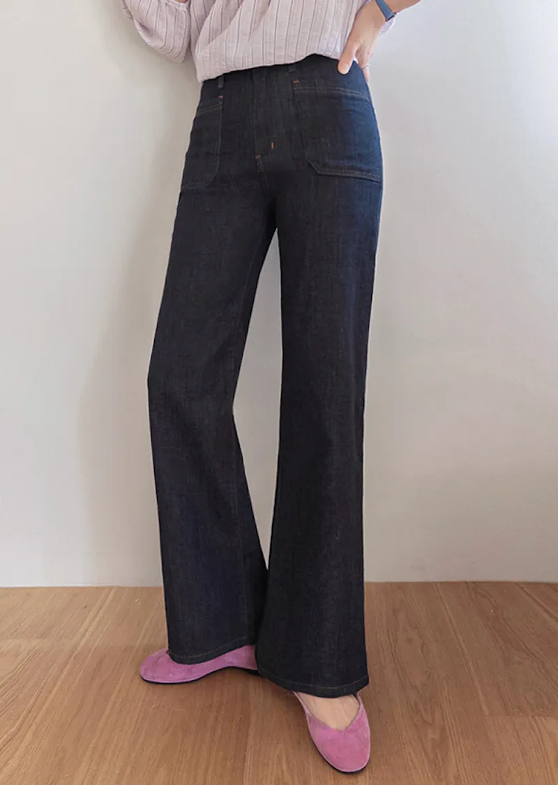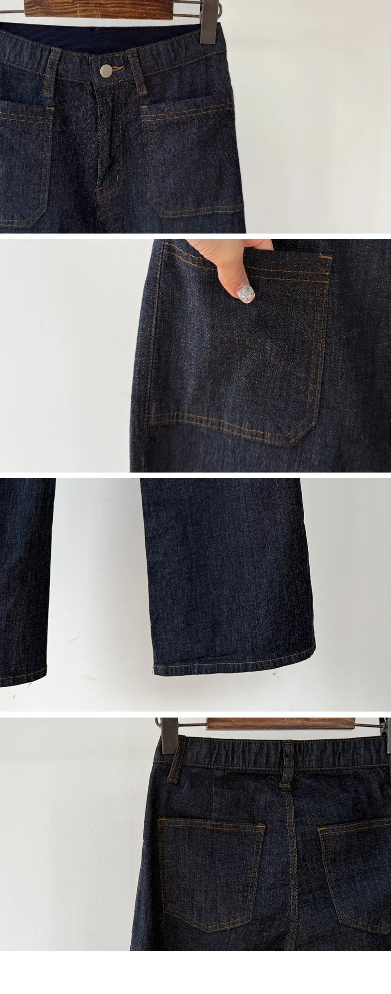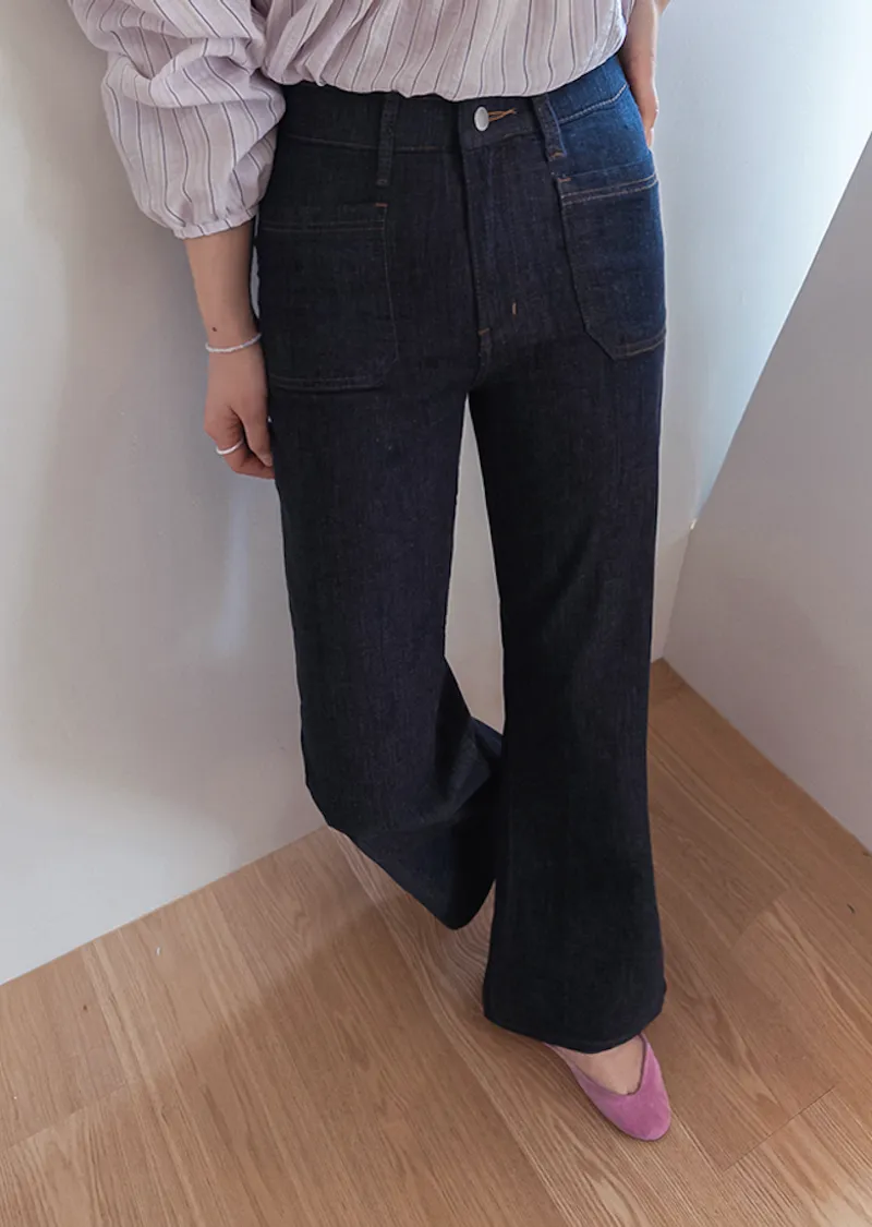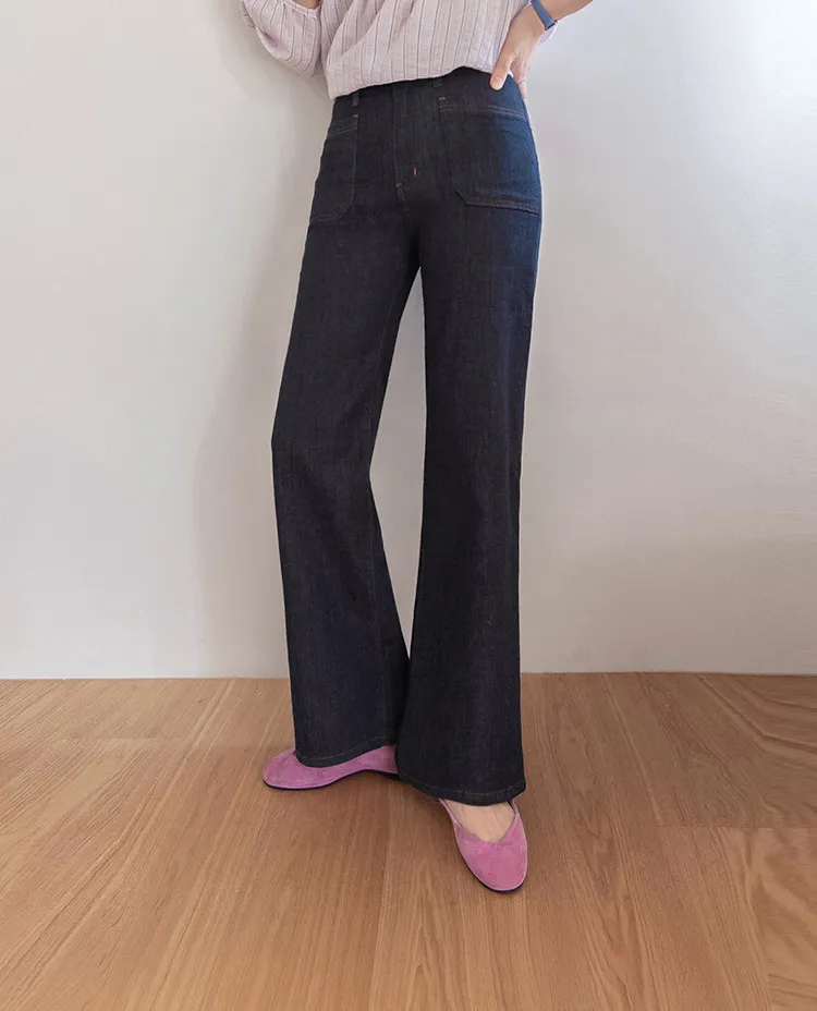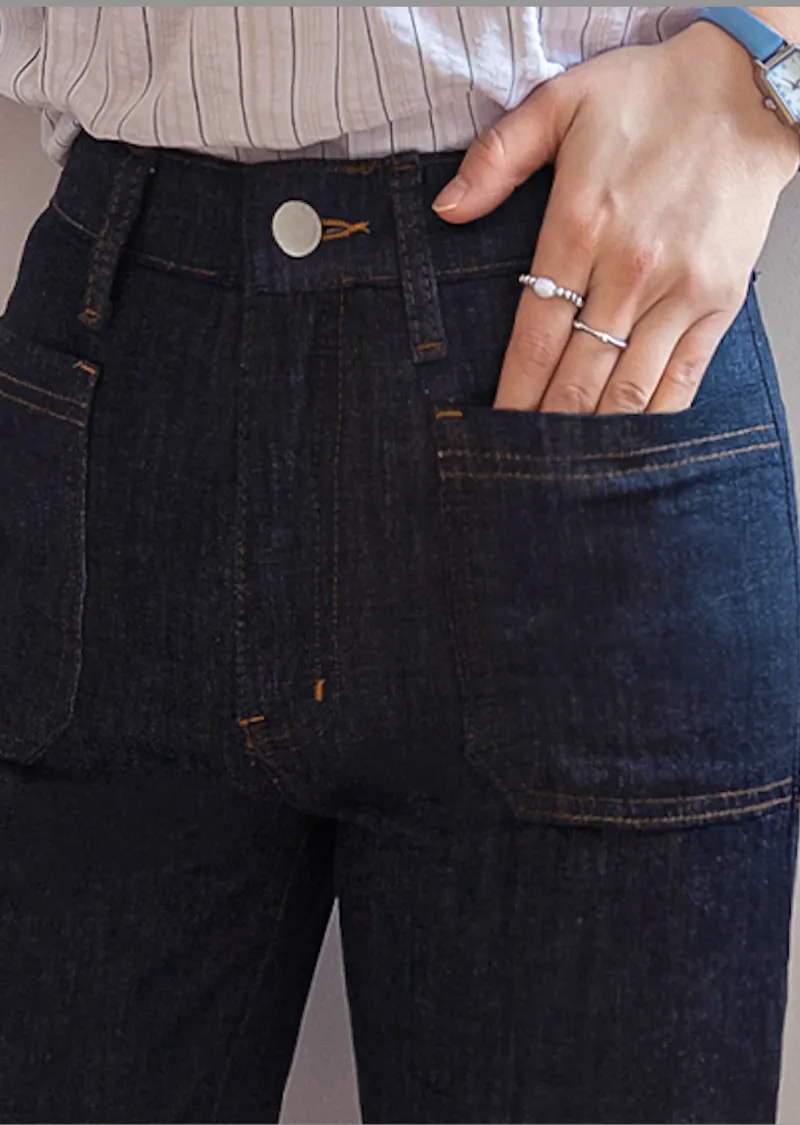 材質:98% 棉,2% 氨綸【不褪色牛仔布料,無需擔心掉色】【獨特前口袋縫線細節】【簡潔流暢的半靴型剪裁】【修身廓形,拉長腿部線條】