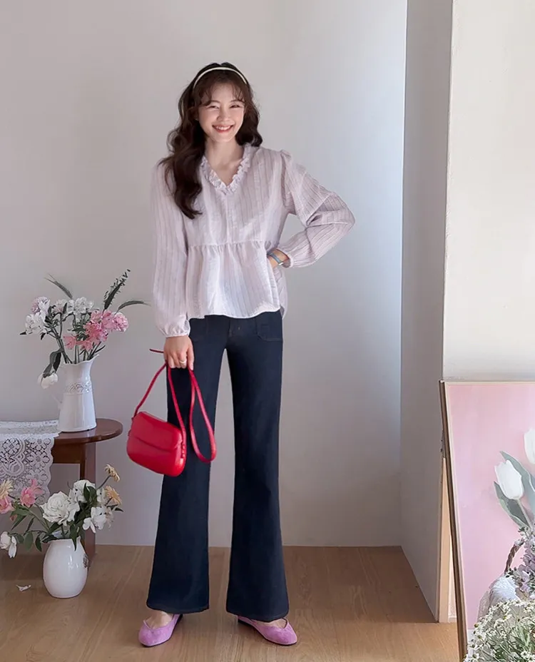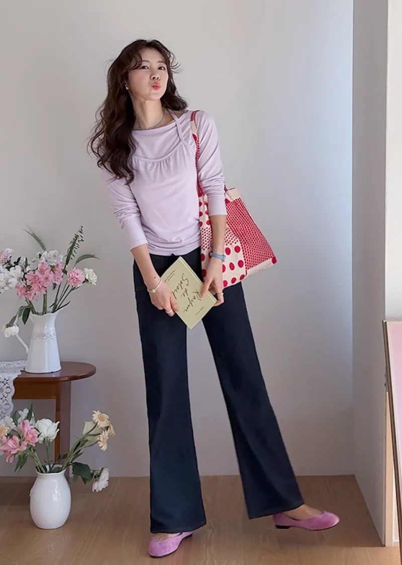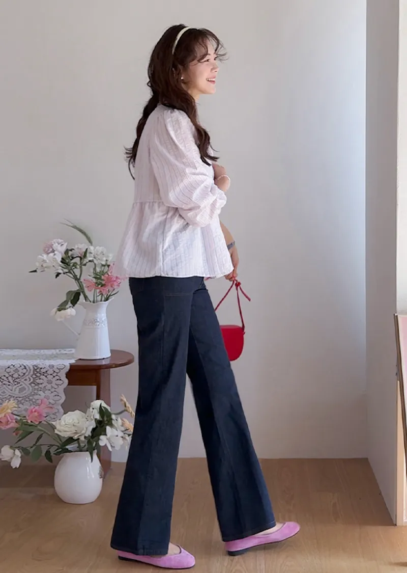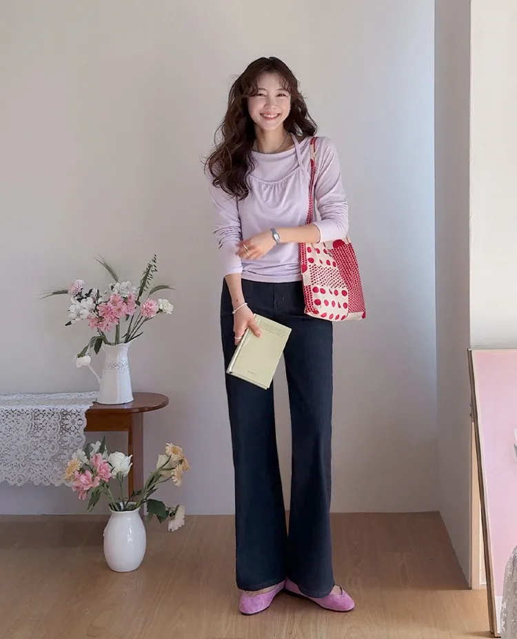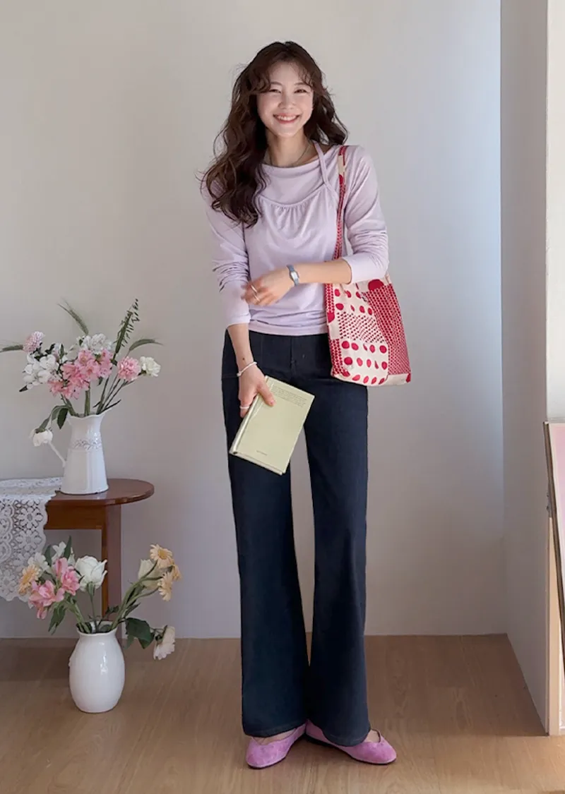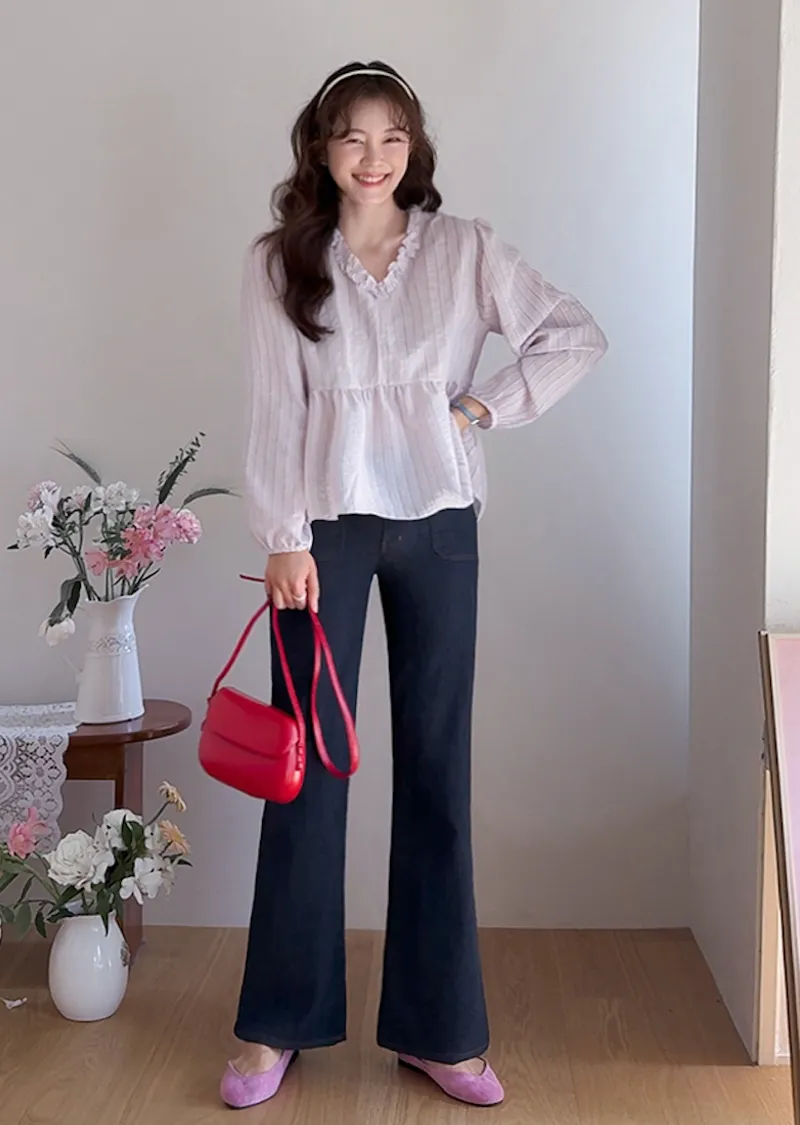 材質:98% 棉,2% 氨綸【不褪色牛仔布料,無需擔心掉色】【獨特前口袋縫線細節】【簡潔流暢的半靴型剪裁】【修身廓形,拉長腿部線條】