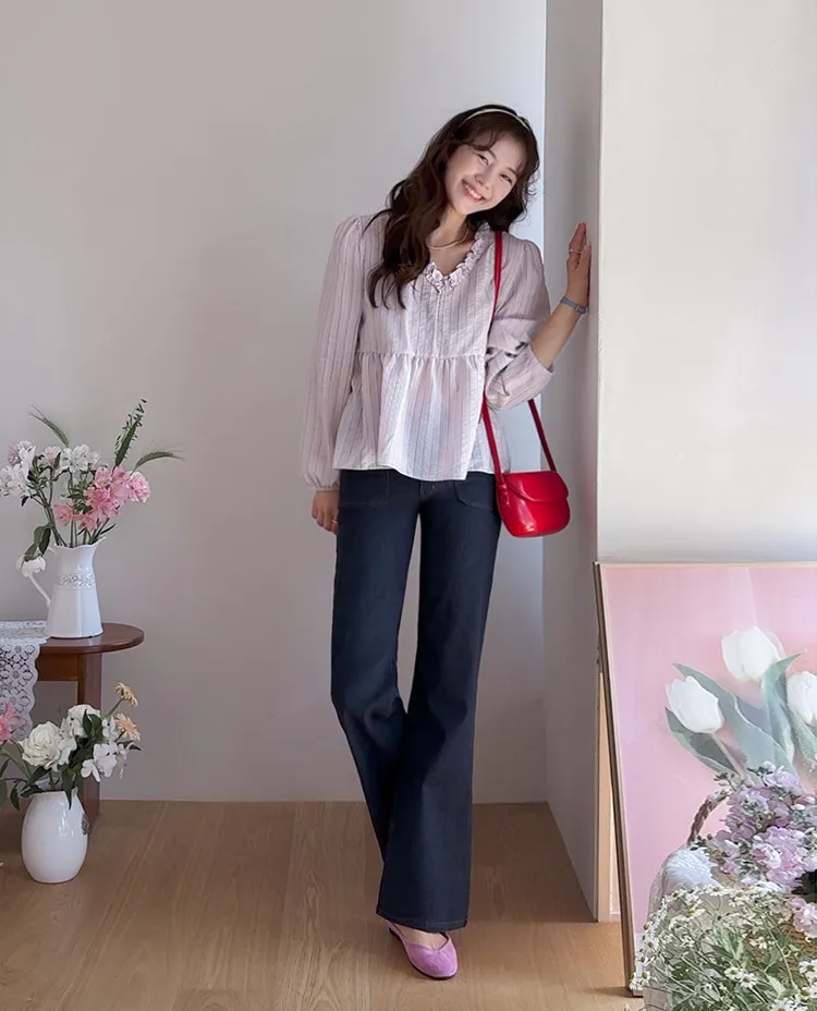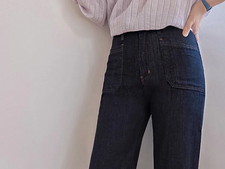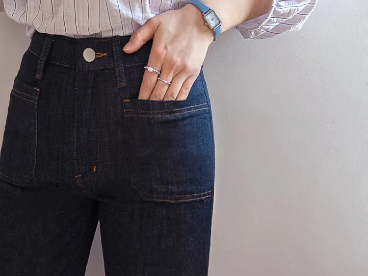 獨特前口袋縫線設計修身線條半靴型剪裁牛仔褲