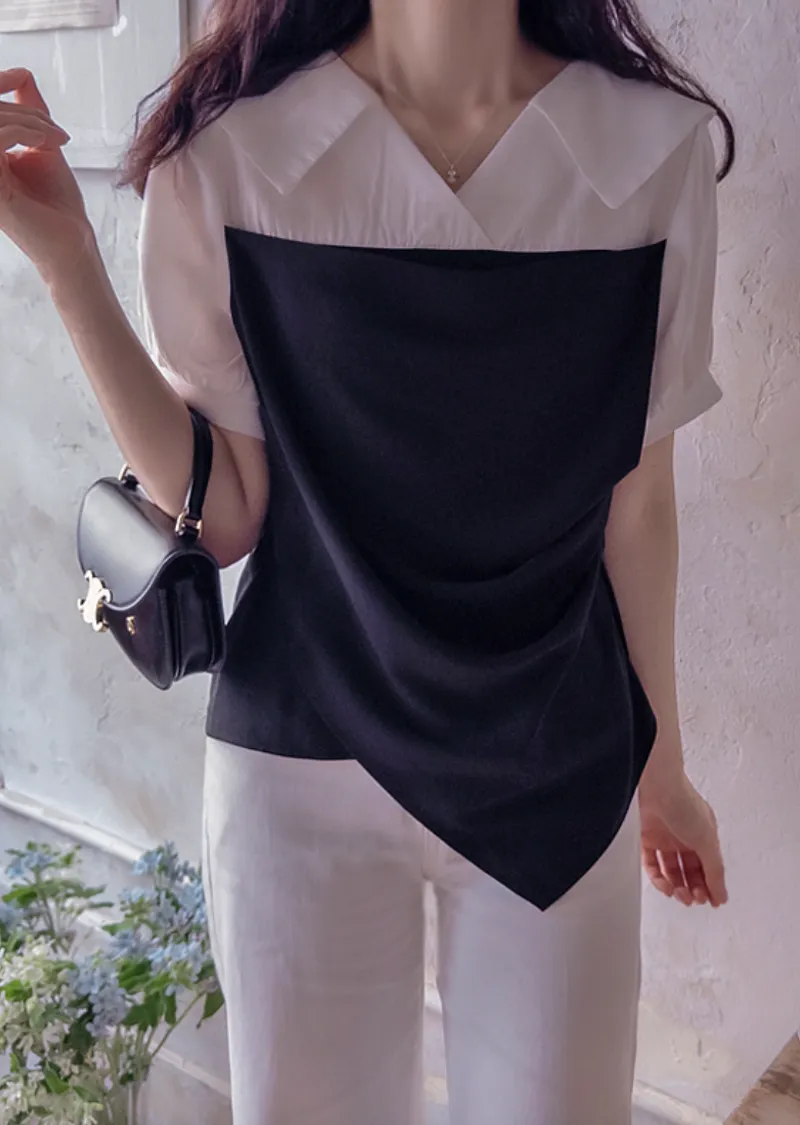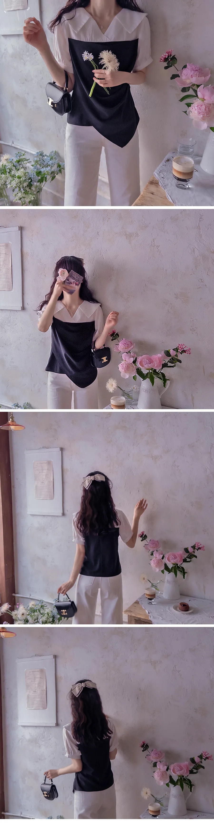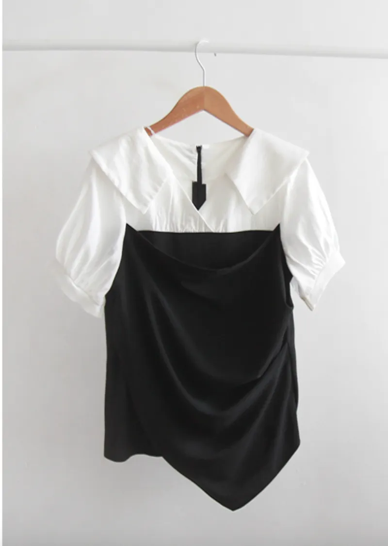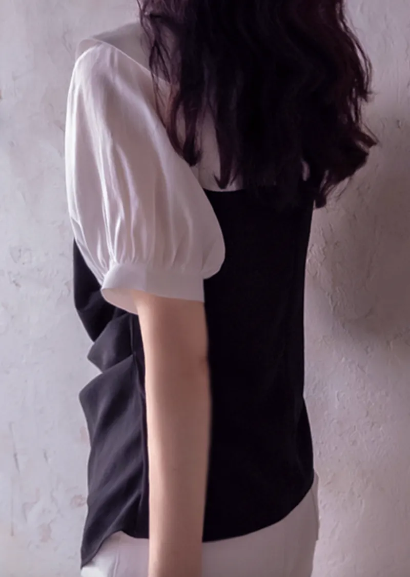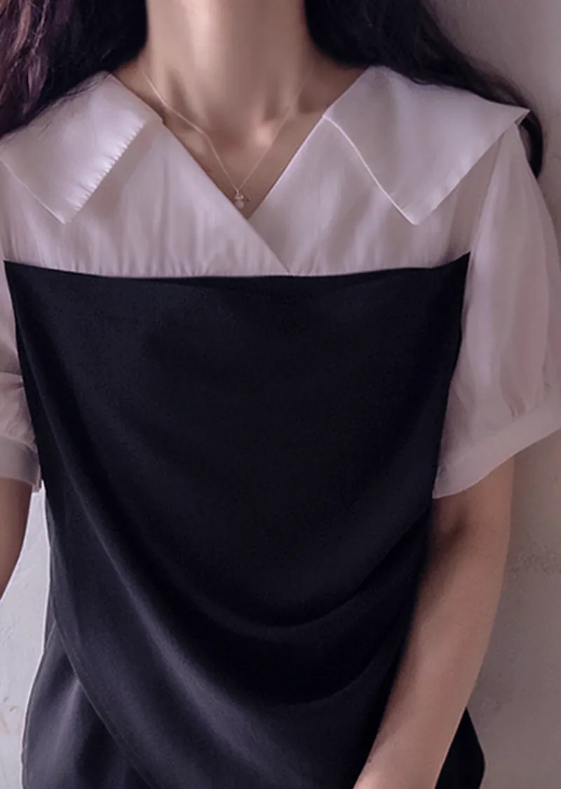 材質:85% 人造絲,15% 人造絲 [內襯:100% 聚酯纖維]【後拉鍊】【配色下擺上衣】【採用配色層疊設計,搭配波浪紋理,營造出可愛氛圍的上衣】【精緻的領子線條,打造優雅氣質】【推薦這款配色設計的時尚上衣】