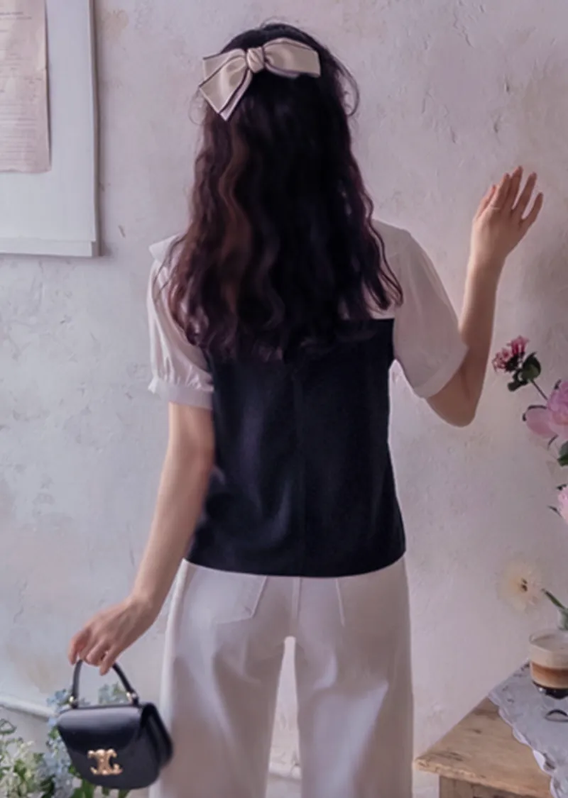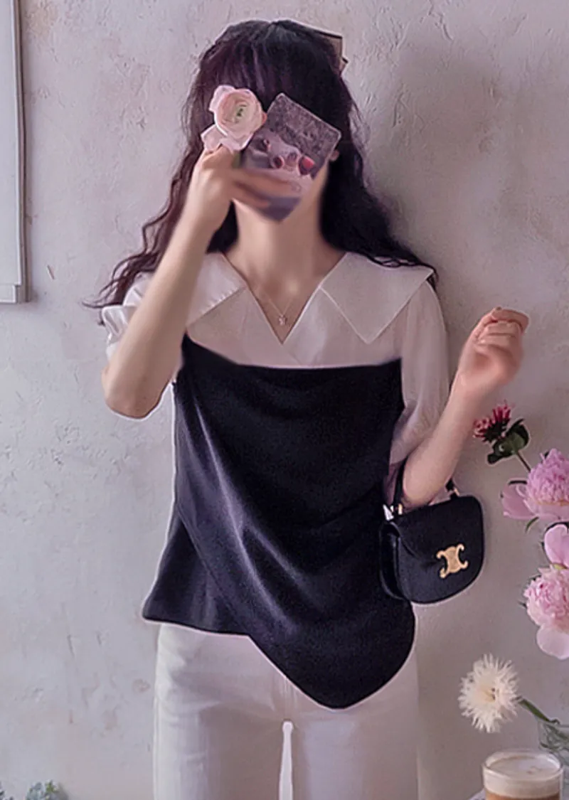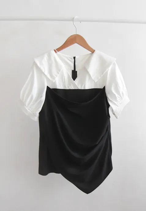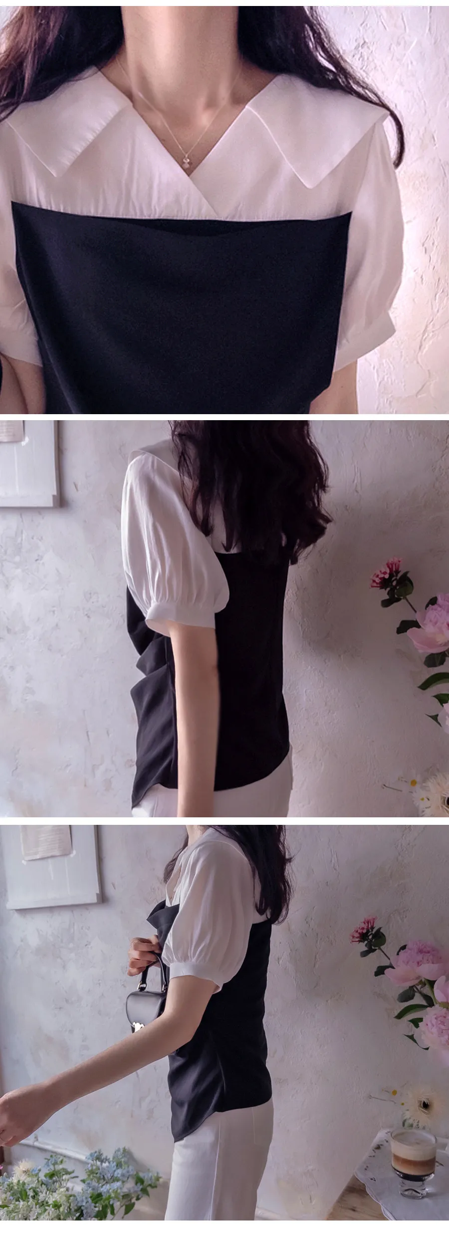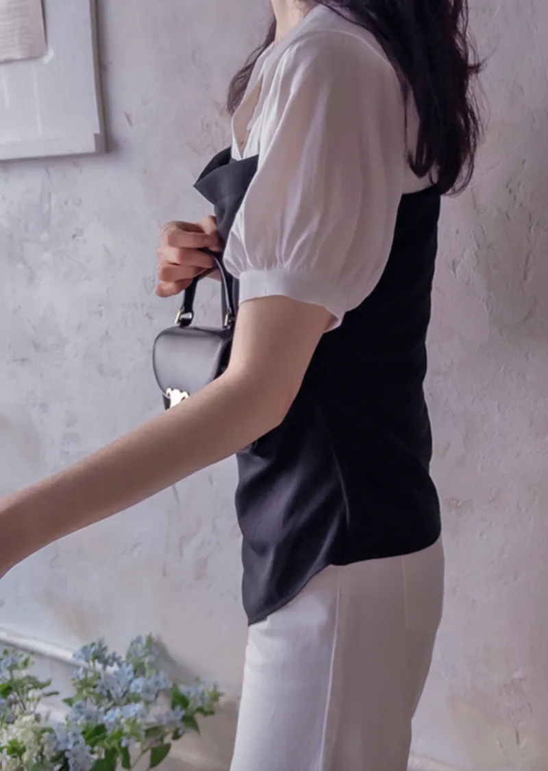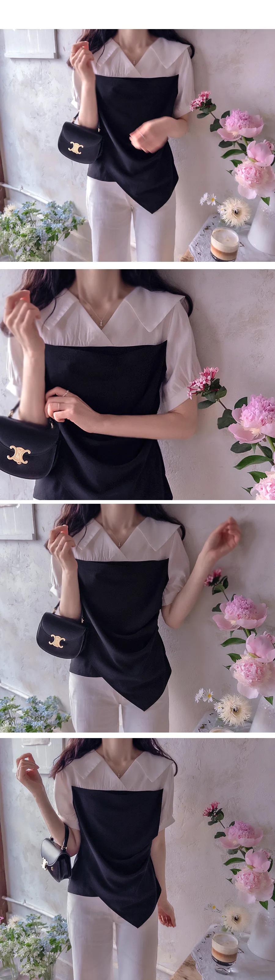 材質:85% 人造絲,15% 人造絲 [內襯:100% 聚酯纖維]【後拉鍊】【配色下擺上衣】【採用配色層疊設計,搭配波浪紋理,營造出可愛氛圍的上衣】【精緻的領子線條,打造優雅氣質】【推薦這款配色設計的時尚上衣】