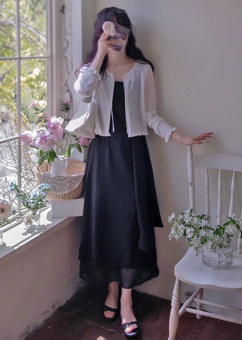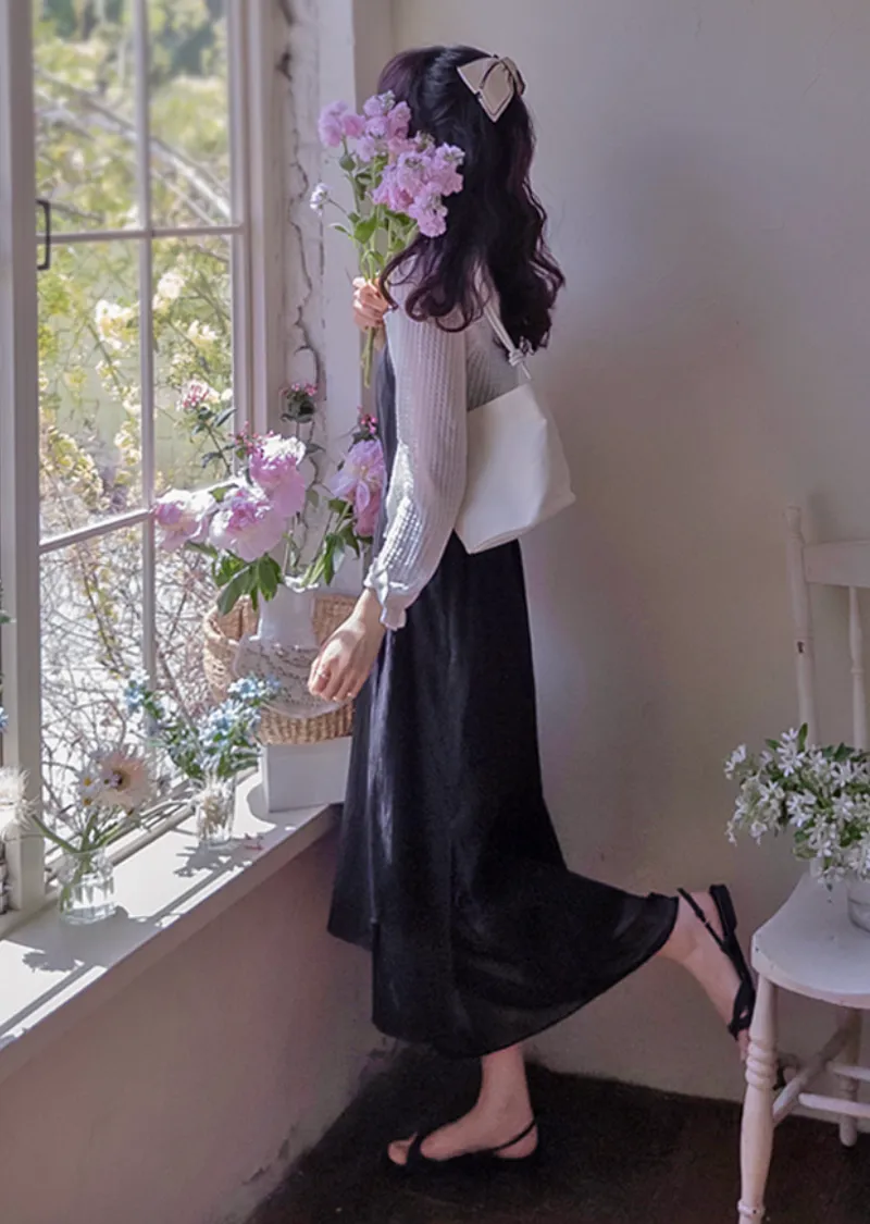 【圍巾套裝】【側拉鍊設計】【夏季面料,營造微妙優雅氛圍】【滌綸裡襯】【裙子開衩設計和配色方案,打造精緻亮點】【圍巾套裝佩戴,營造奢華氣質】【非常適合夏季穿著】
