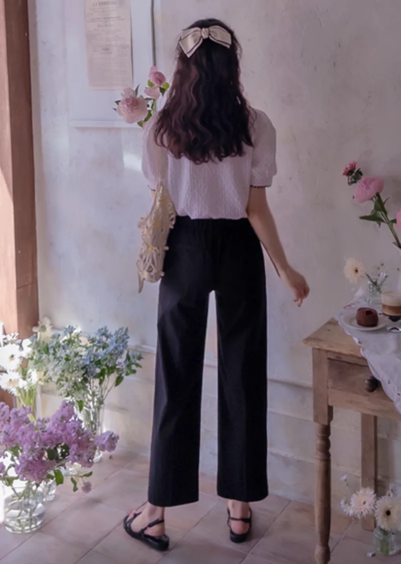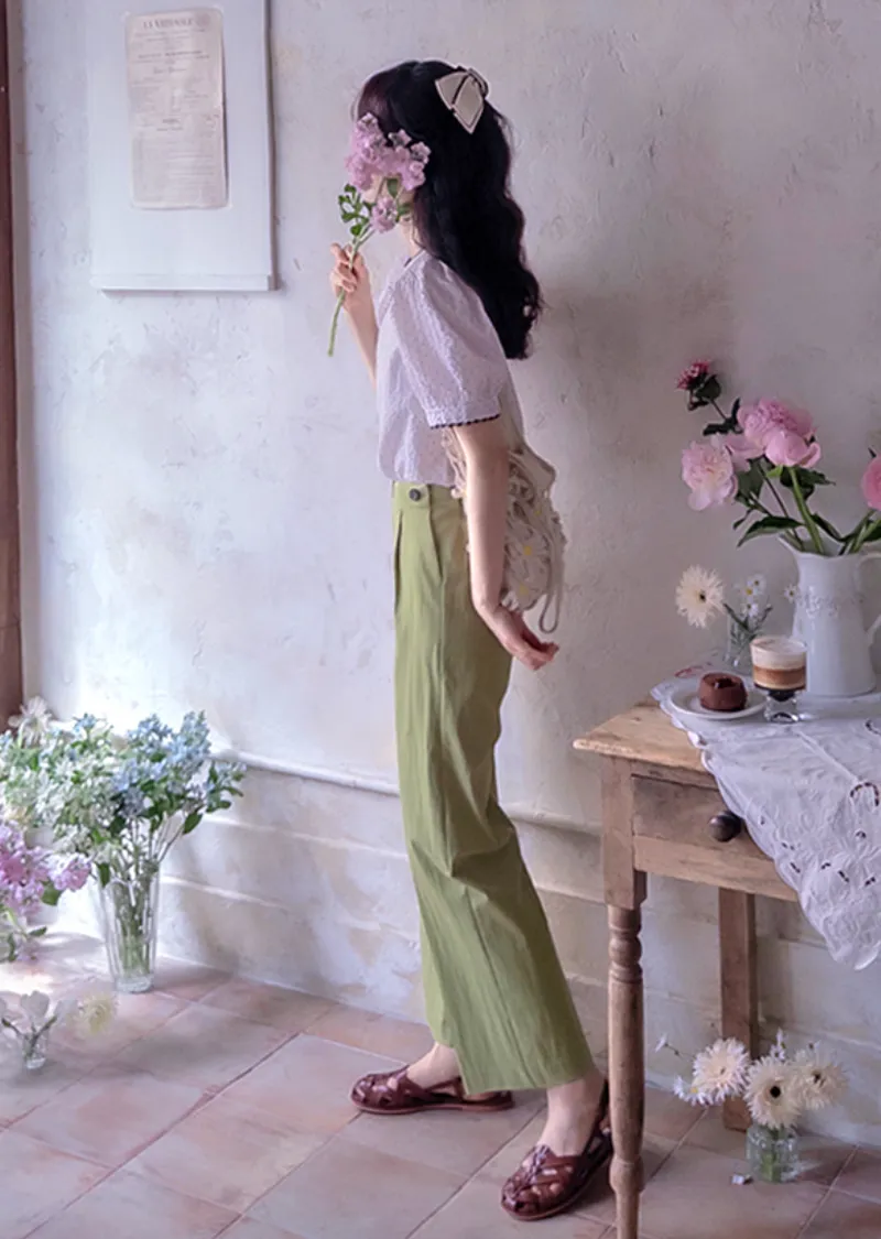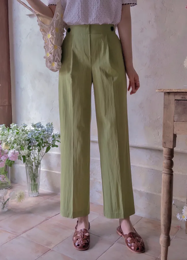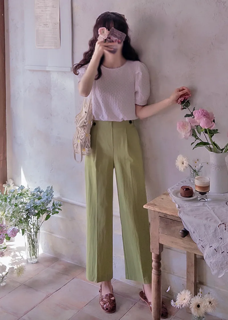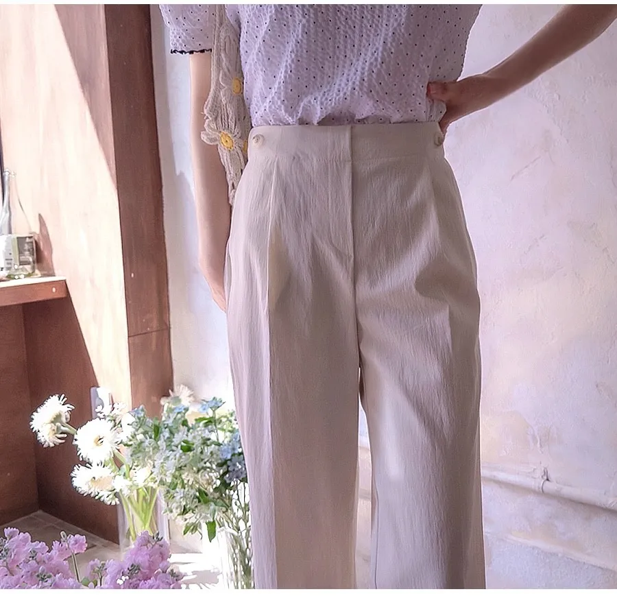夏日清新舒適彈性腰側鈕扣點綴休閒褲
