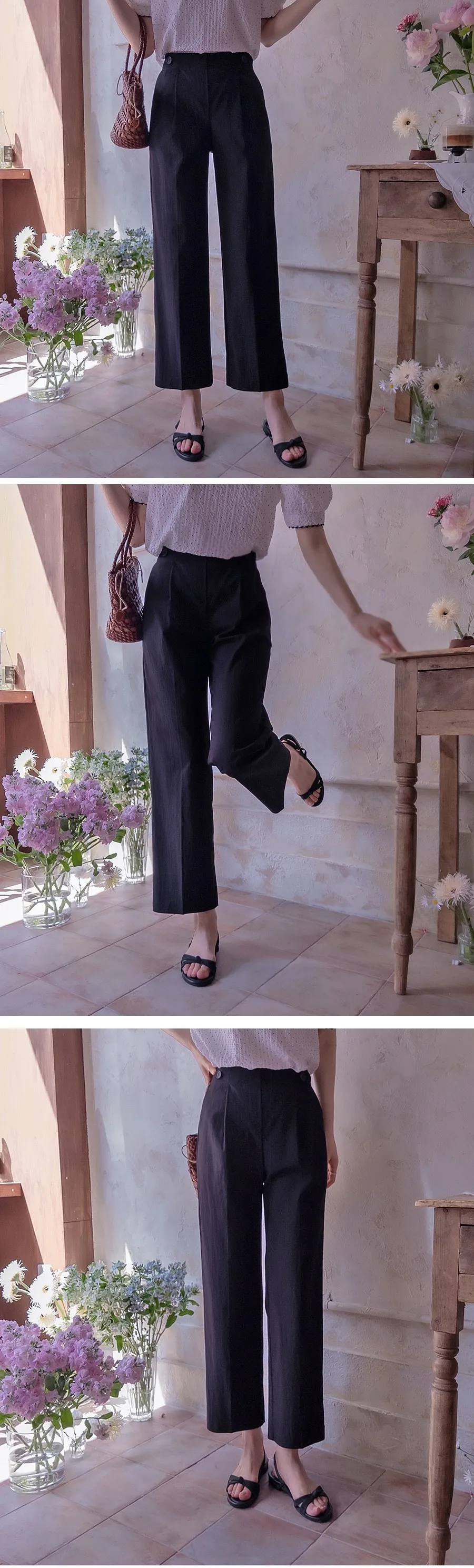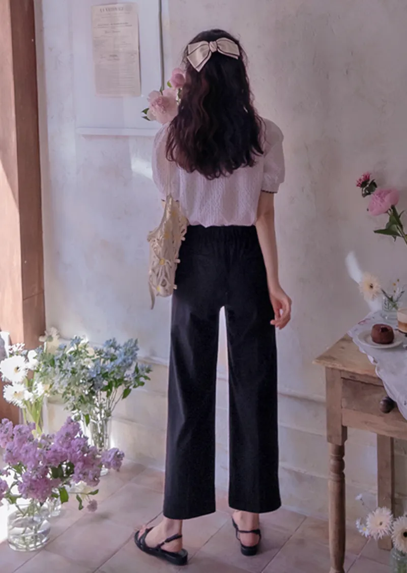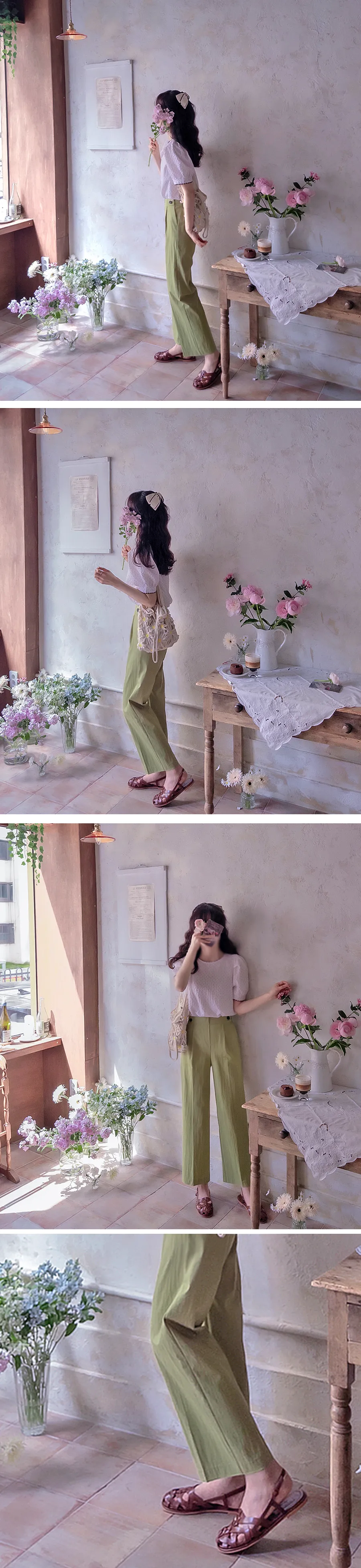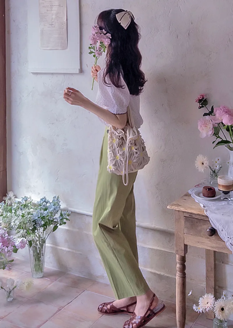 夏日清新舒適彈性腰側鈕扣點綴休閒褲