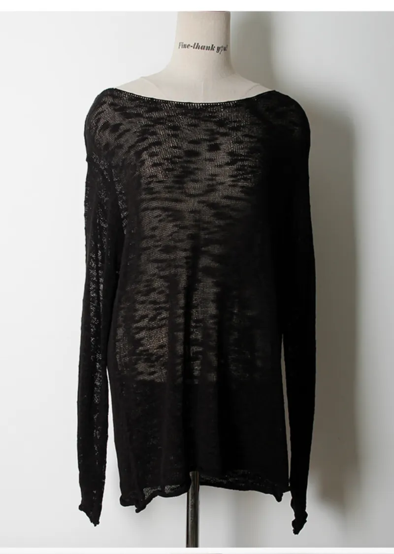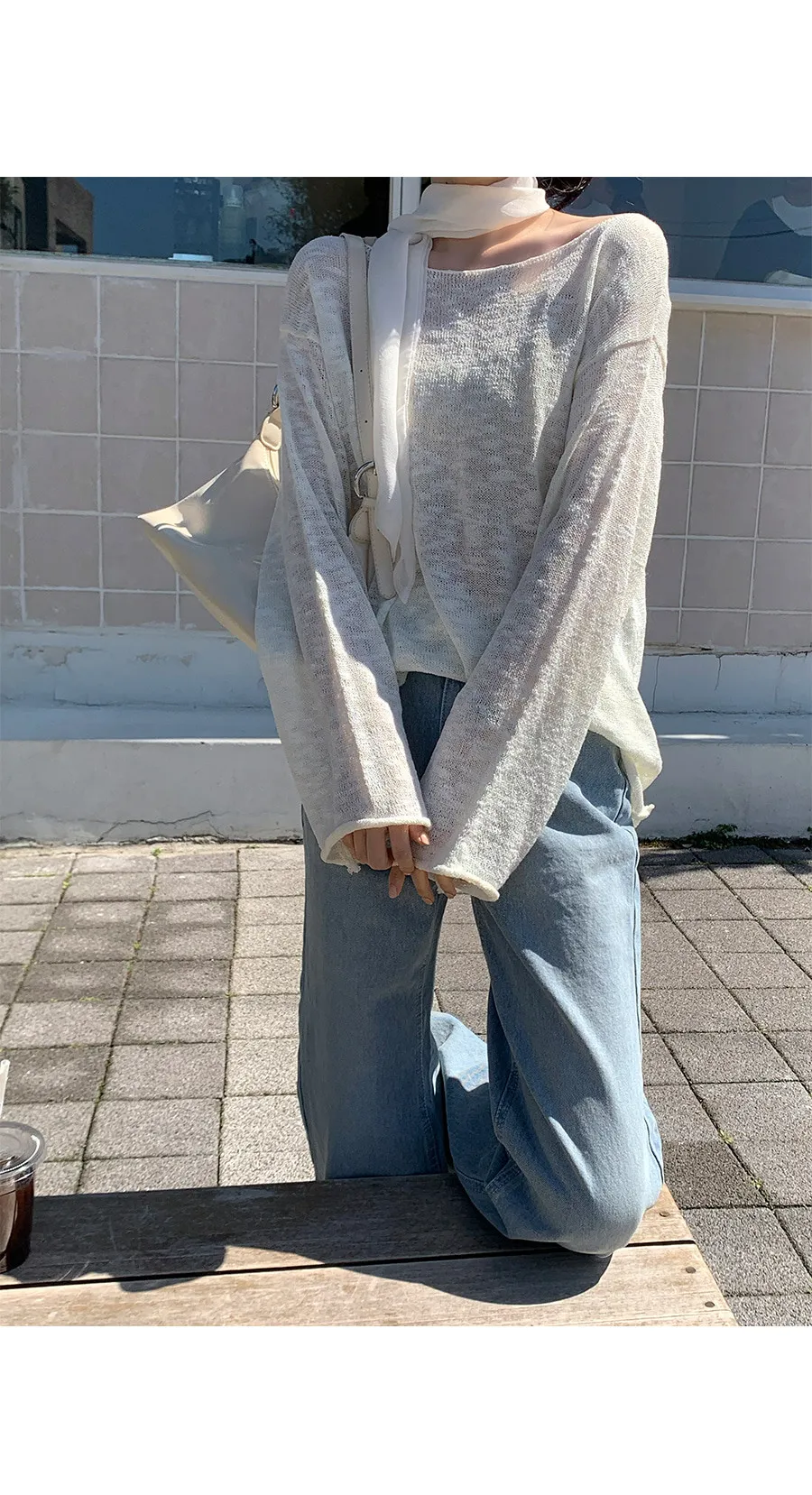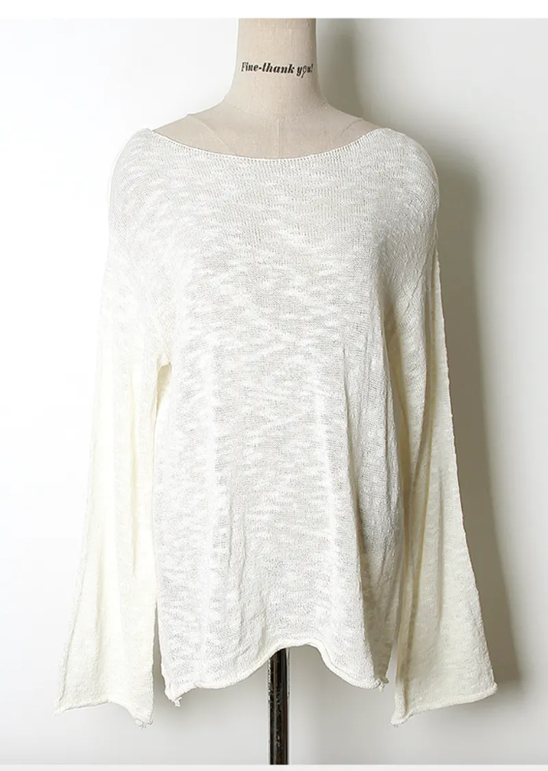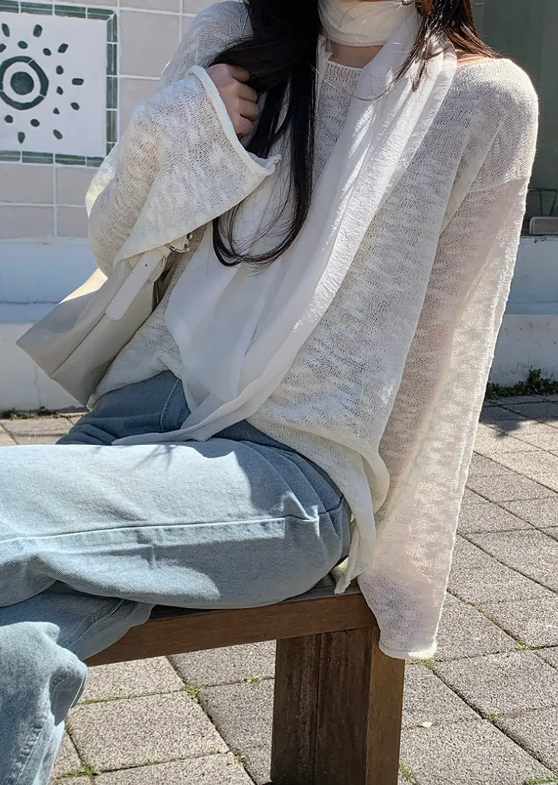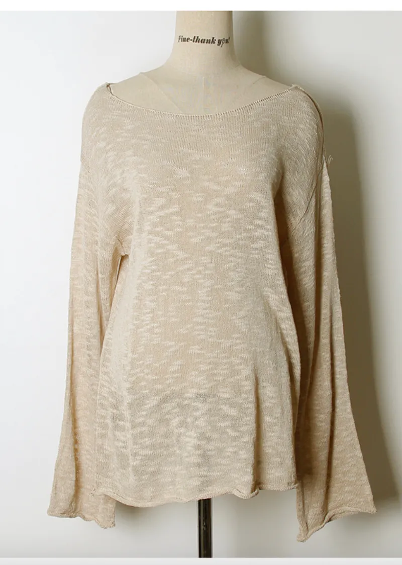 材質:100% 腈綸。這款針織衫,自然氣息十足!採用寬鬆飄逸的版型,凸顯纖細身形。採用輕盈面料,略帶粗糙質感,織法寬鬆,非常適合換季時節穿著,整個夏天都能完美貼合身形!衣長及臀,寬鬆的袖子遮住手背,更添纖細之美♡ 它非常適合從換季到夏季的各種造型 :)
