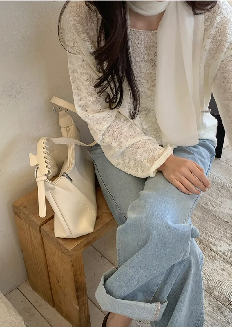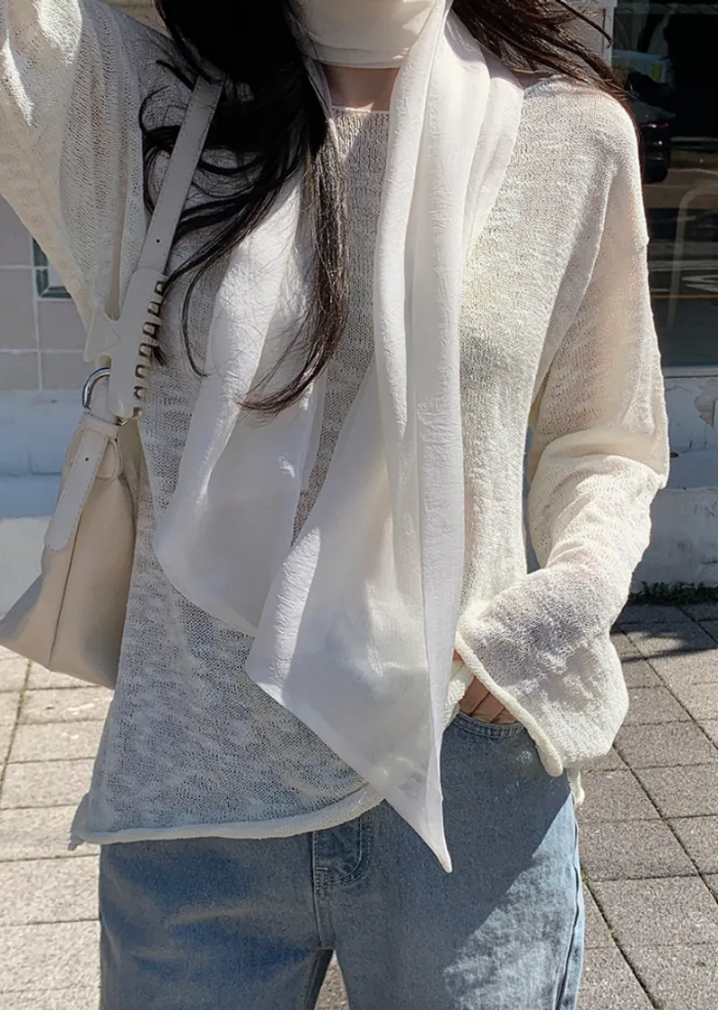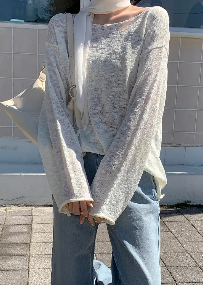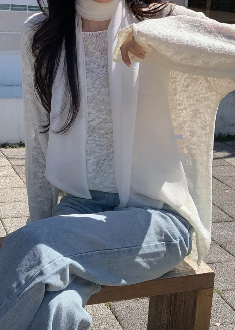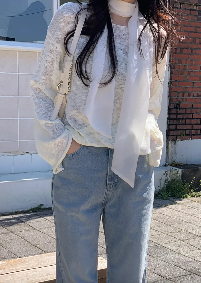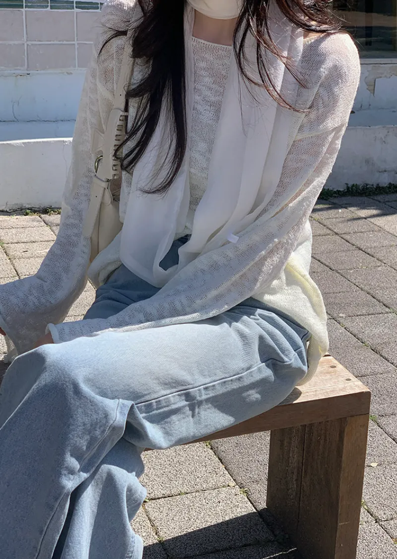 材質:100% 腈綸。這款針織衫,自然氣息十足!採用寬鬆飄逸的版型,凸顯纖細身形。採用輕盈面料,略帶粗糙質感,織法寬鬆,非常適合換季時節穿著,整個夏天都能完美貼合身形!衣長及臀,寬鬆的袖子遮住手背,更添纖細之美♡ 它非常適合從換季到夏季的各種造型 :)