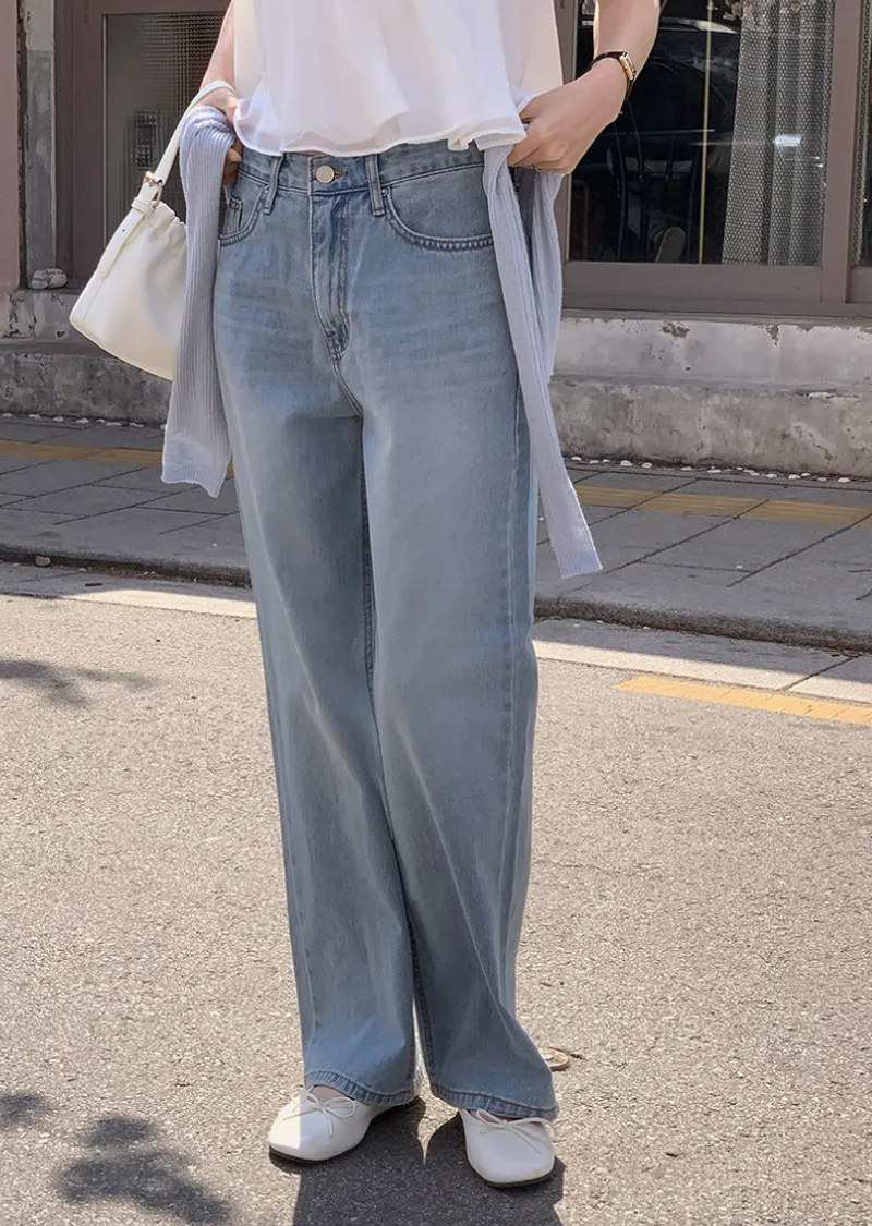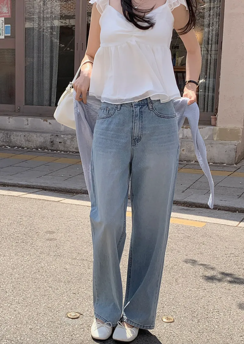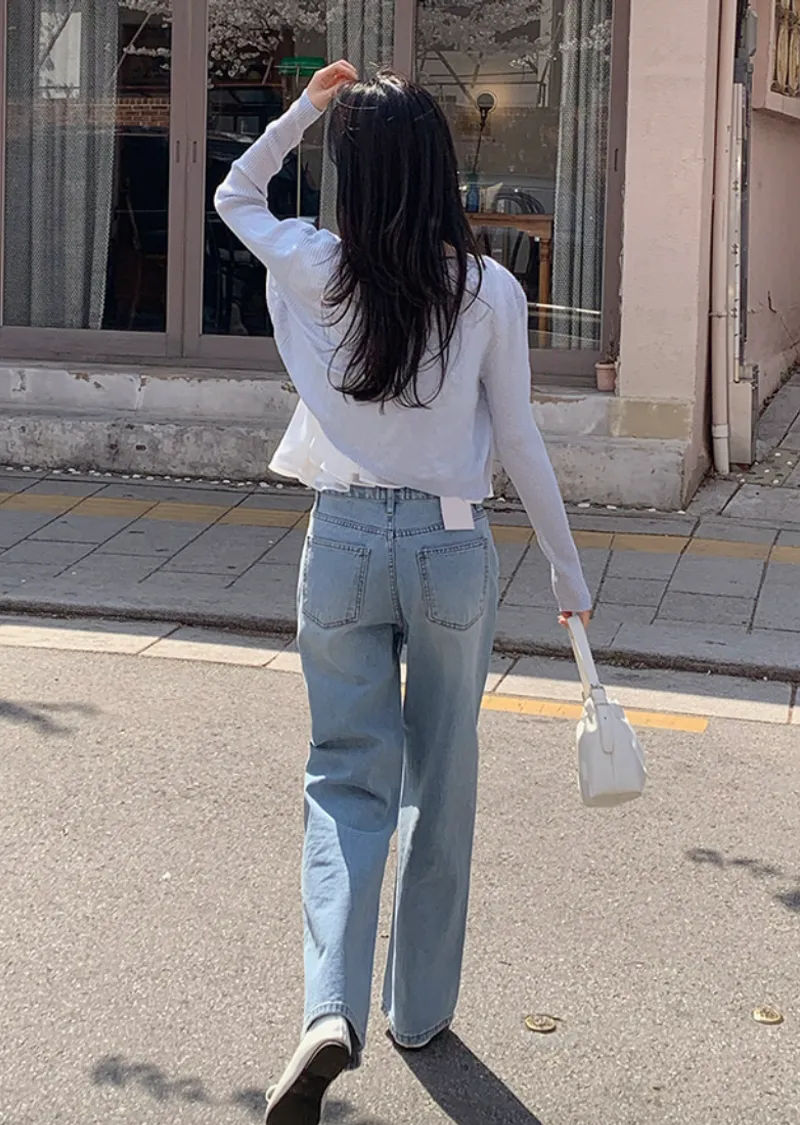 材質:100% 棉。適合春季的直筒牛仔褲!採用標準直筒版型,非常適合日常穿著 :)清新淺藍色使其適合從春季穿著到夏季。 採用100%純棉布料,不易變形,保持版型挺括。略微寬鬆的版型,褲長大約到腳背處。簡潔的直筒版型讓這款牛仔褲易於搭配各種造型 :)