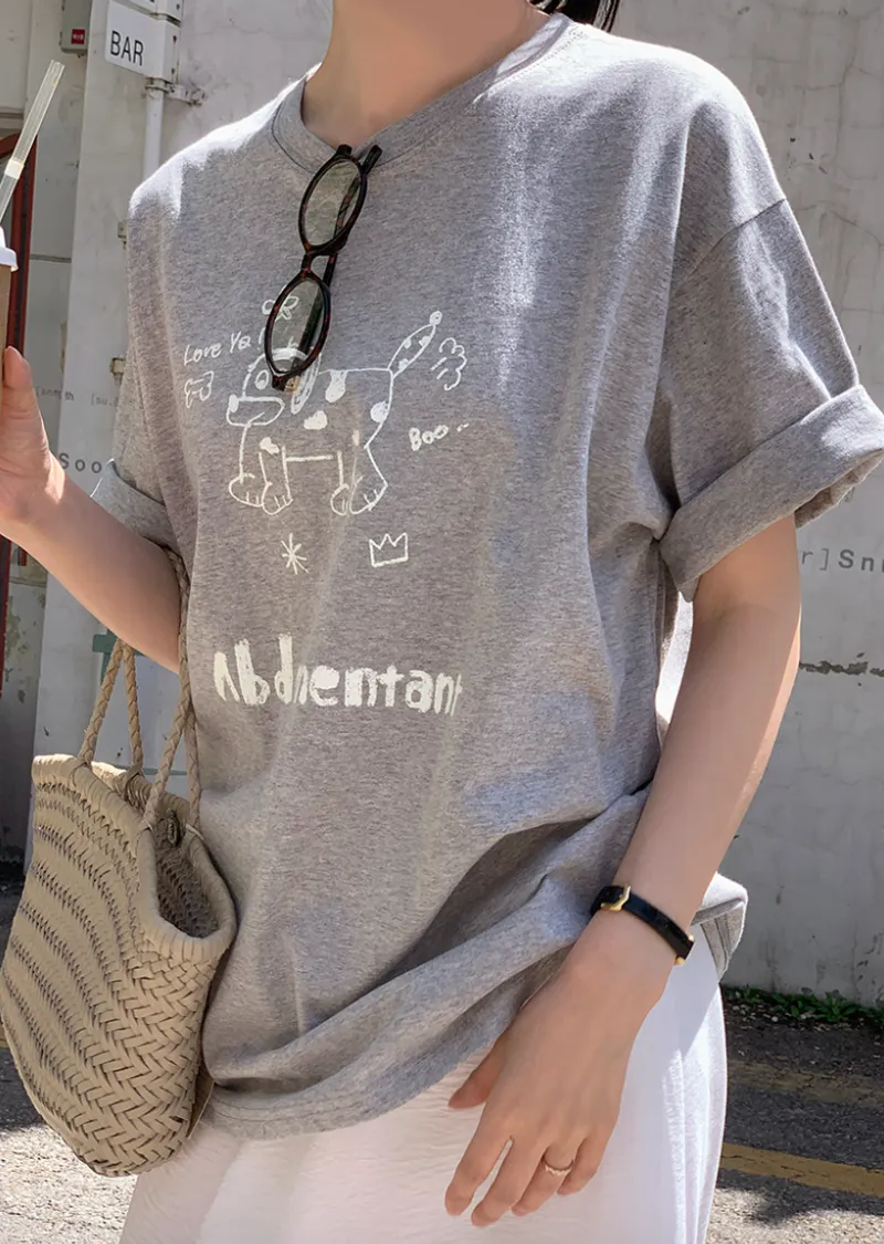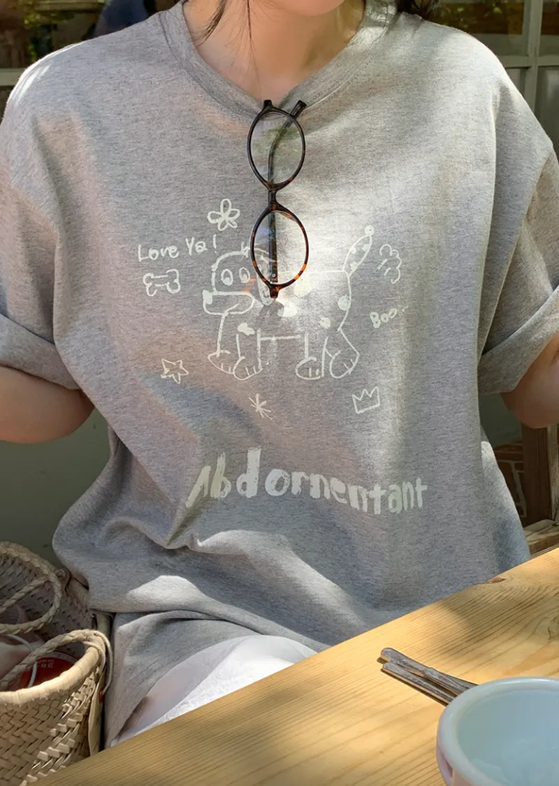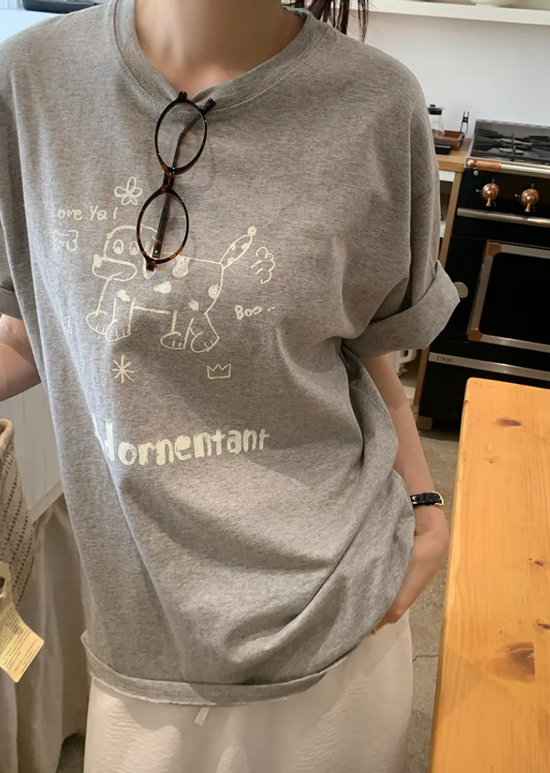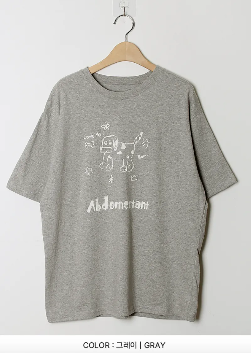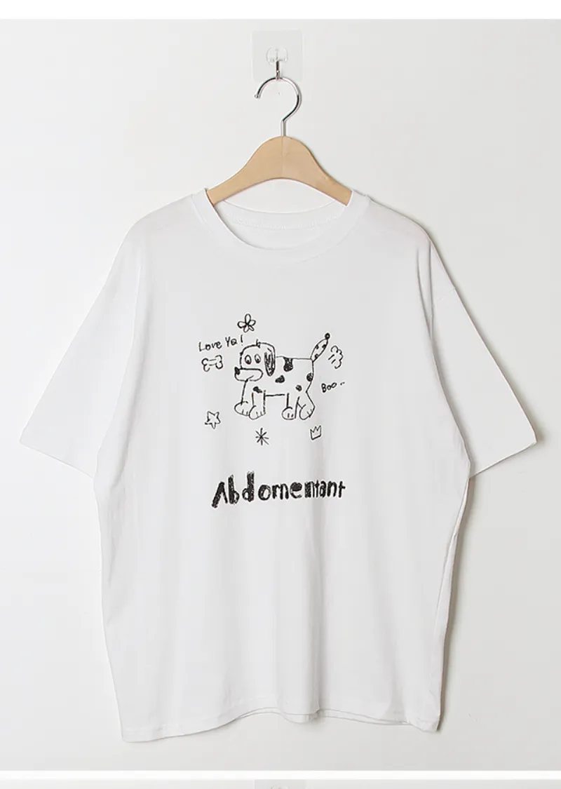 可愛休閒狗狗字母印花寬版舒適短袖上衣