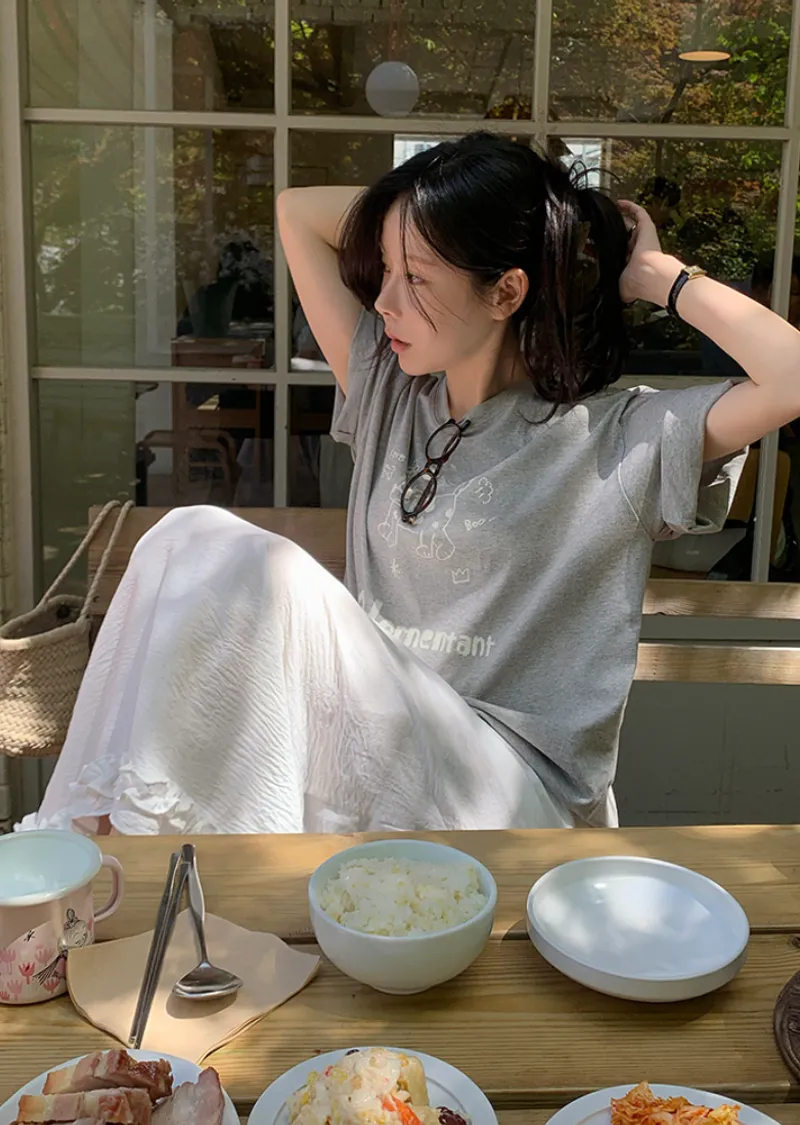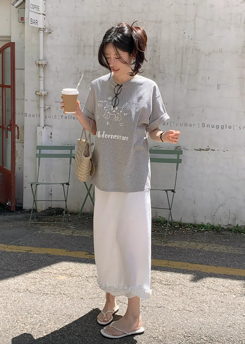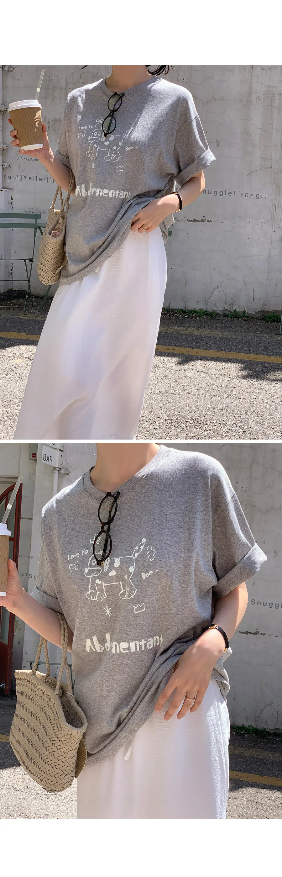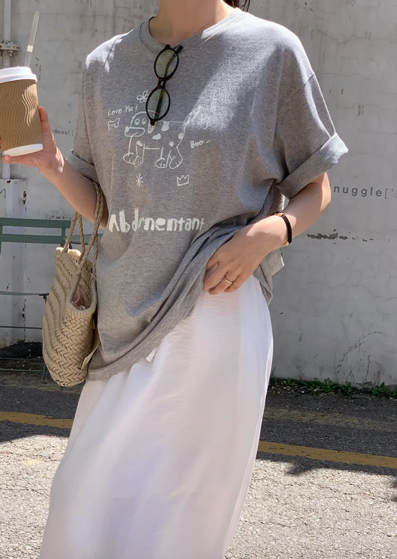 材質:100% 棉。印花T卹,日常穿搭的完美選擇!一款休閒舒適的短袖T卹 :) 可愛的狗狗圖案和字母印花增添了一絲俏皮感,寬鬆的版型和剛好遮住臀部的長度,讓您穿著倍感舒適!印花圖案輕鬆打造休閒又不失時尚的造型 :)